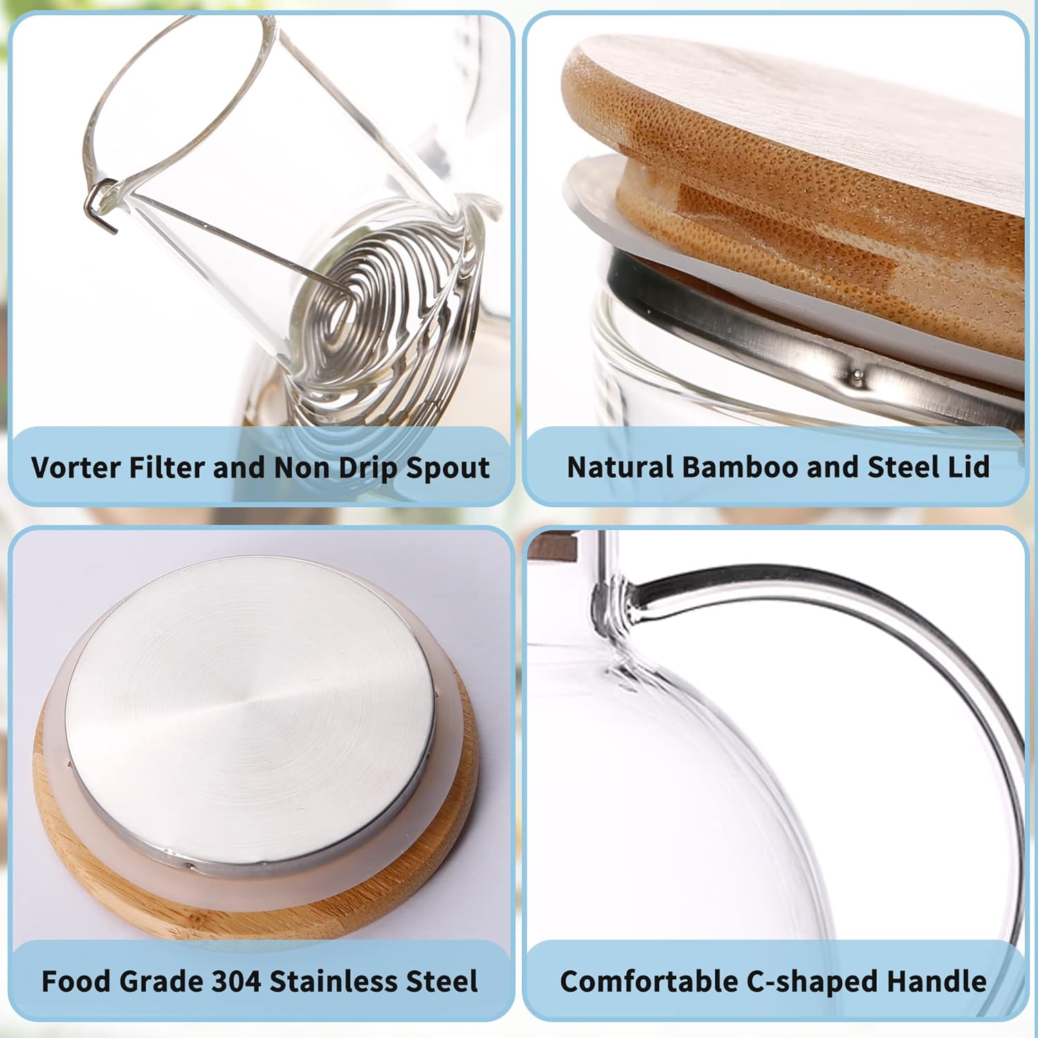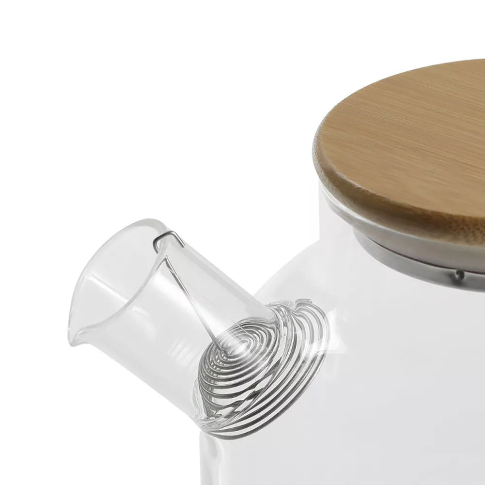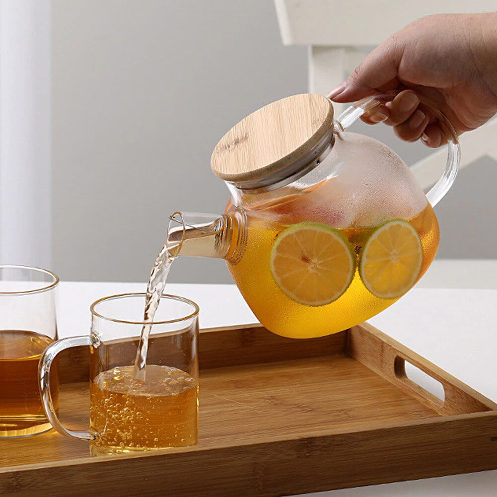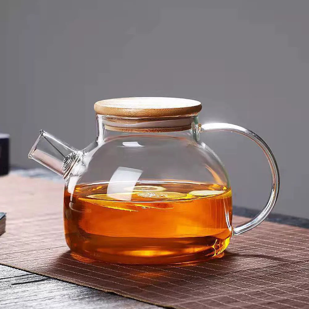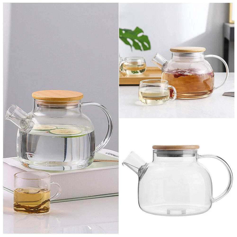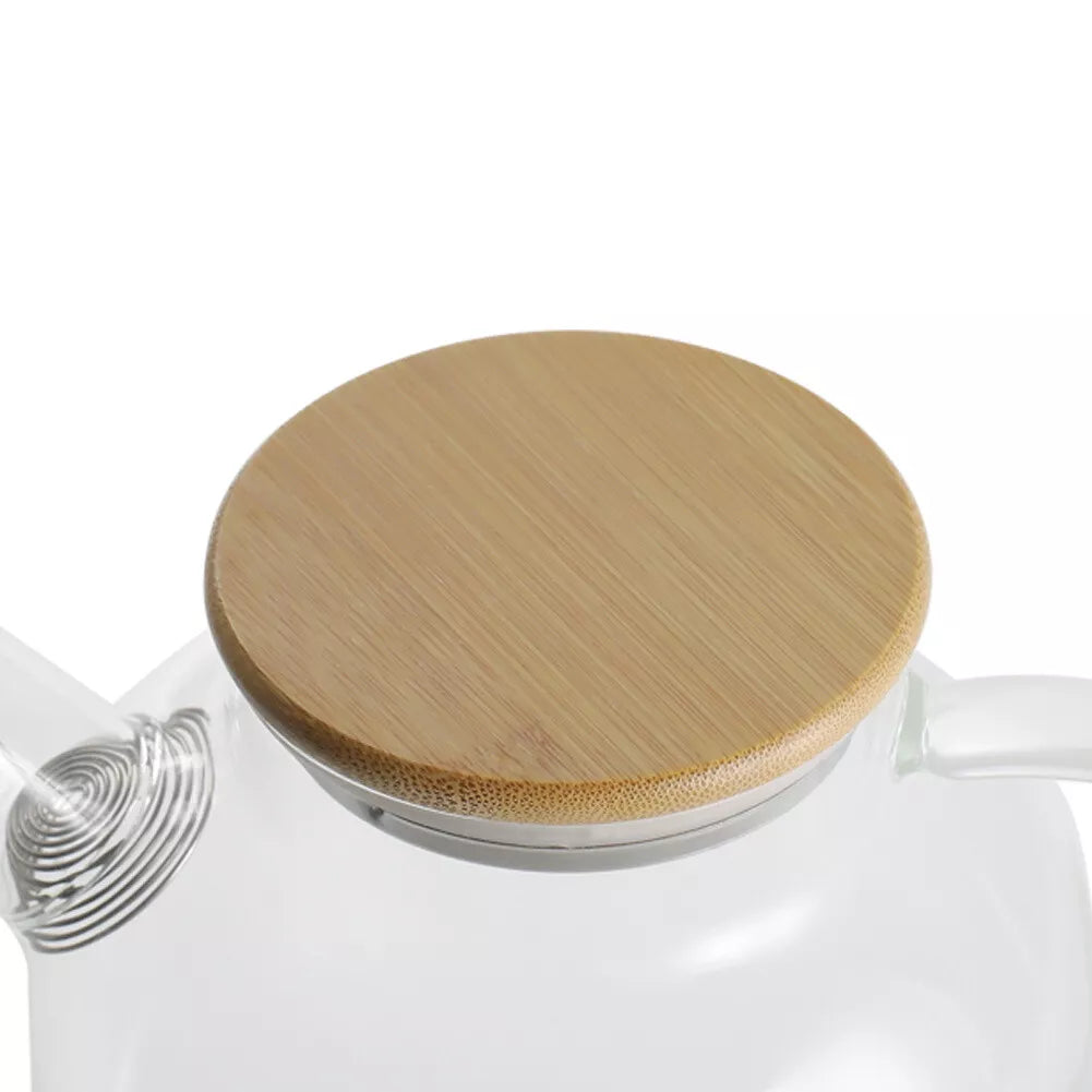 1000ml Thickened Glass Teapot with Bamboo Lid, Filter, Coaster & Cleaning Cloths
