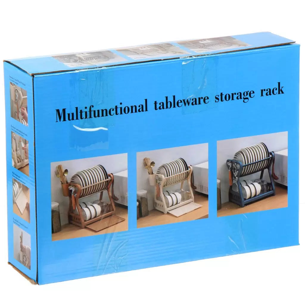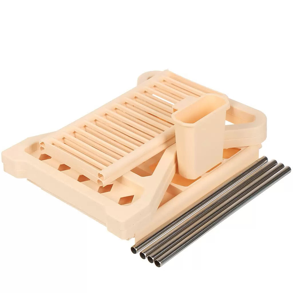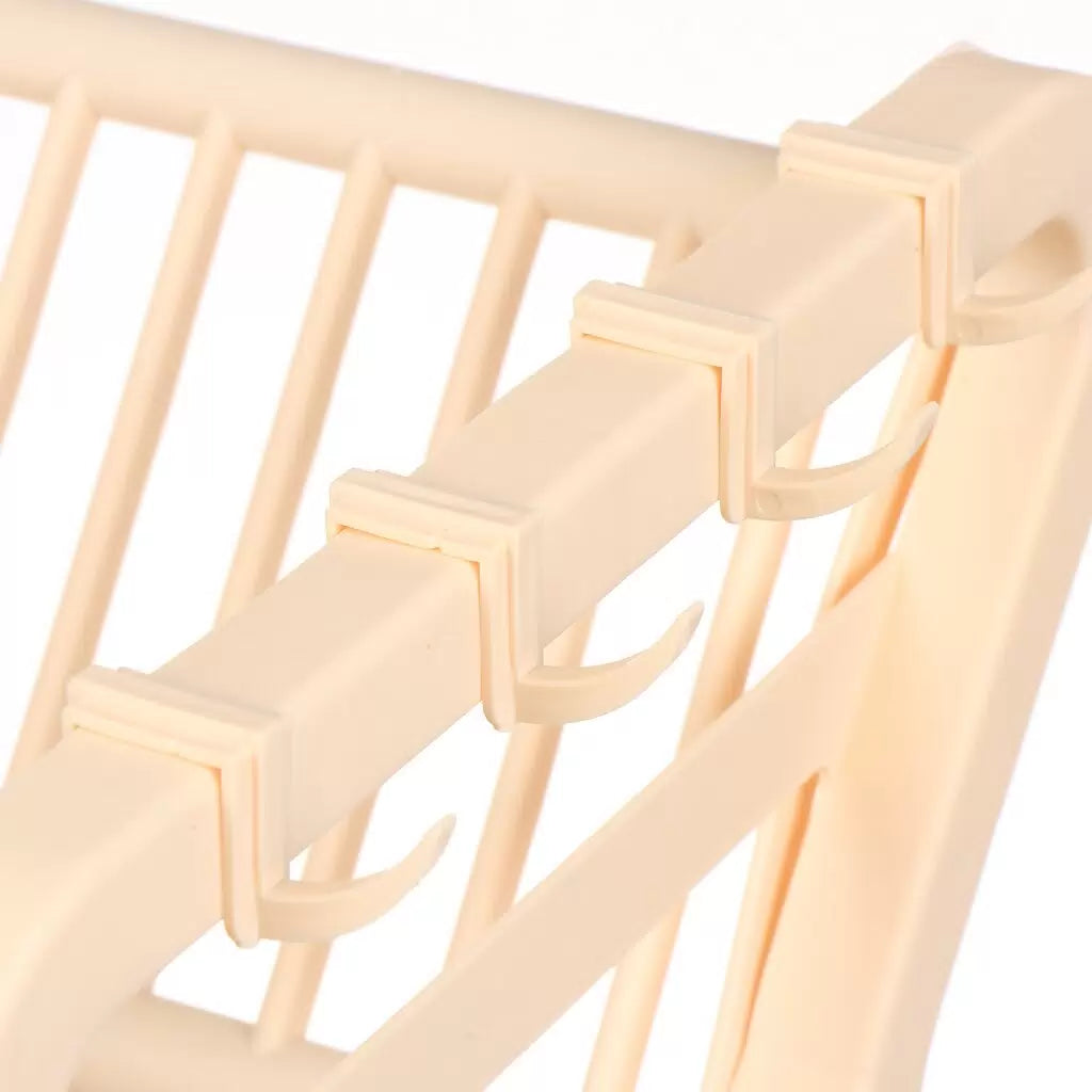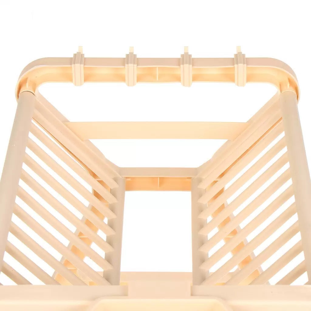 2-Tier Multifunctional Plastic Dish Drain Rack with Removable Drip – Beige