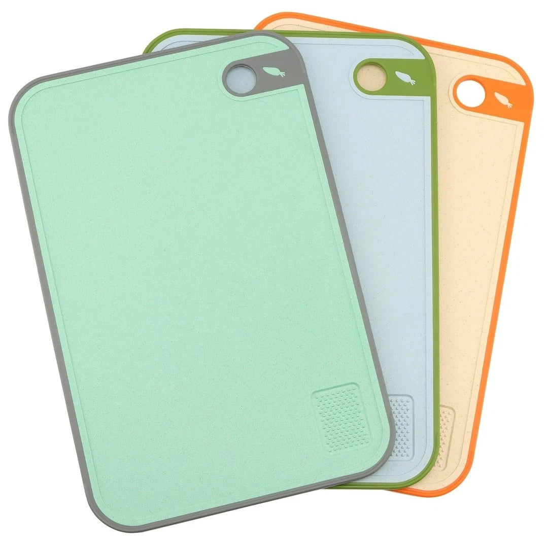 3-Piece Chopping Board Set, Plastic Cutting Boards with Non-Slip Base (Multicolour)