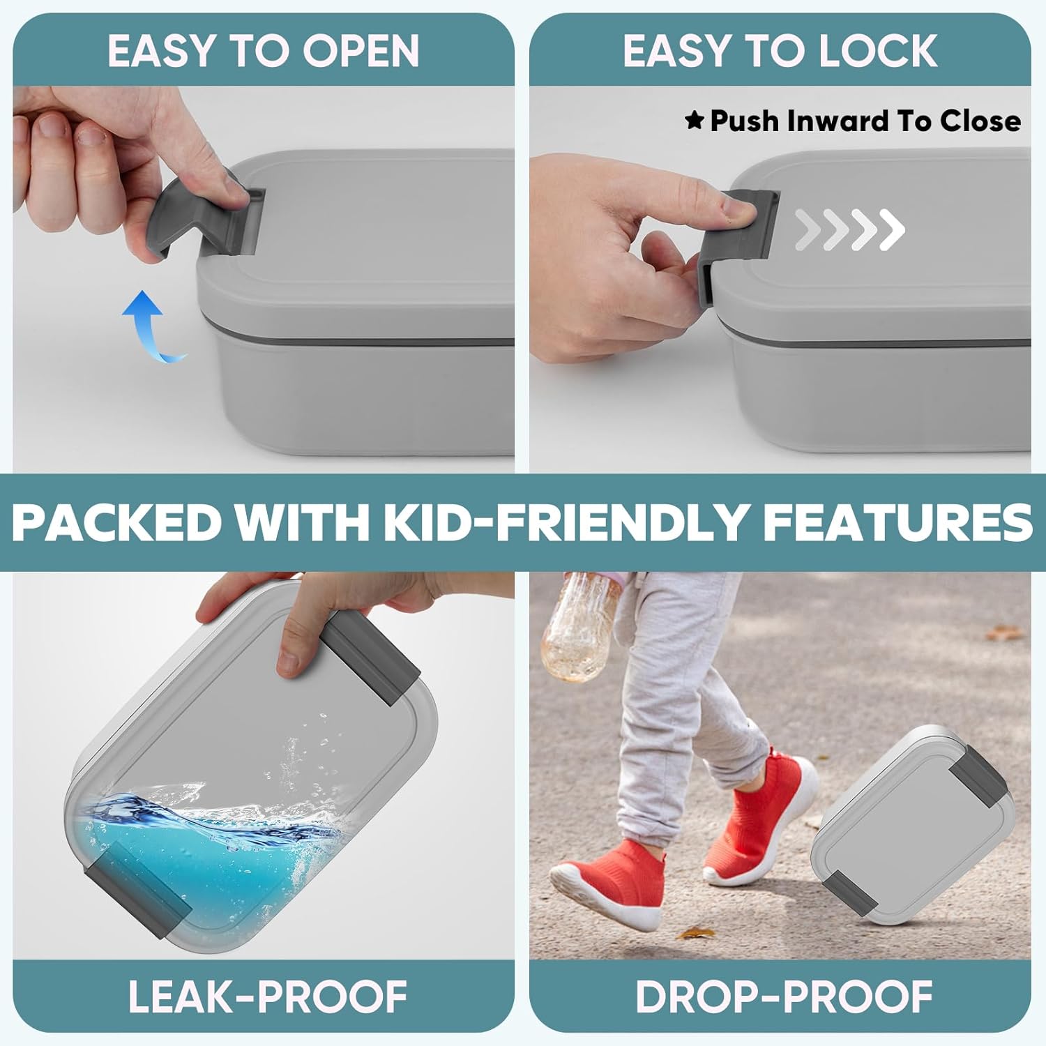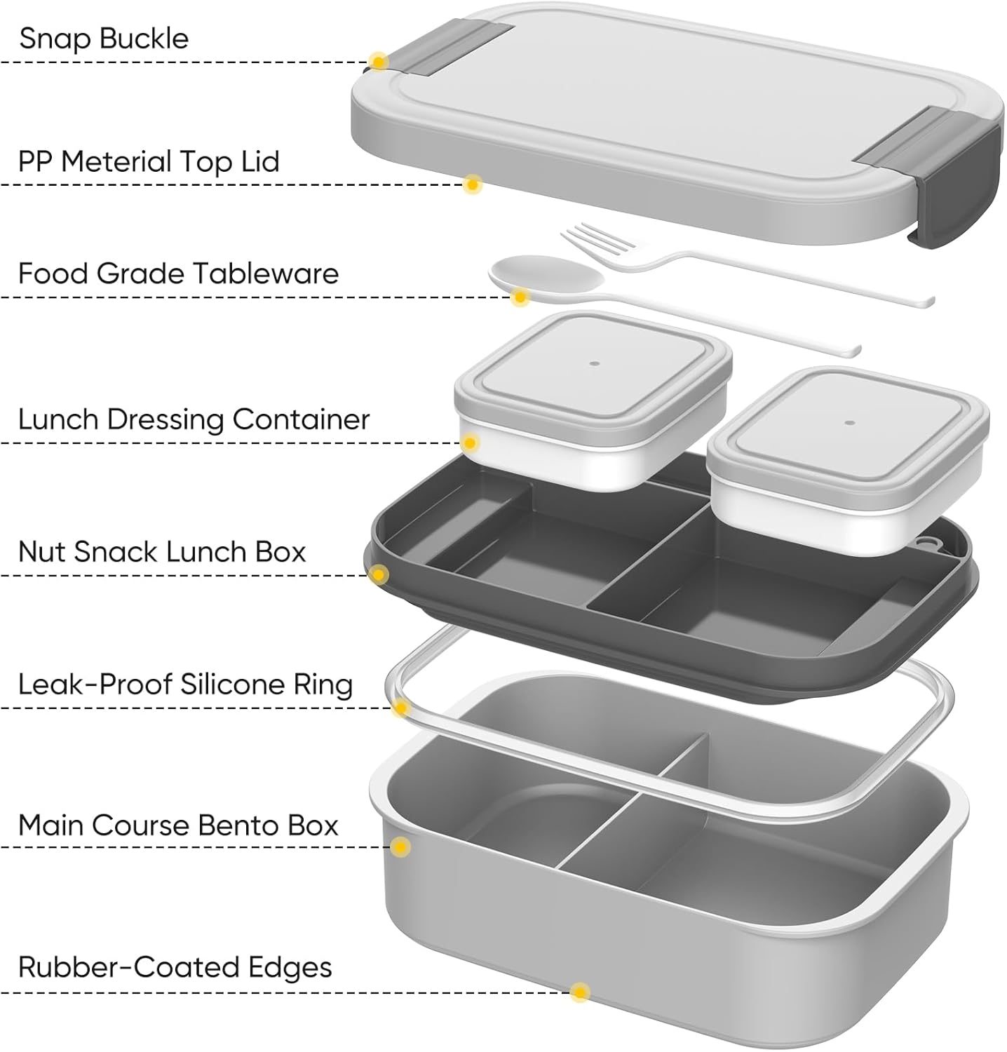 BIBURY Leakproof Bento Lunch Box – 1.9L, 4 Compartments - Grey