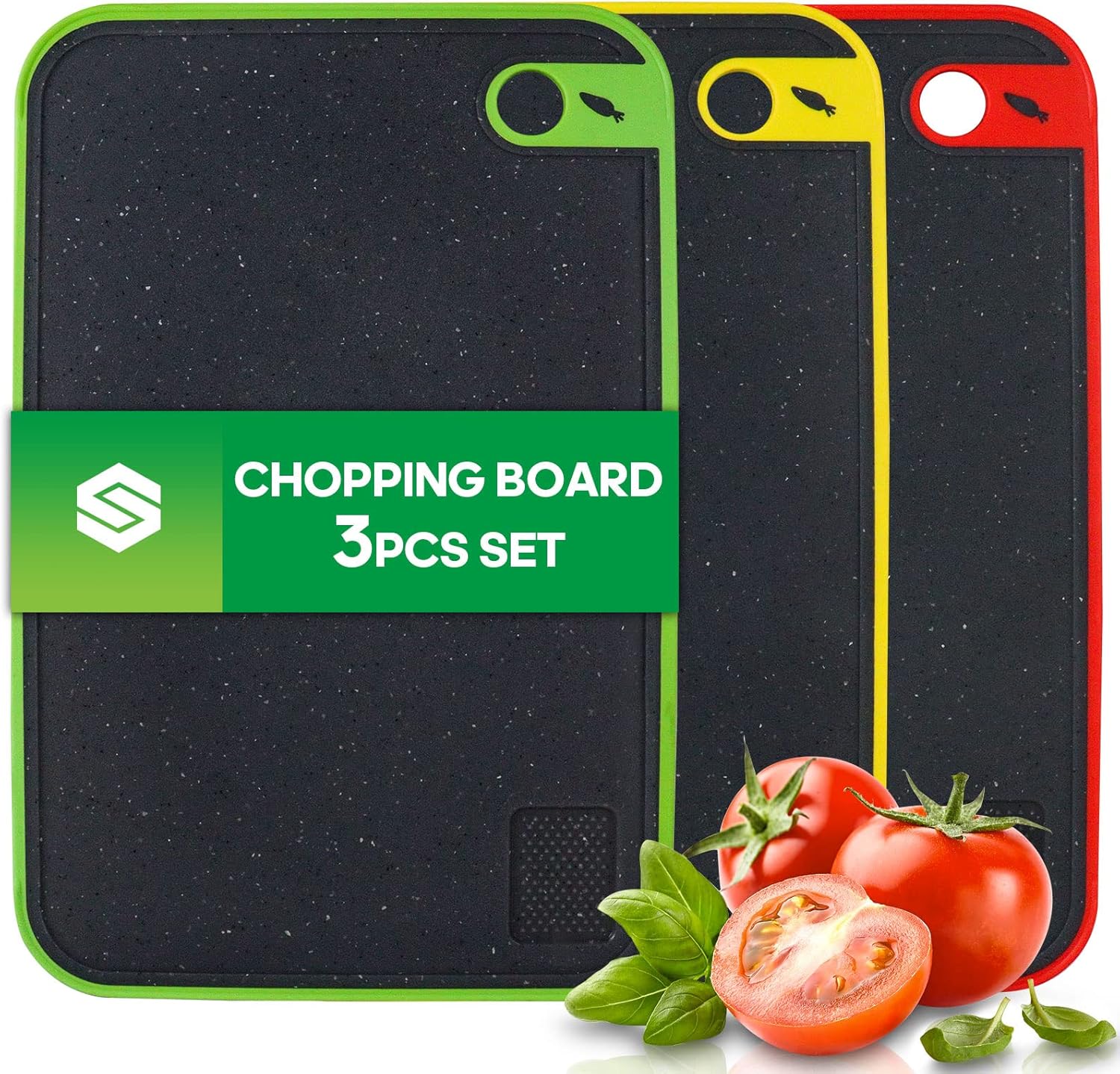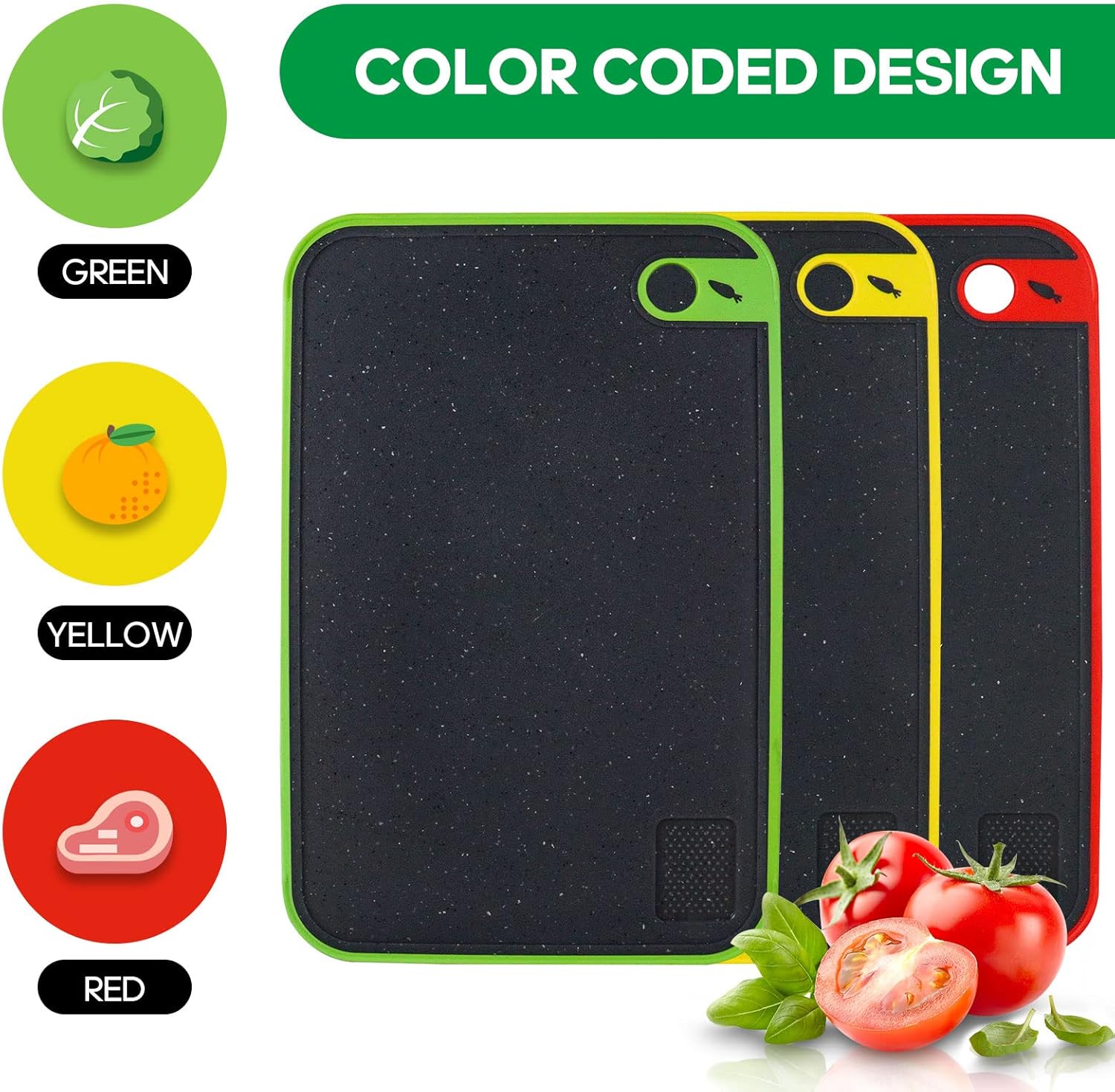 BOCHION 3-Piece Colour-Coded Chopping Board Set – BPA-Free, Non-Slip Cutting Boards