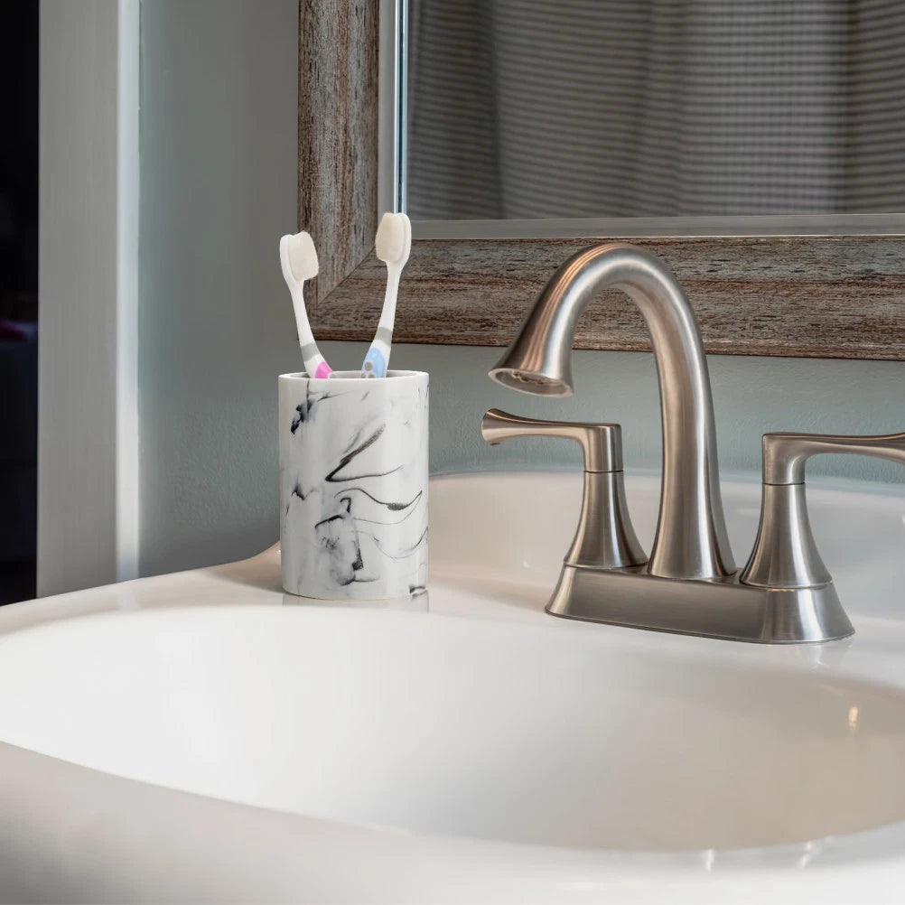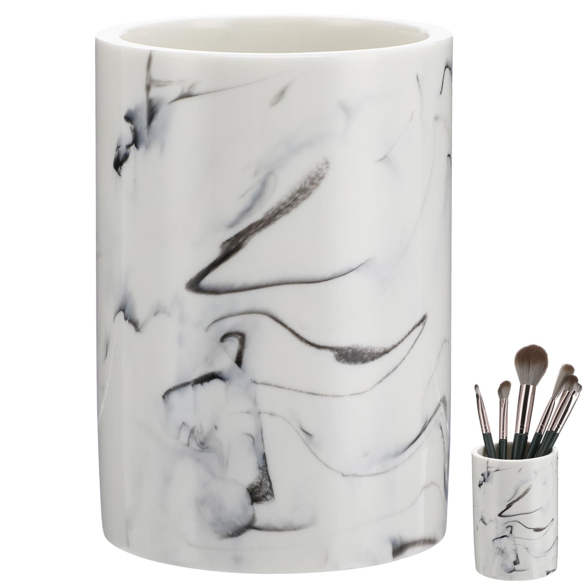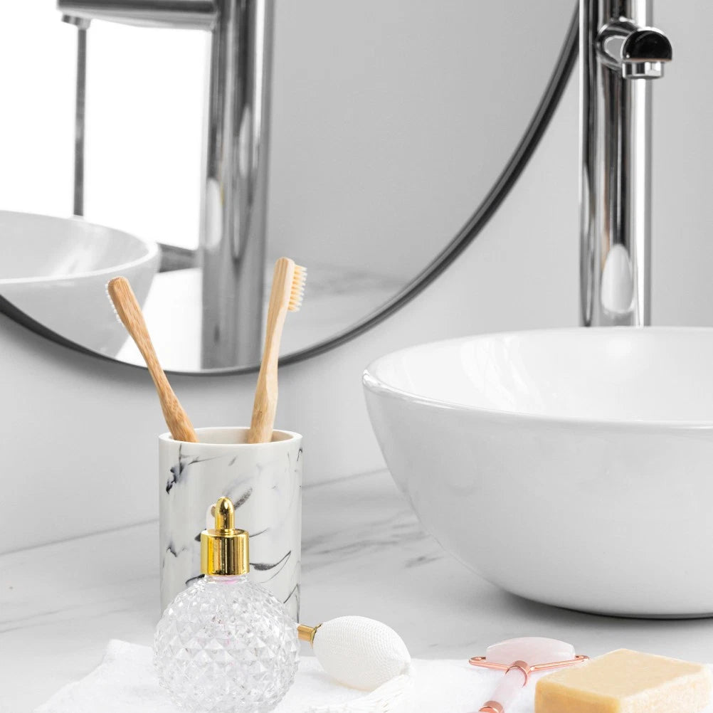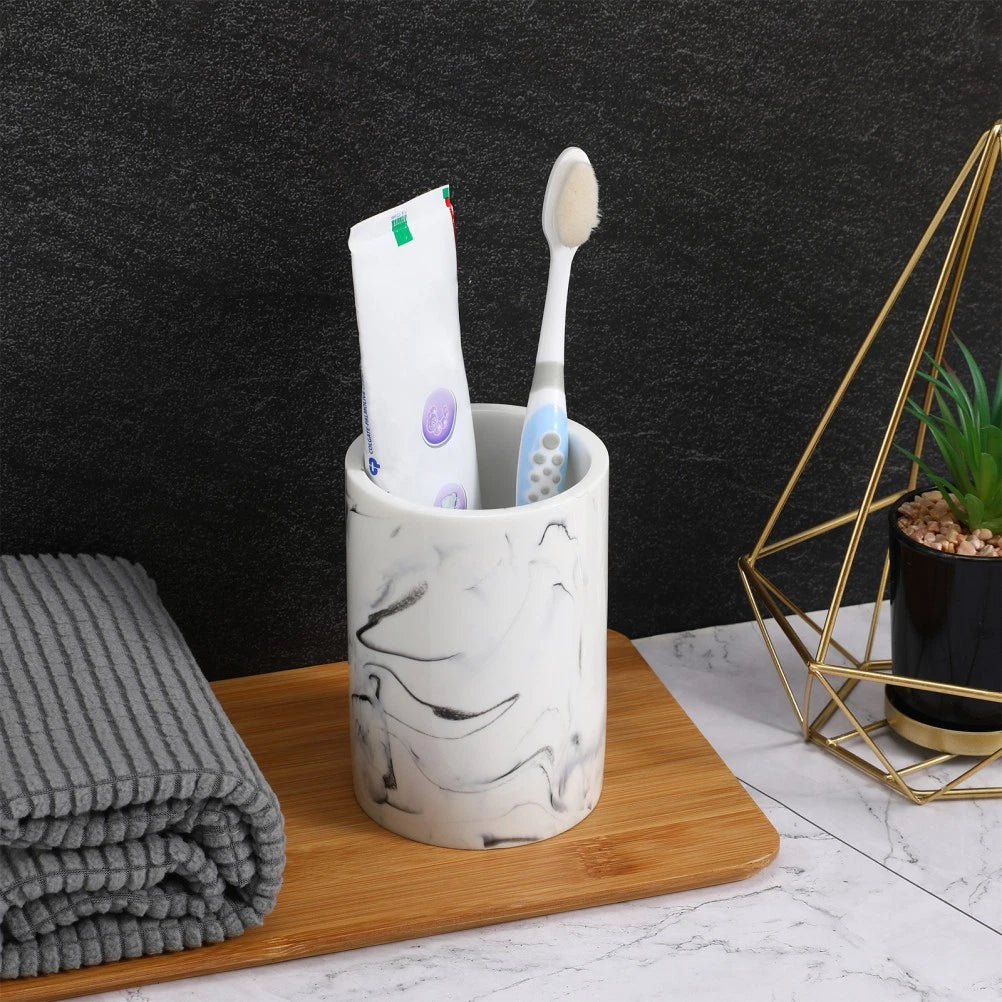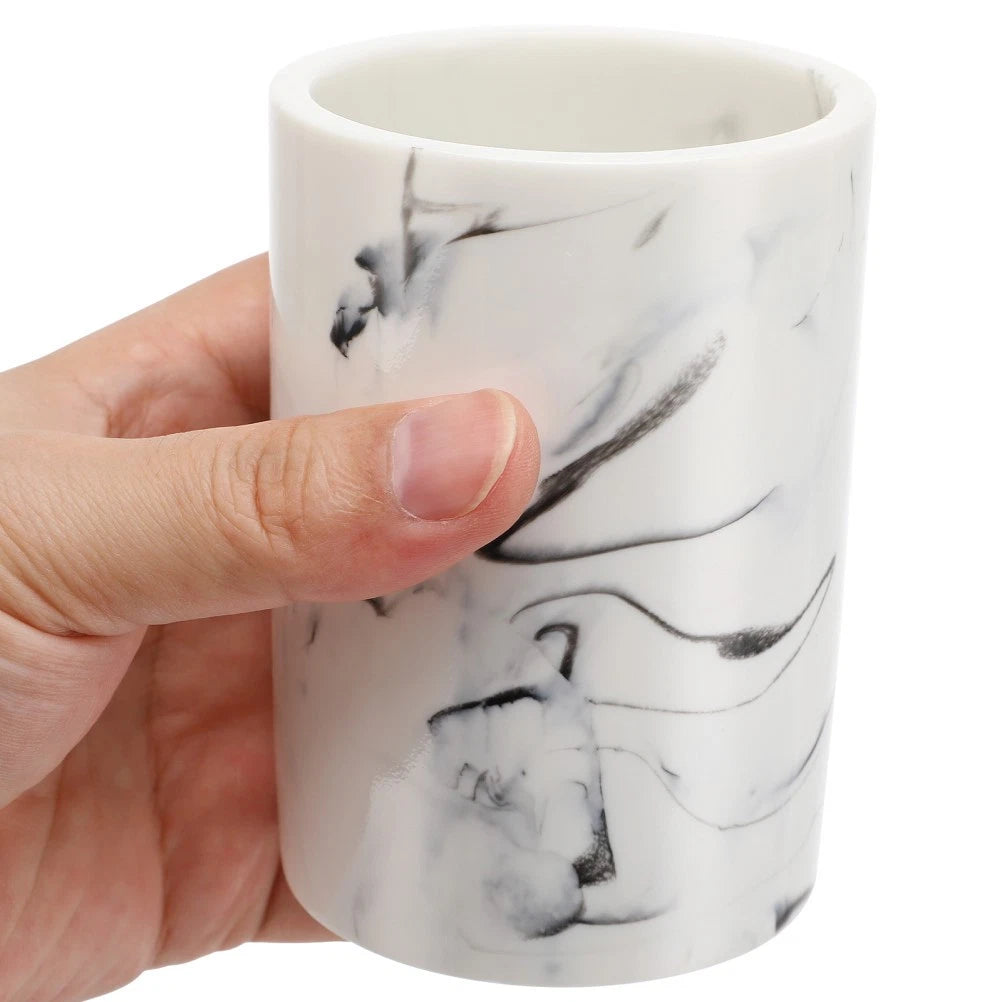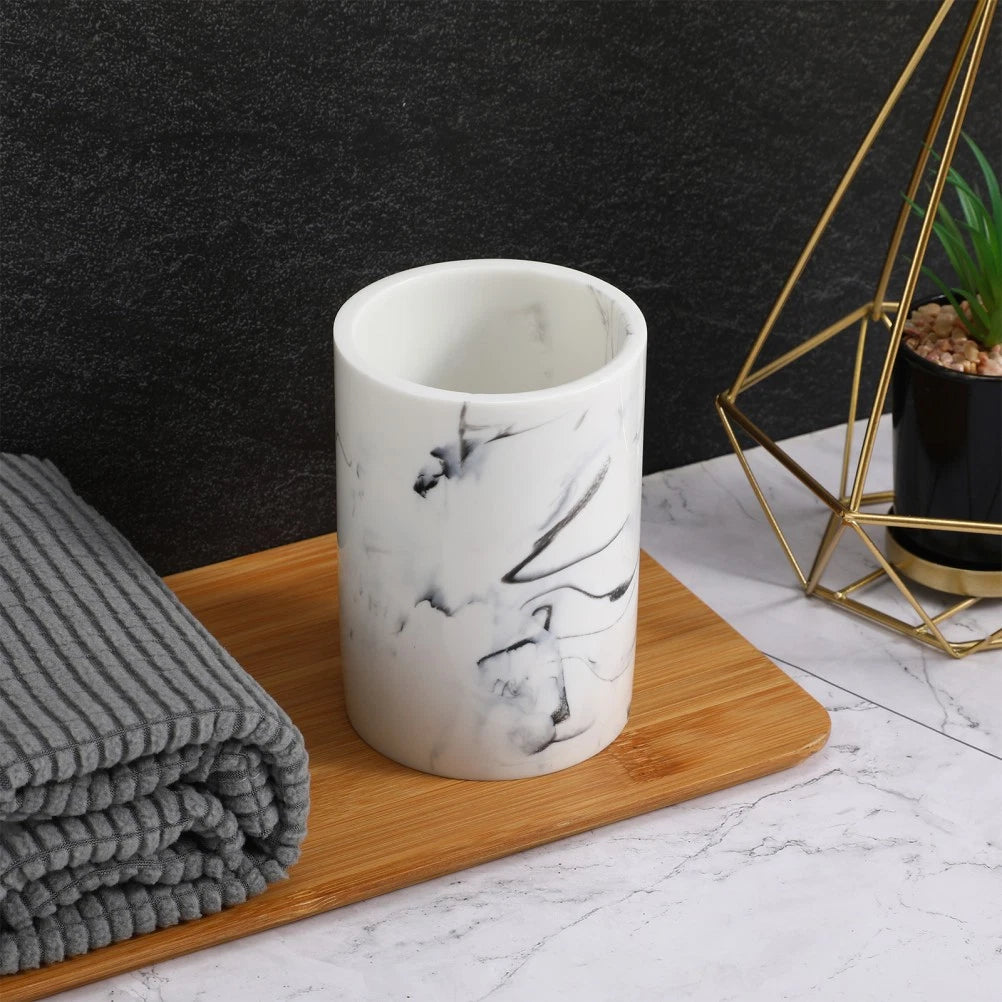 Cabilock Marble Bathroom Organizer Cup – White Resin Tumbler with Chrome Finish