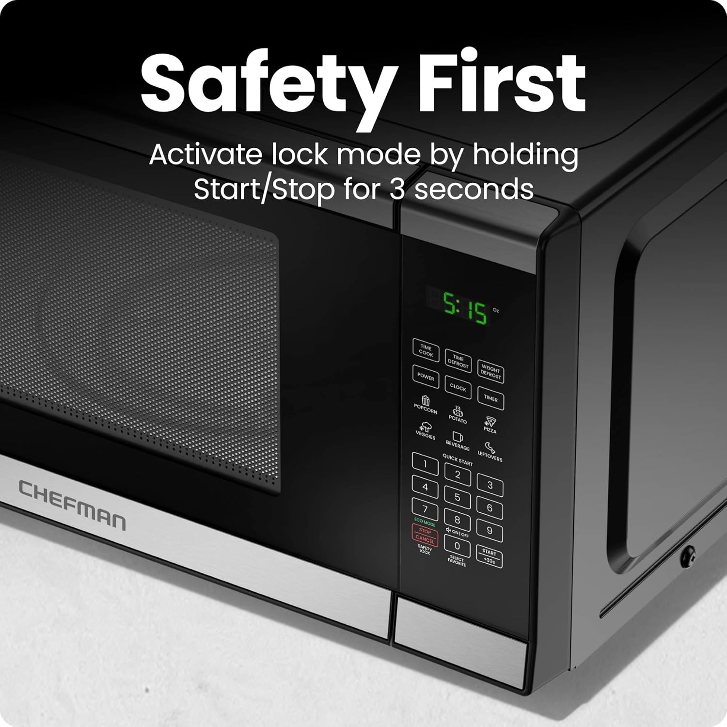 Chefman 20L 800W Microwave Oven with Mirror Finish – Digital Controls - Black
