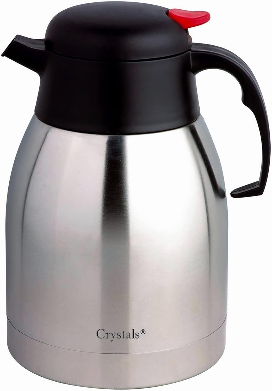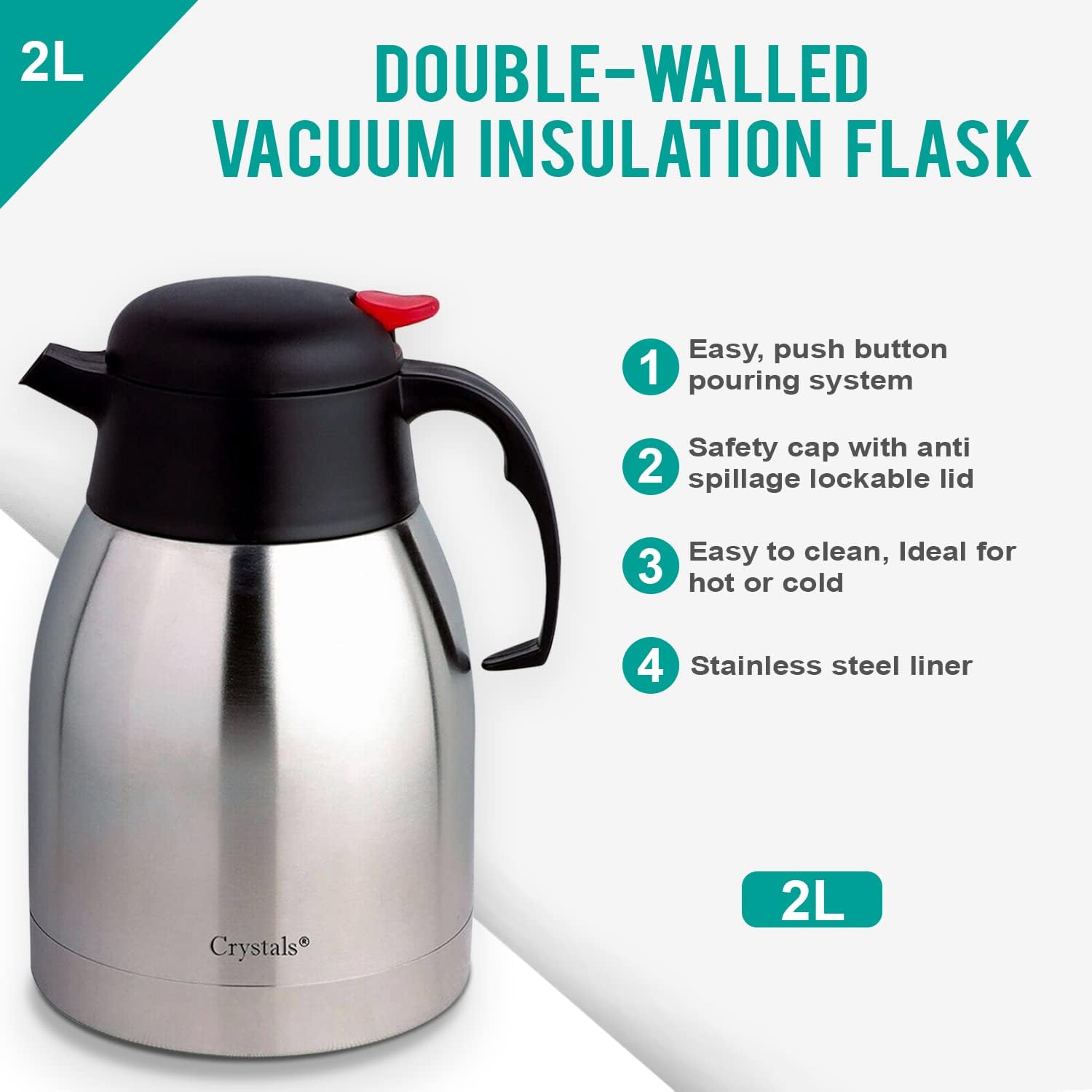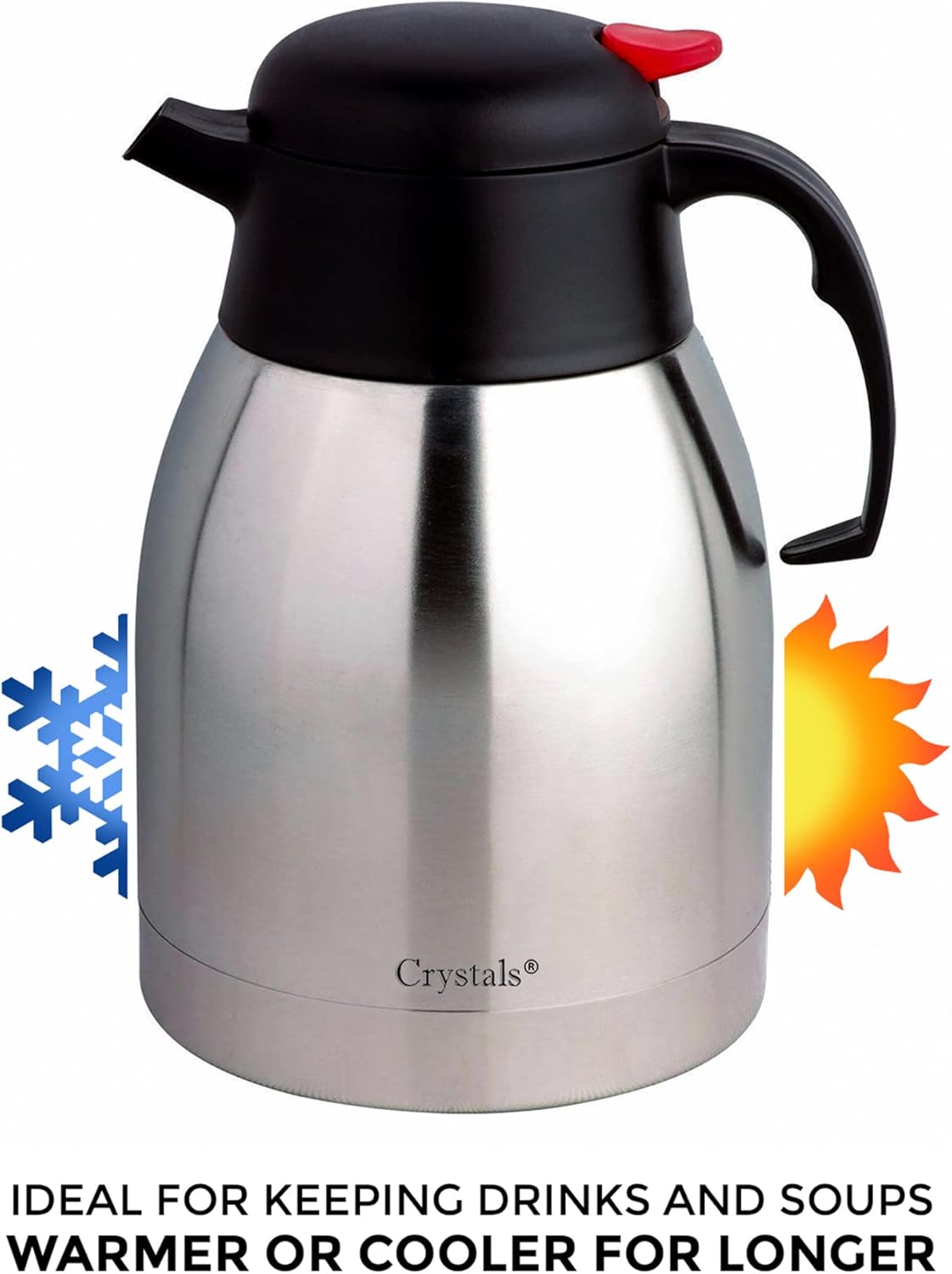 Crystals 2L Thermal Flask Coffee Carafe – Stainless Steel insulated Jug for Hot & Cold Drinks