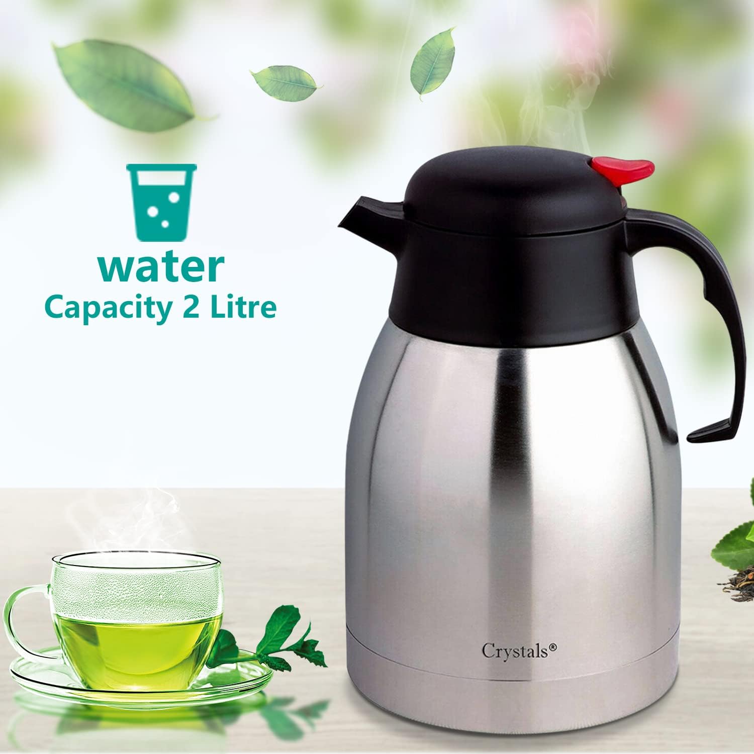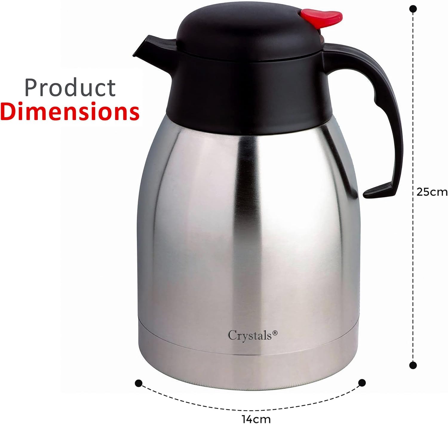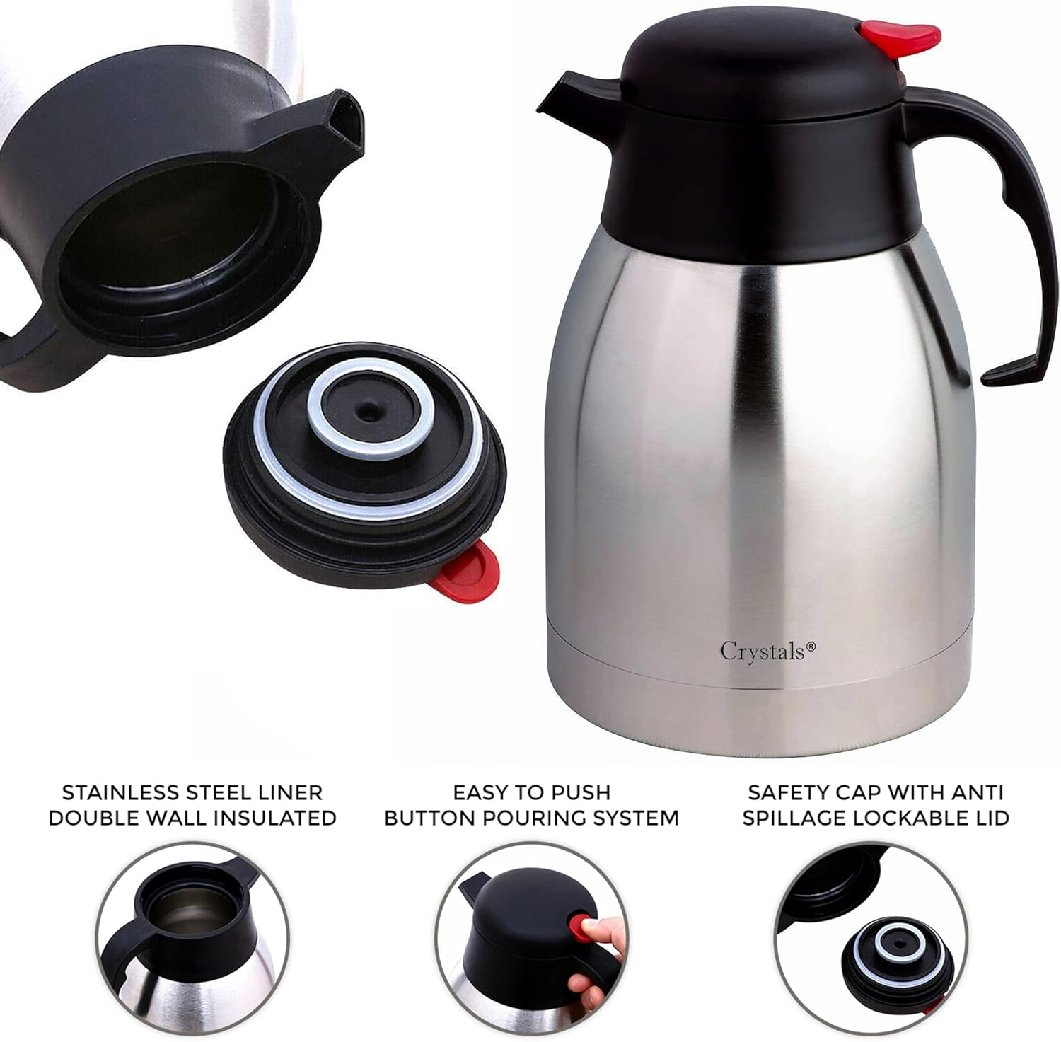 Crystals 2L Thermal Flask Coffee Carafe – Stainless Steel insulated Jug for Hot & Cold Drinks