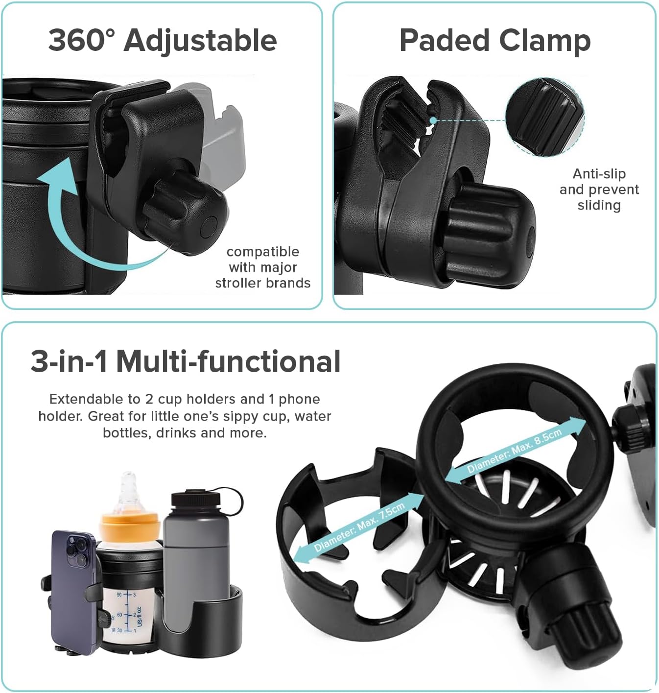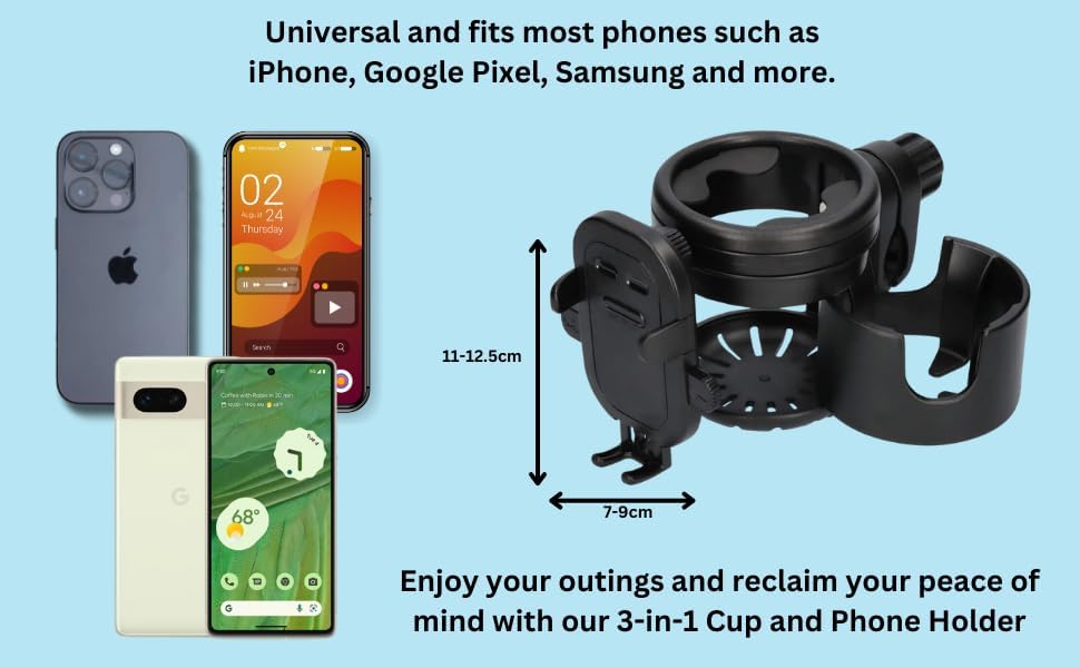Cubble 3-in-1 Universal Cup & Phone Holder – For Prams, Bicycles & Wheelchairs