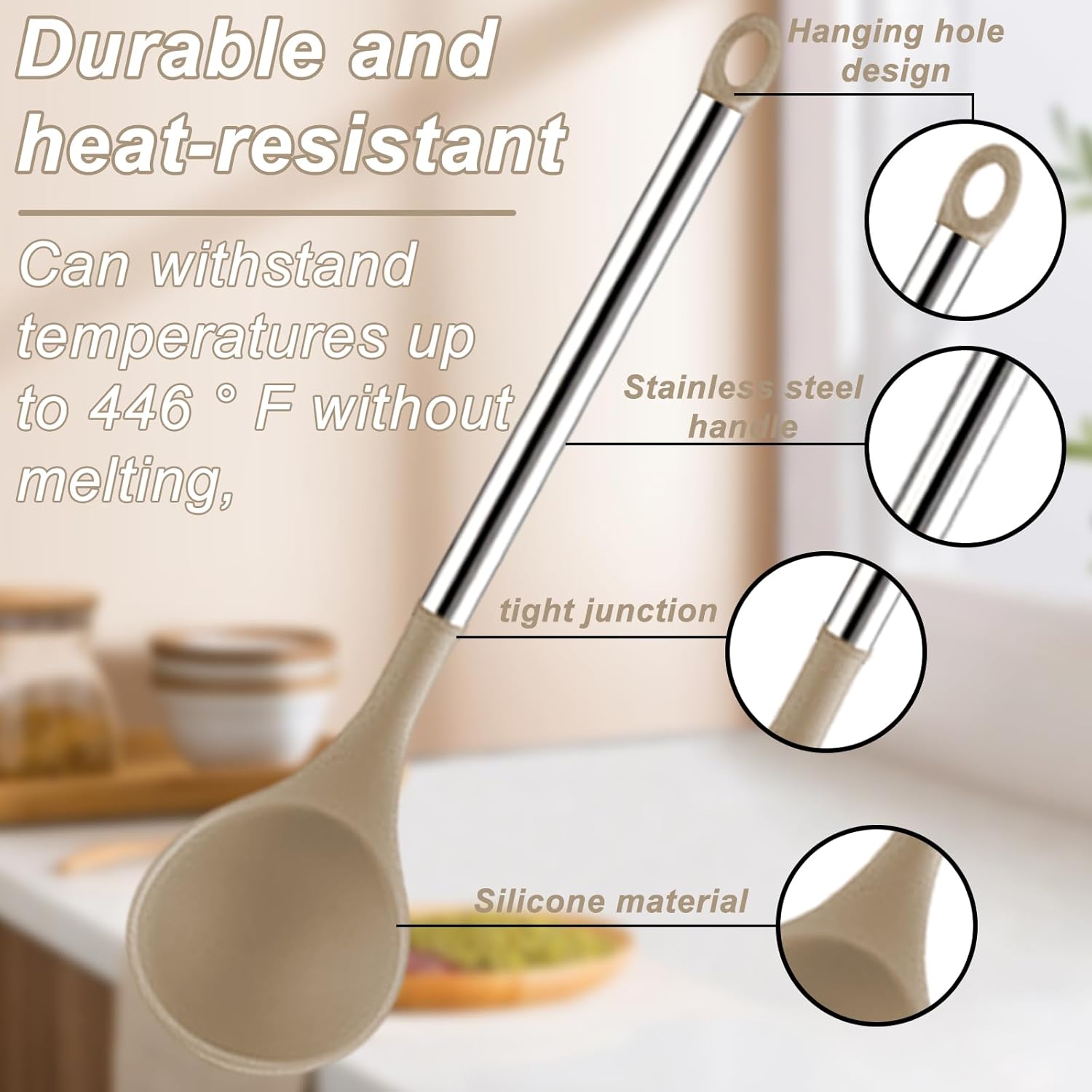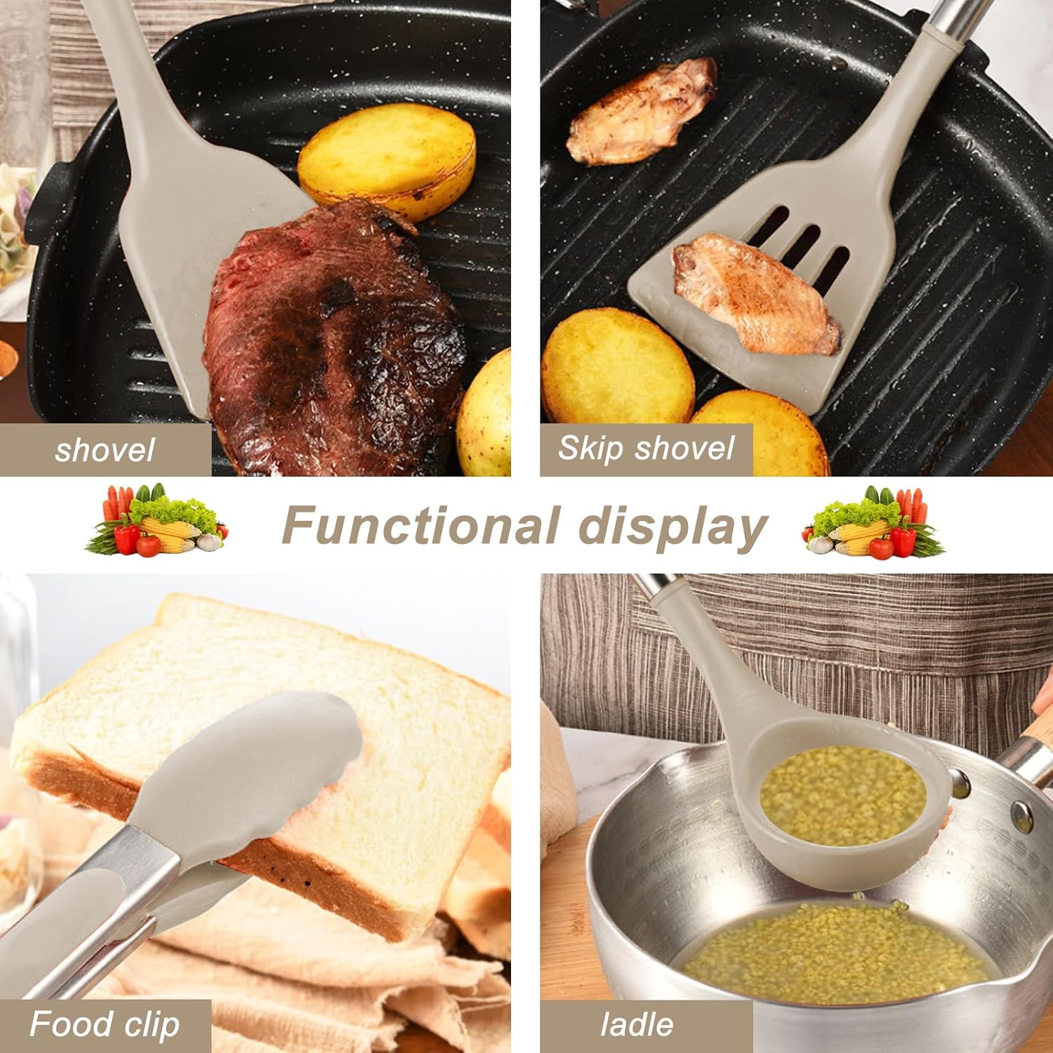 DLD 23-Piece Silicone Kitchen Utensils Set – Stainless Steel Handles – Beige