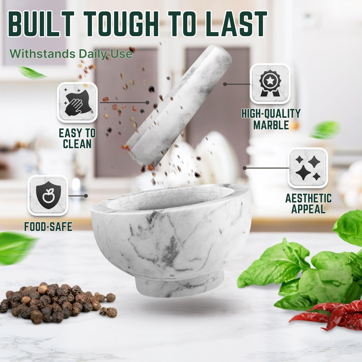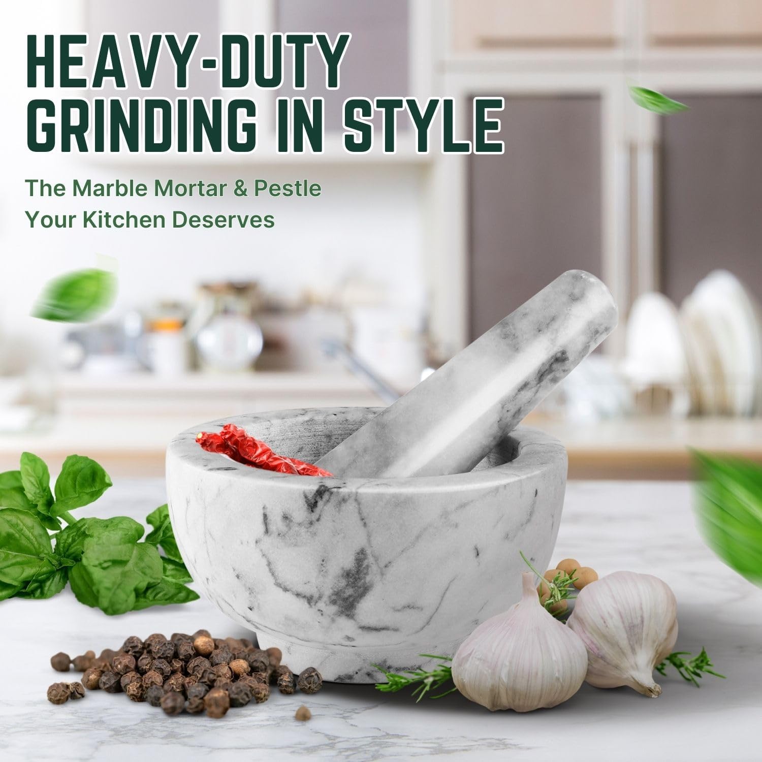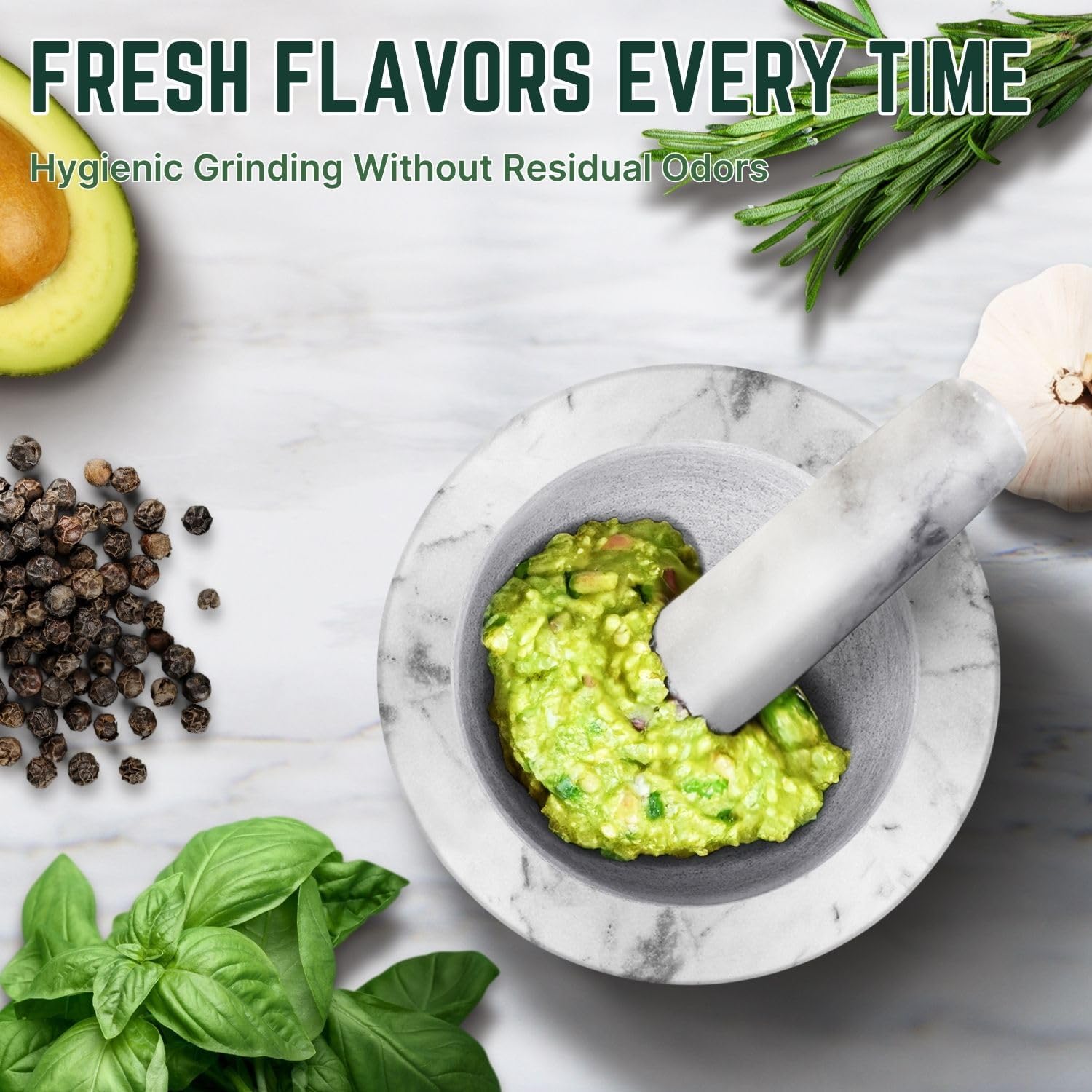 Flexzion Marble Mortar and Pestle Set – Solid White/Gray Stone Grinder Bowl
