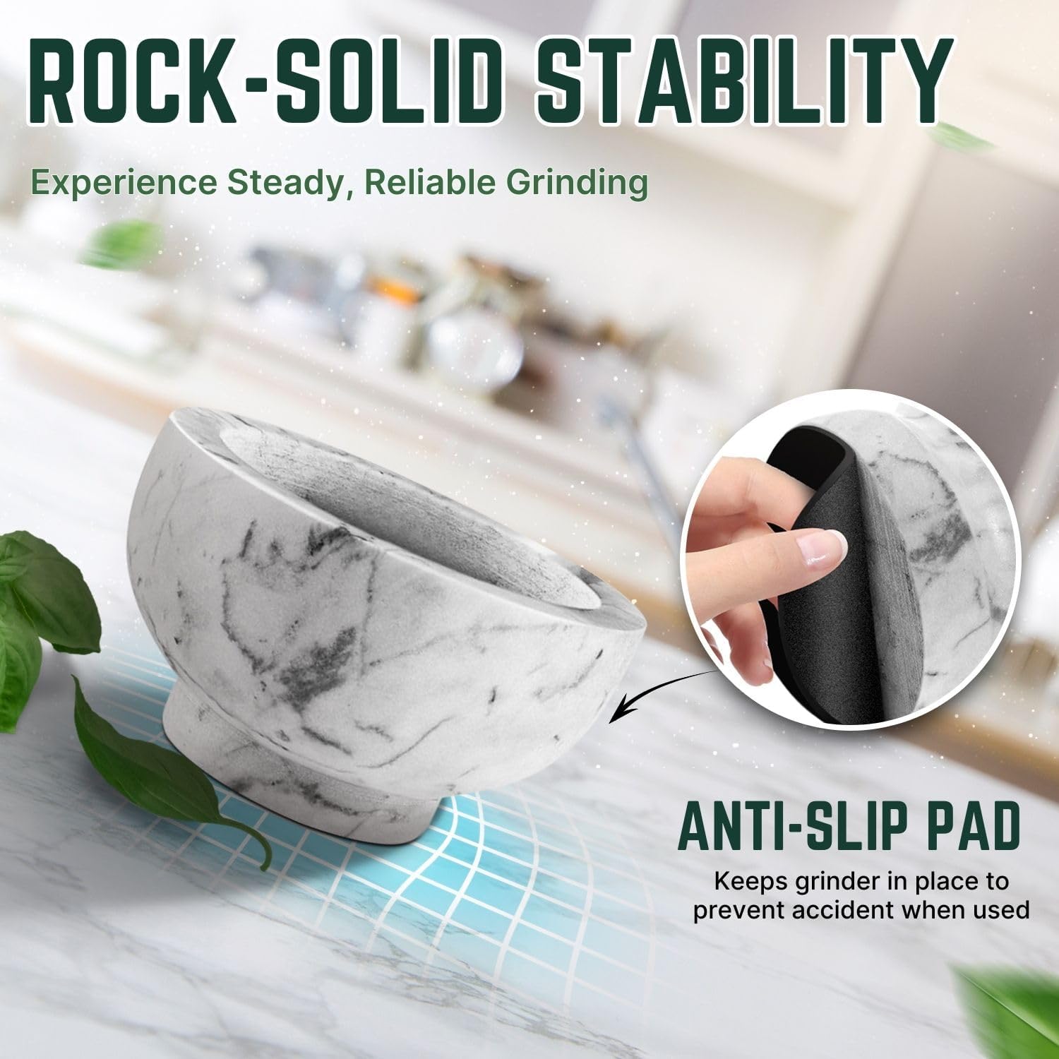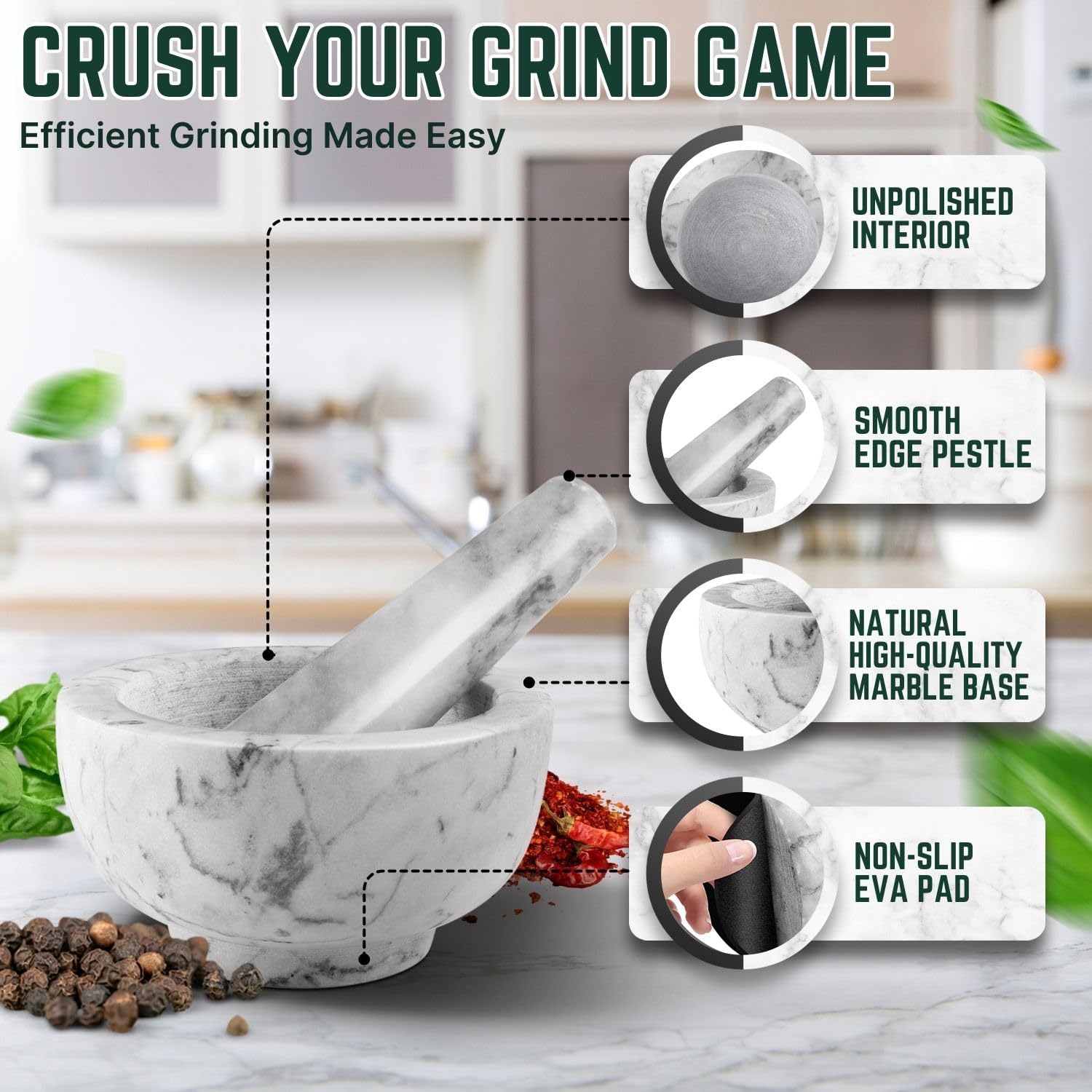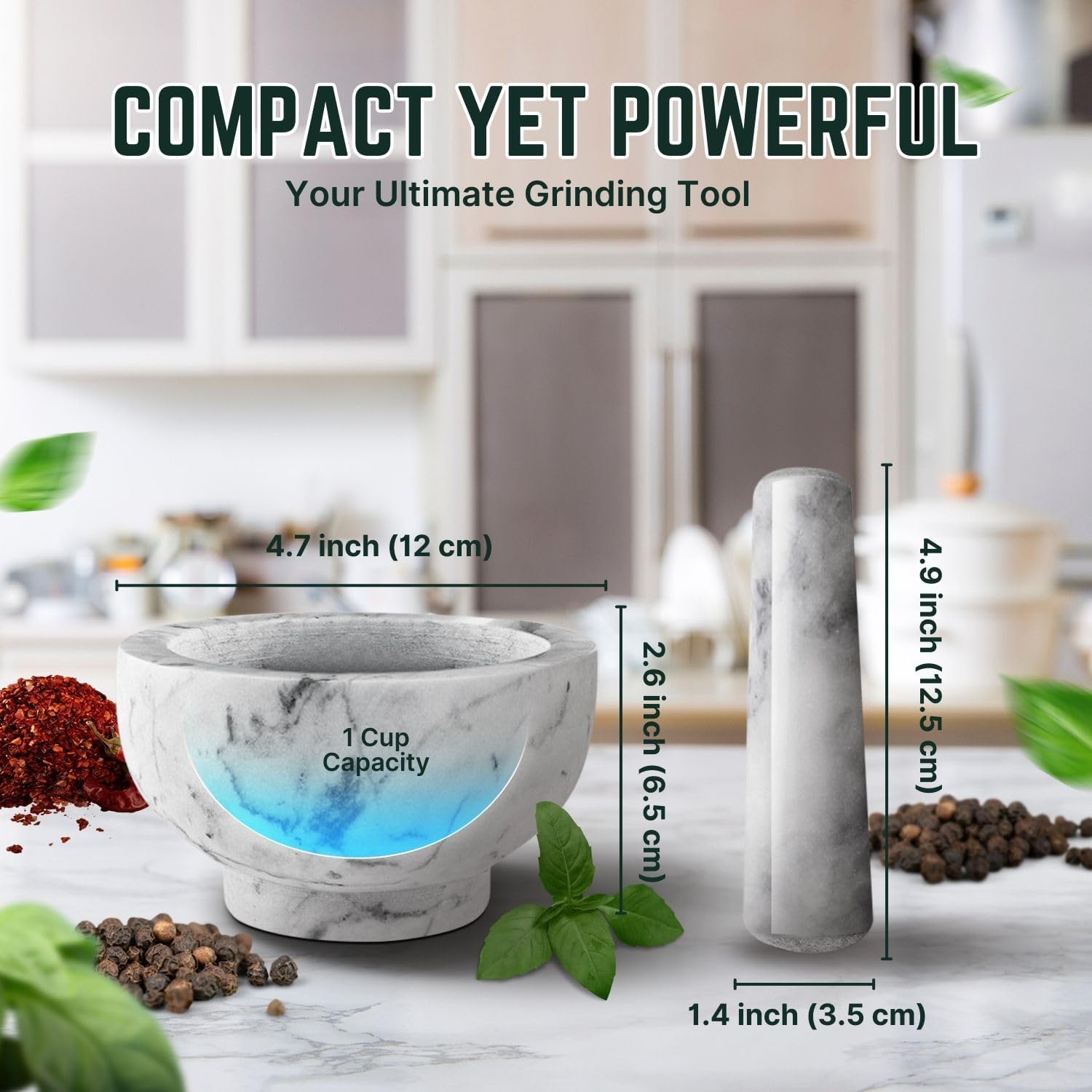 Flexzion Marble Mortar and Pestle Set – Solid White/Gray Stone Grinder Bowl