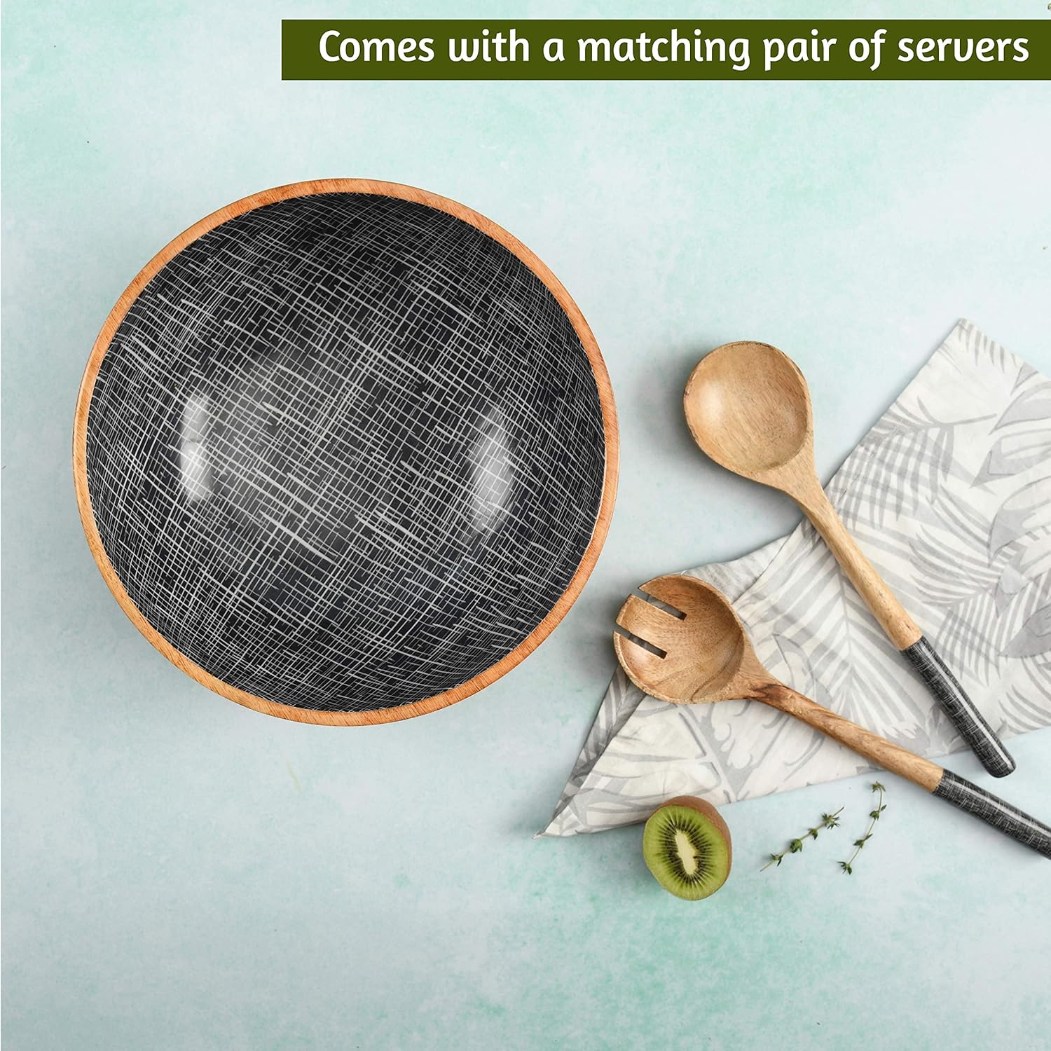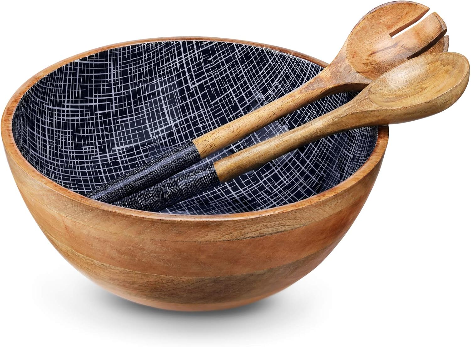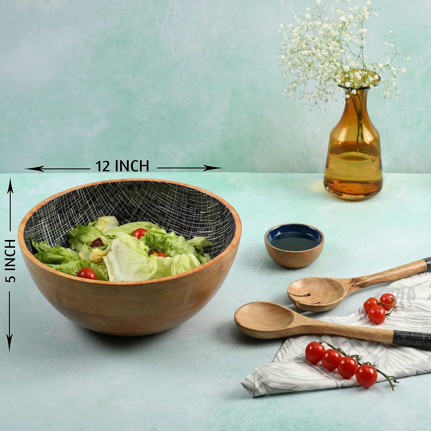 Folkulture Wooden Salad Bowl Set with Tongs – 12" Mango Wood