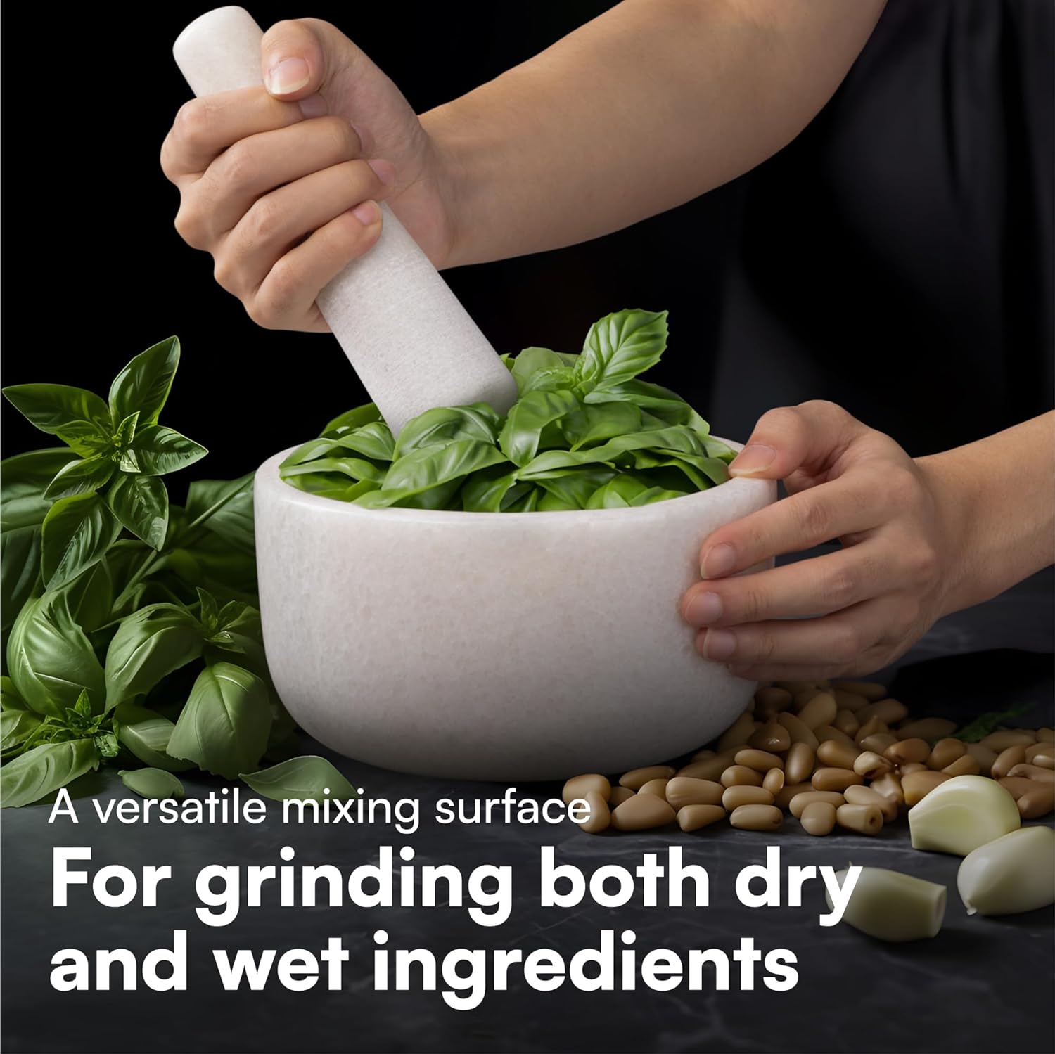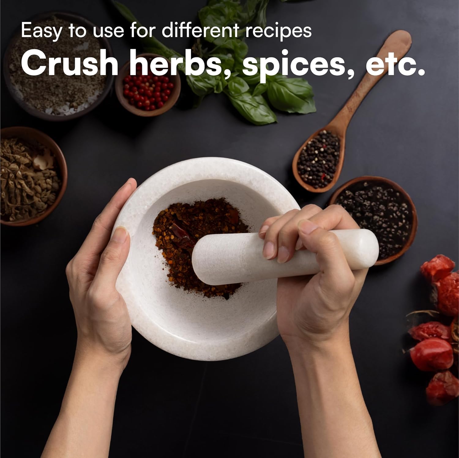 H&S Marble Mortar and Pestle Set – 18cm Stone Spice Grinder