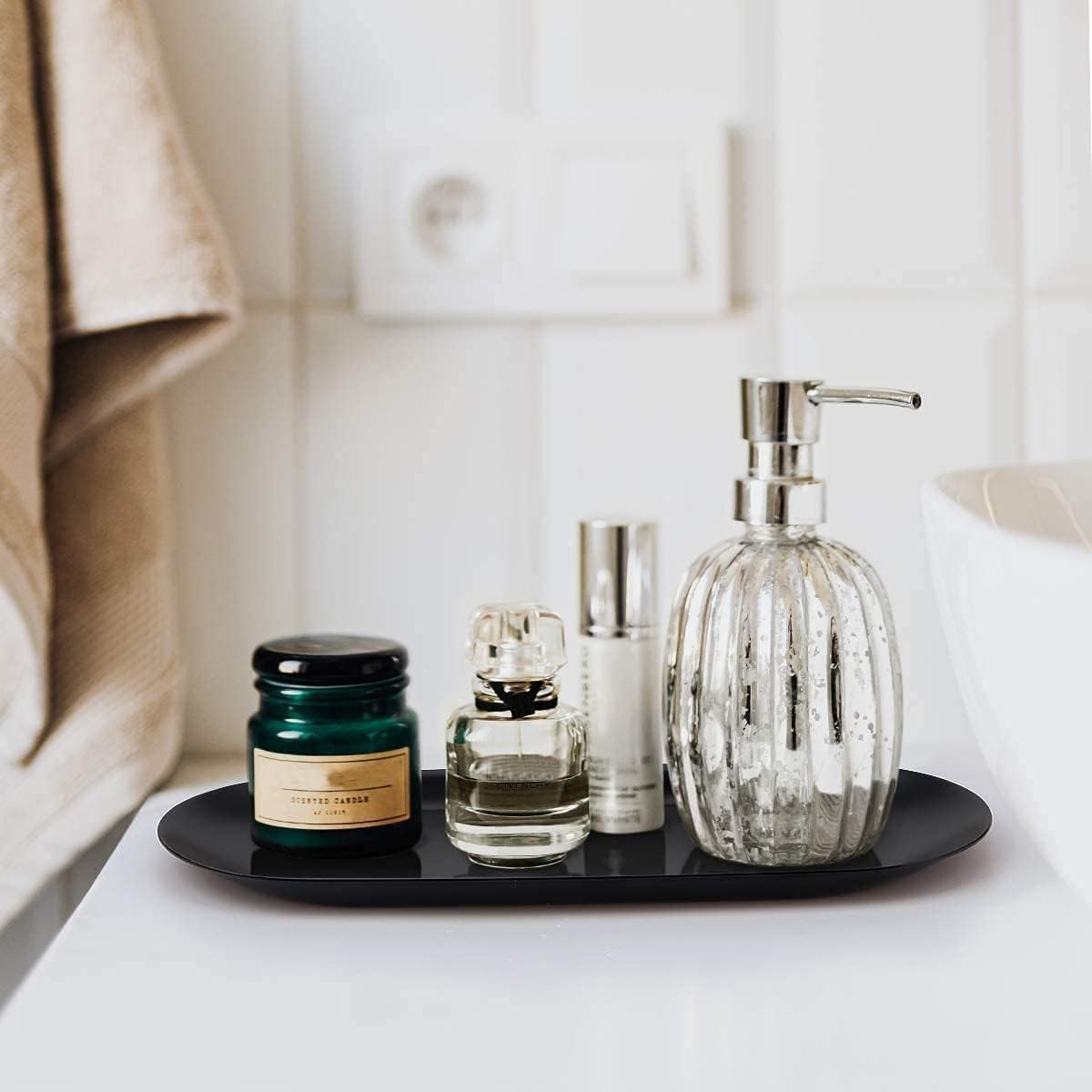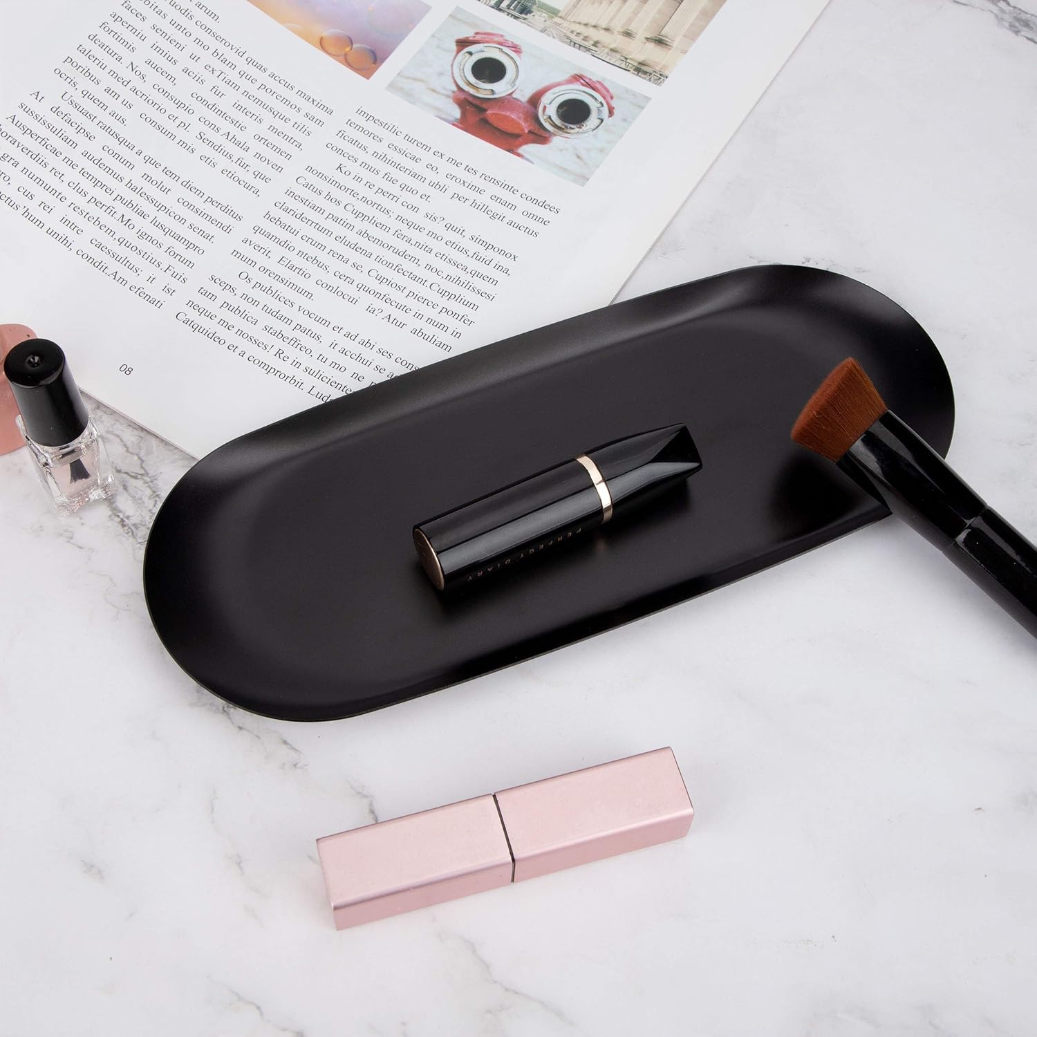 Hioph 2‑Pack Black Stainless Steel Vanity Trays – 9" for Cosmetics, Perfume & Jewelry