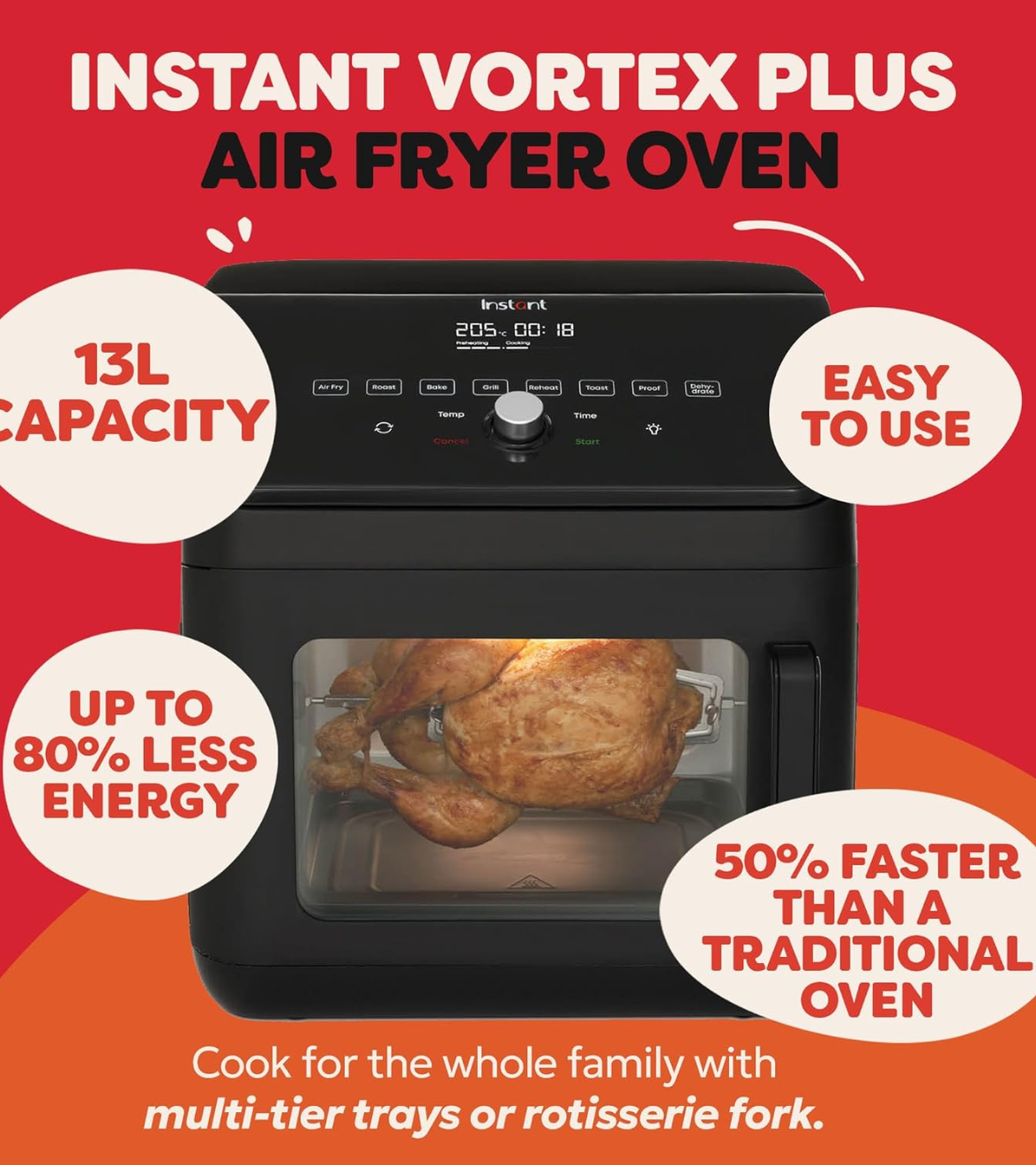Instant Vortex Plus 13L 9-in-1 Air Fryer Oven Black - 1700W Power - Used