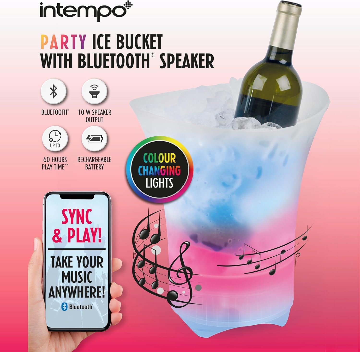 INTEMPO Ice Bucket Bluetooth Speaker – LED Party Speaker & Drinks Cooler