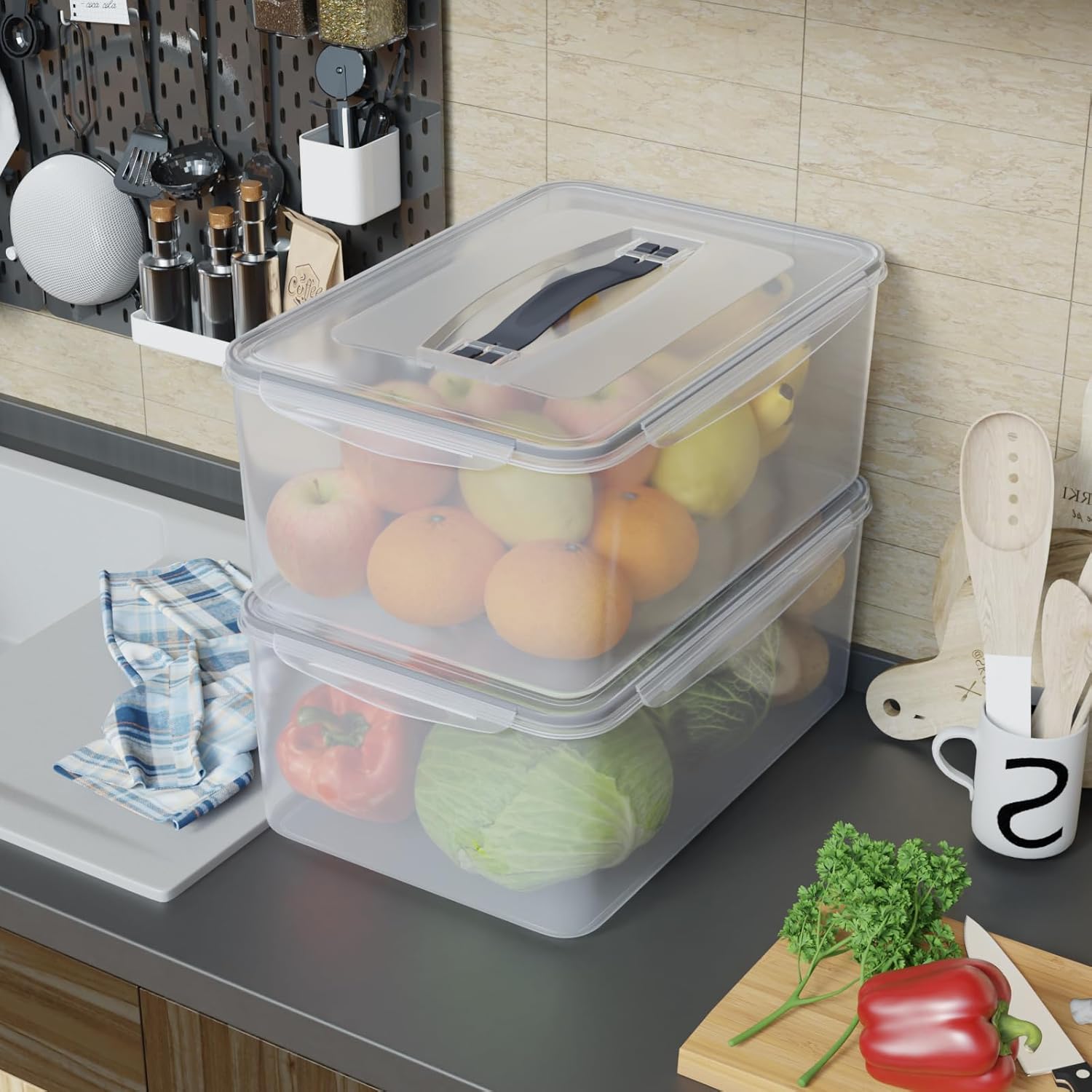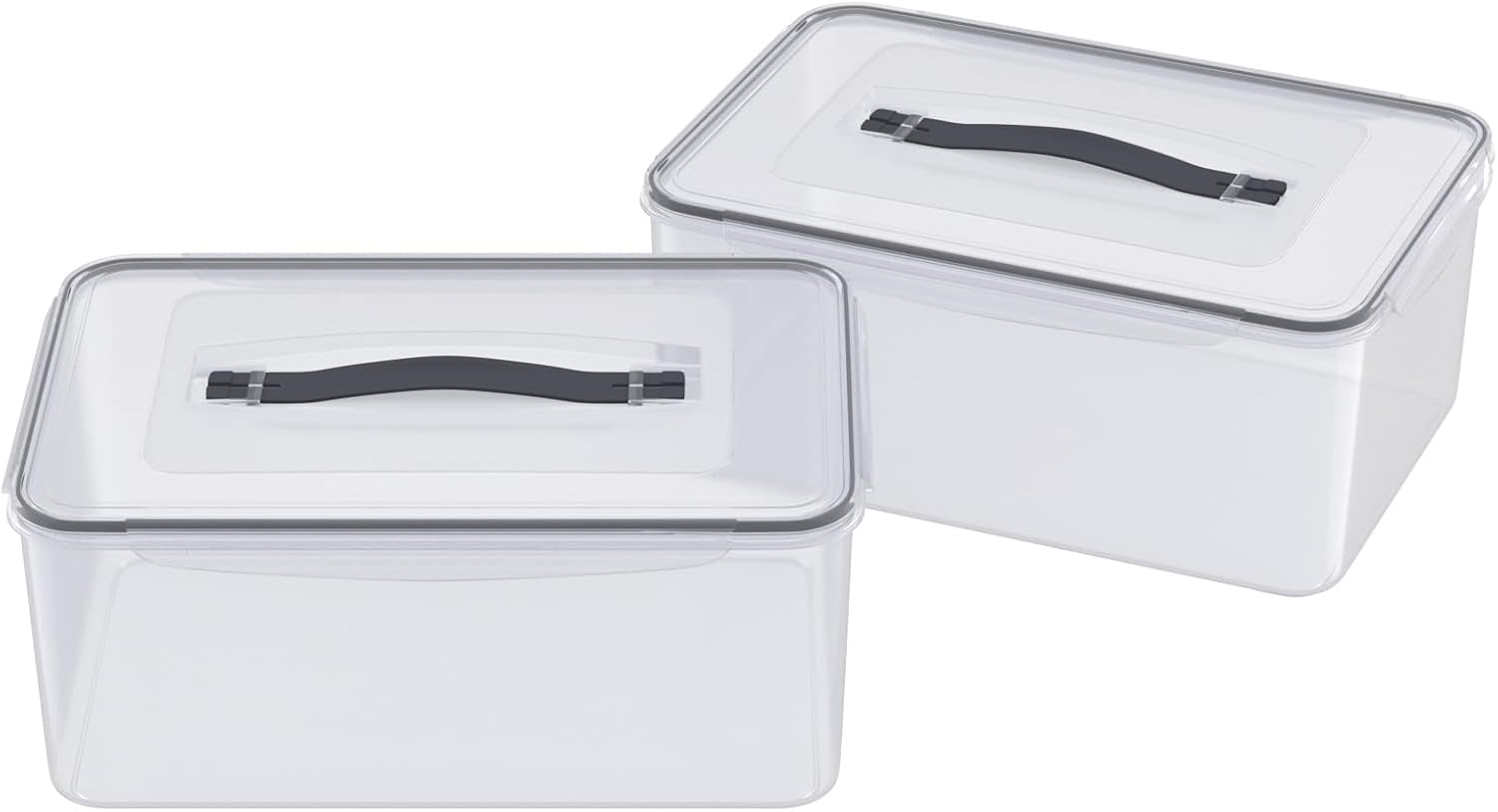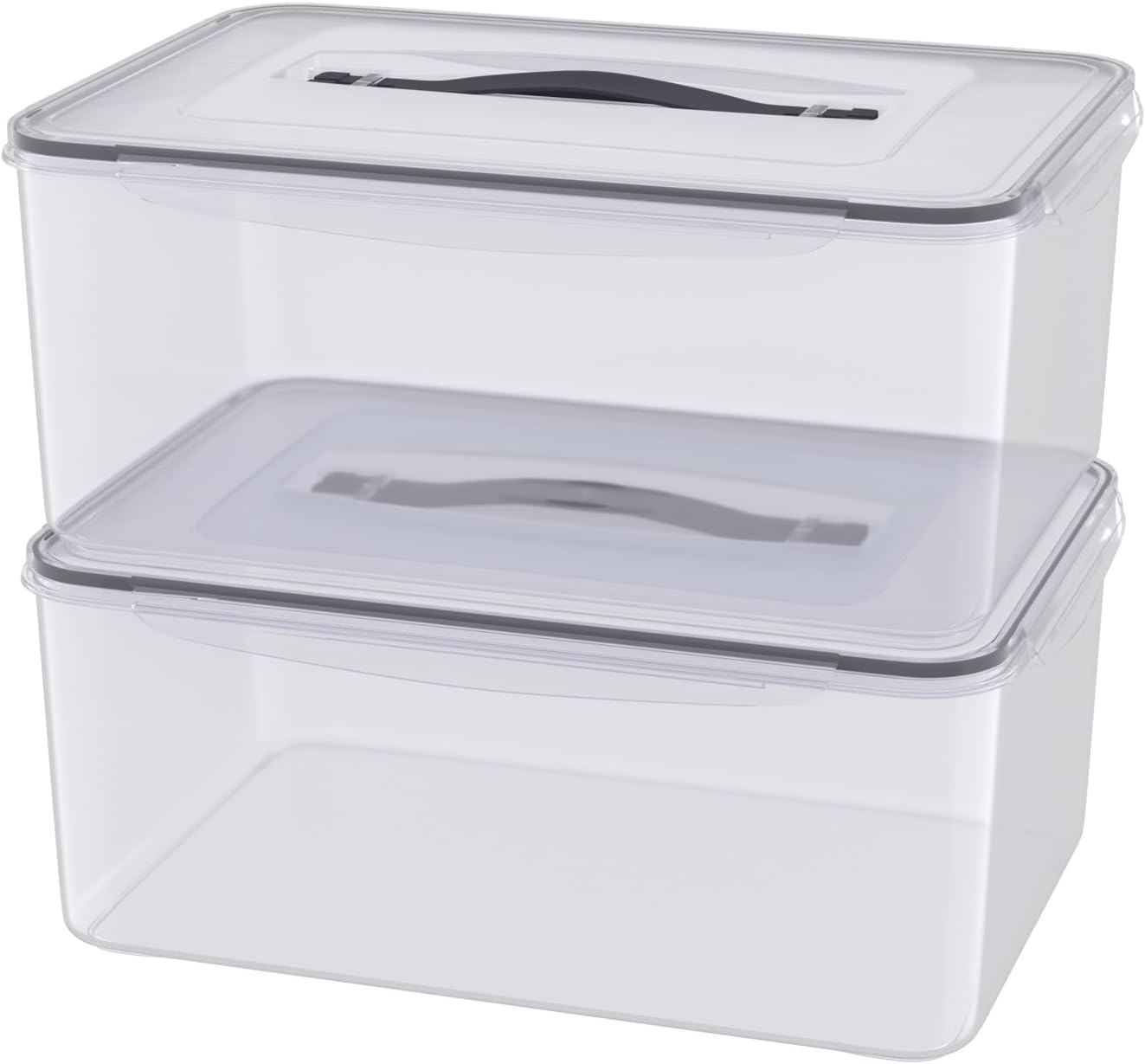 Kiddream 2 Pack 15L Rectangular Plastic Food Container with Latch Lid