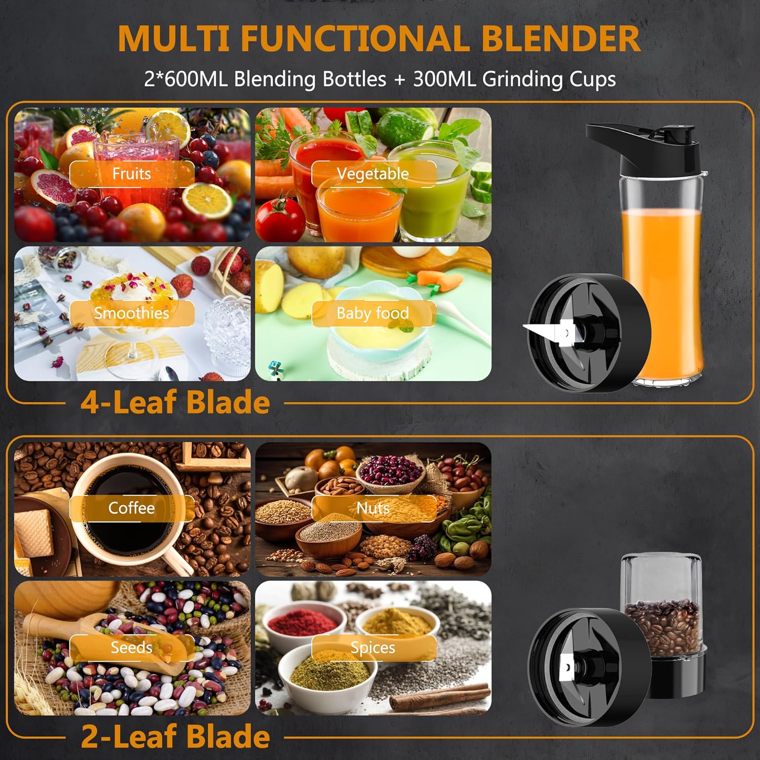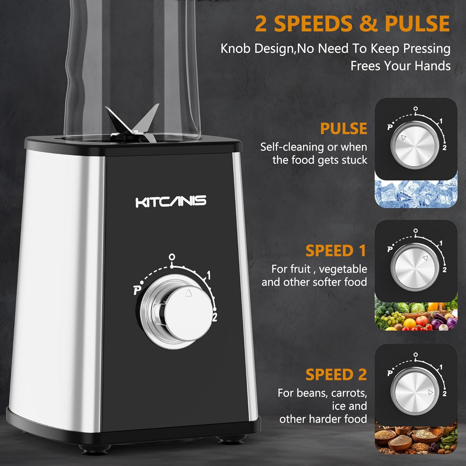 Kitcanis 800W 3-in-1 Smoothie Blender – Portable Mixer with Speeds & Grinder
