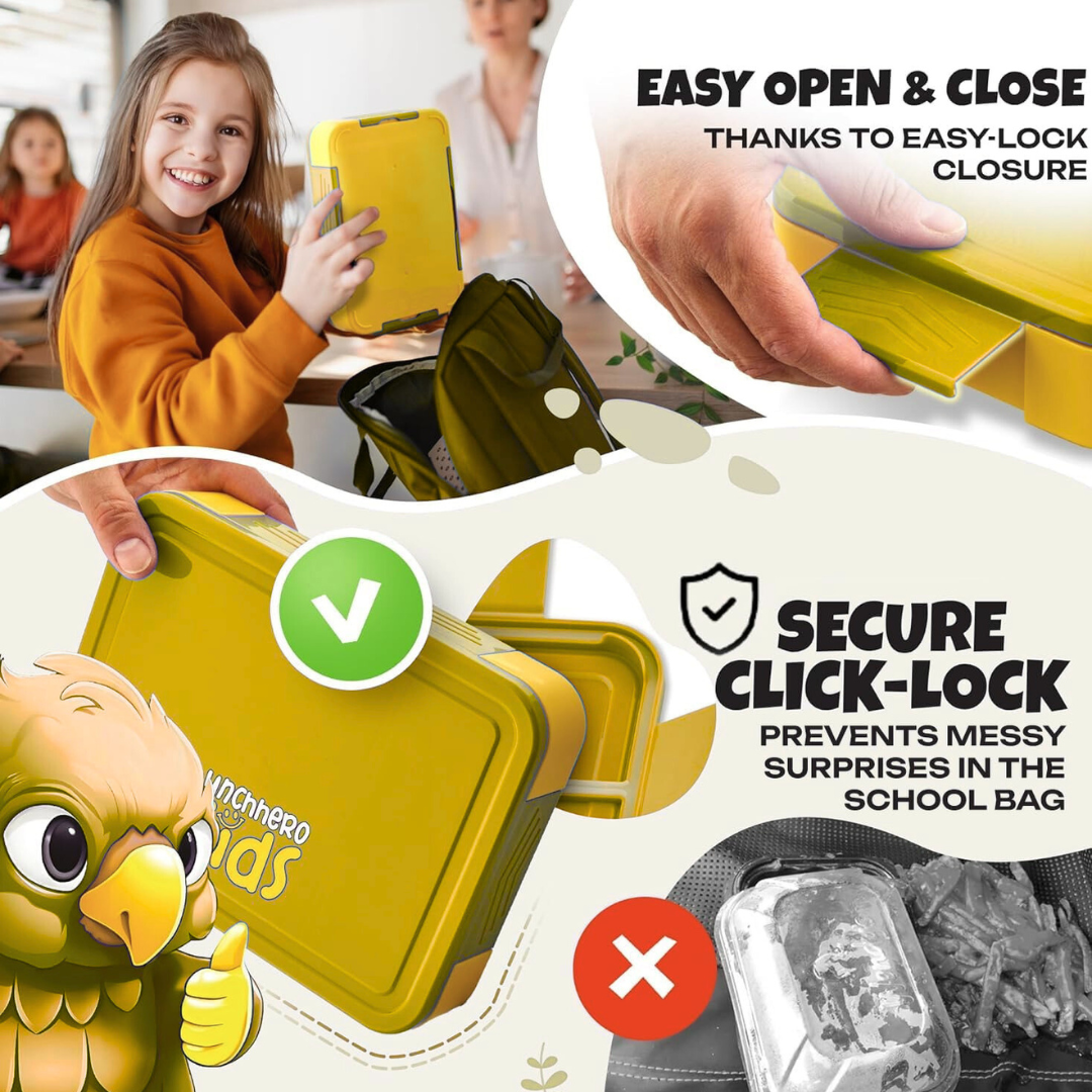 LUNCHHERO Kids Bento Lunch Box with Compartments & Cutlery