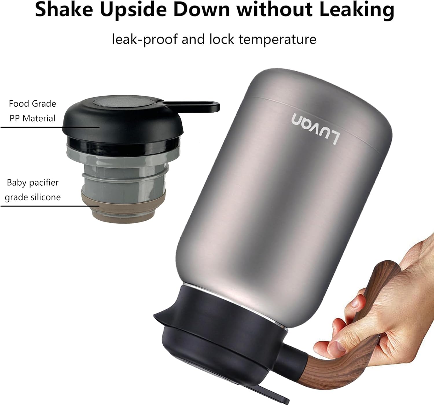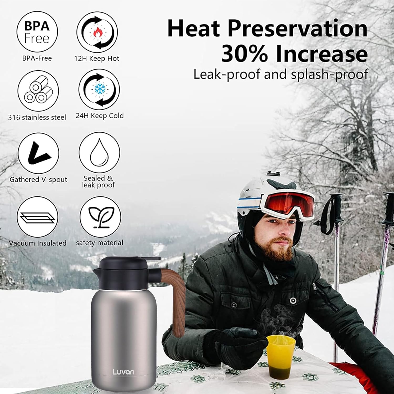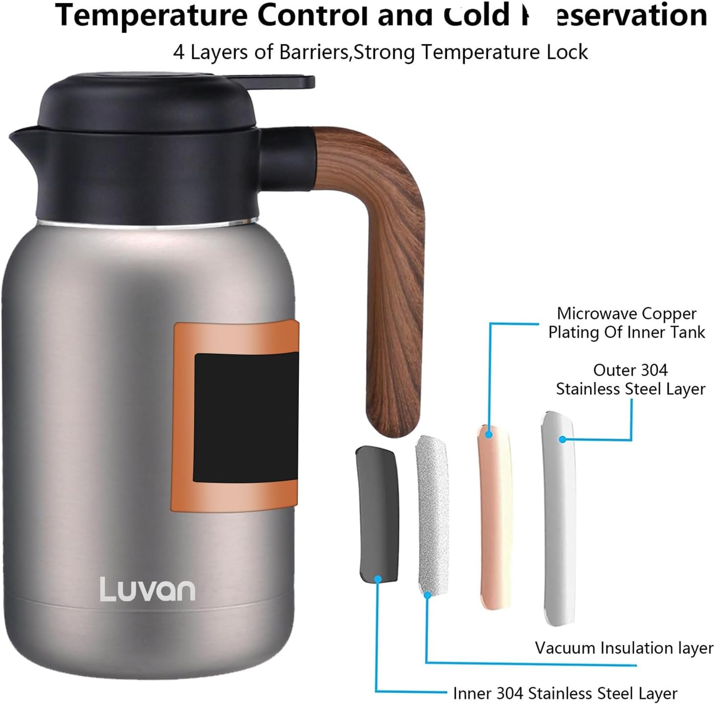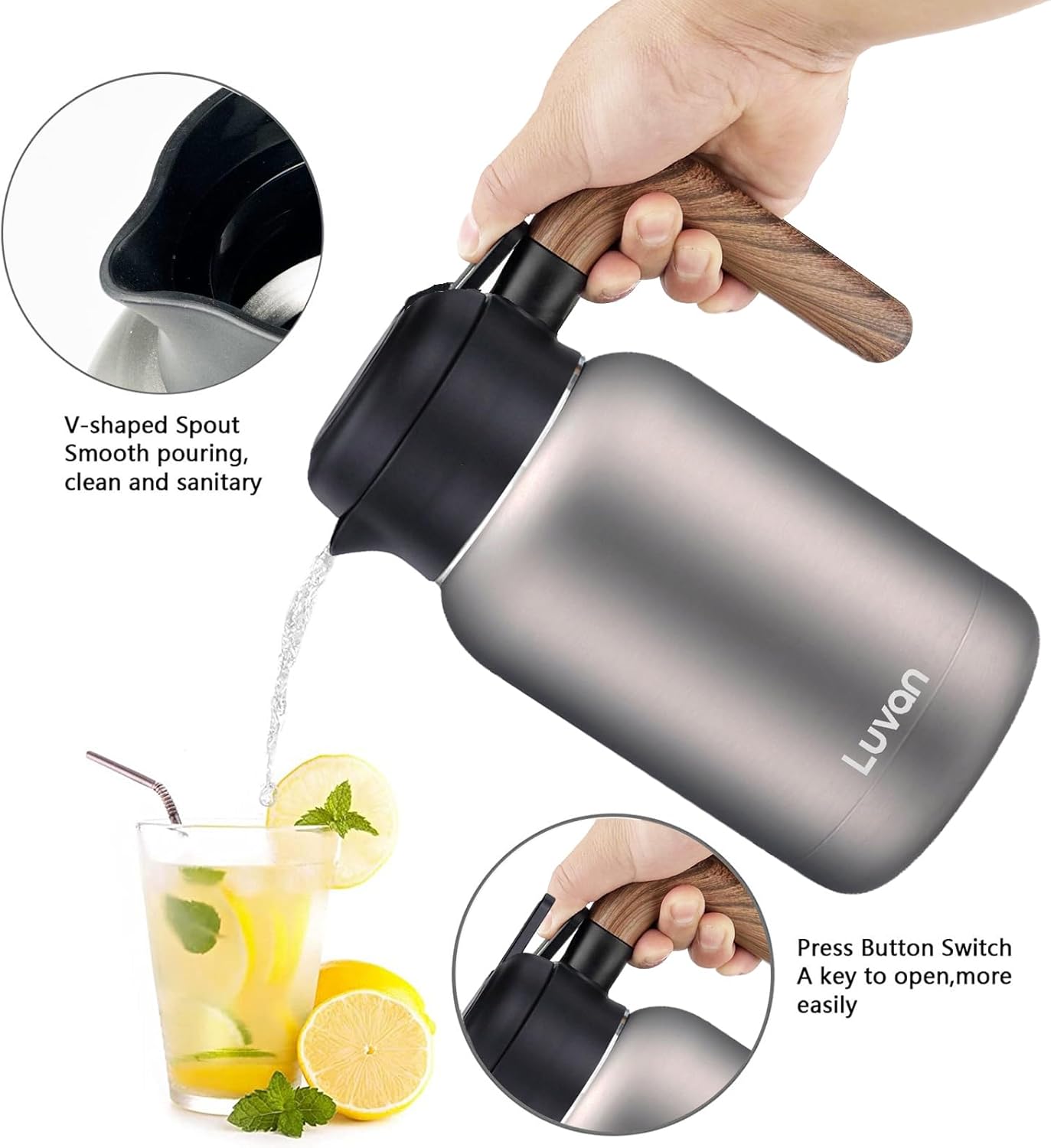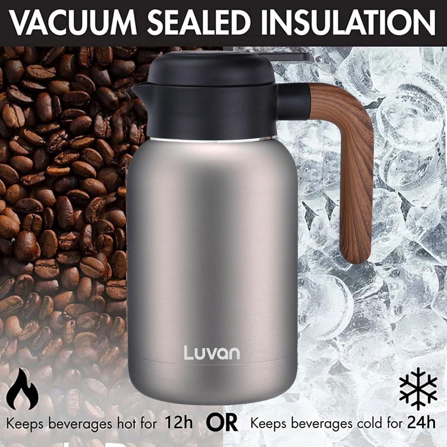 Luvan 2L Thermal Coffee Carafe – 316 Stainless Steel, Vacuum Insulated, Wood Grip