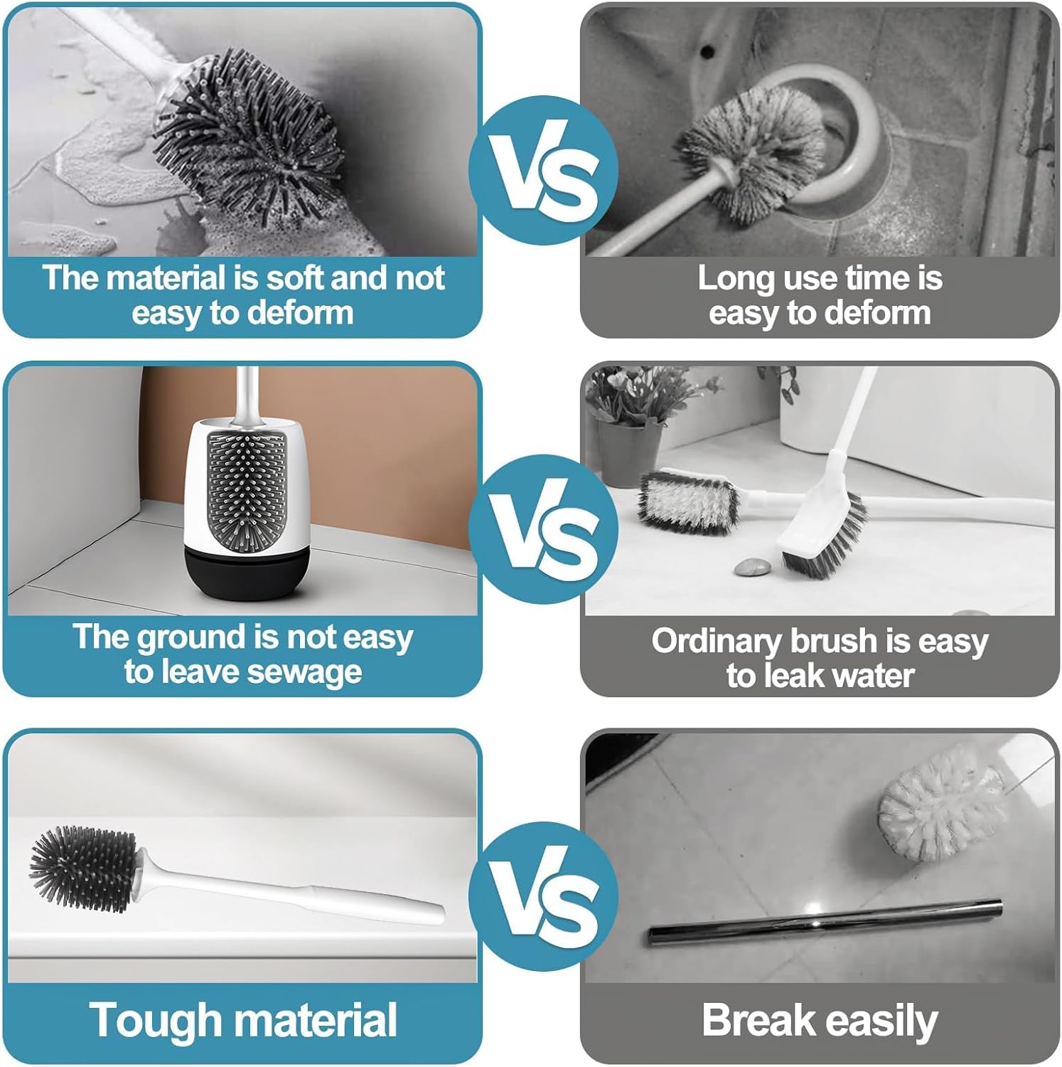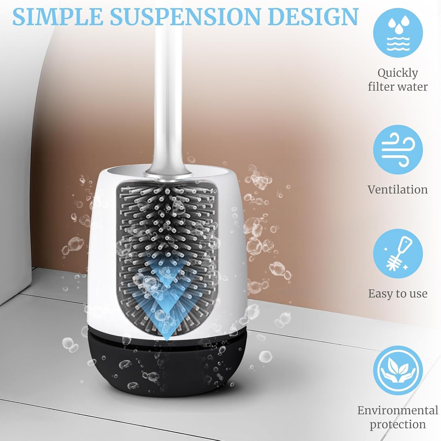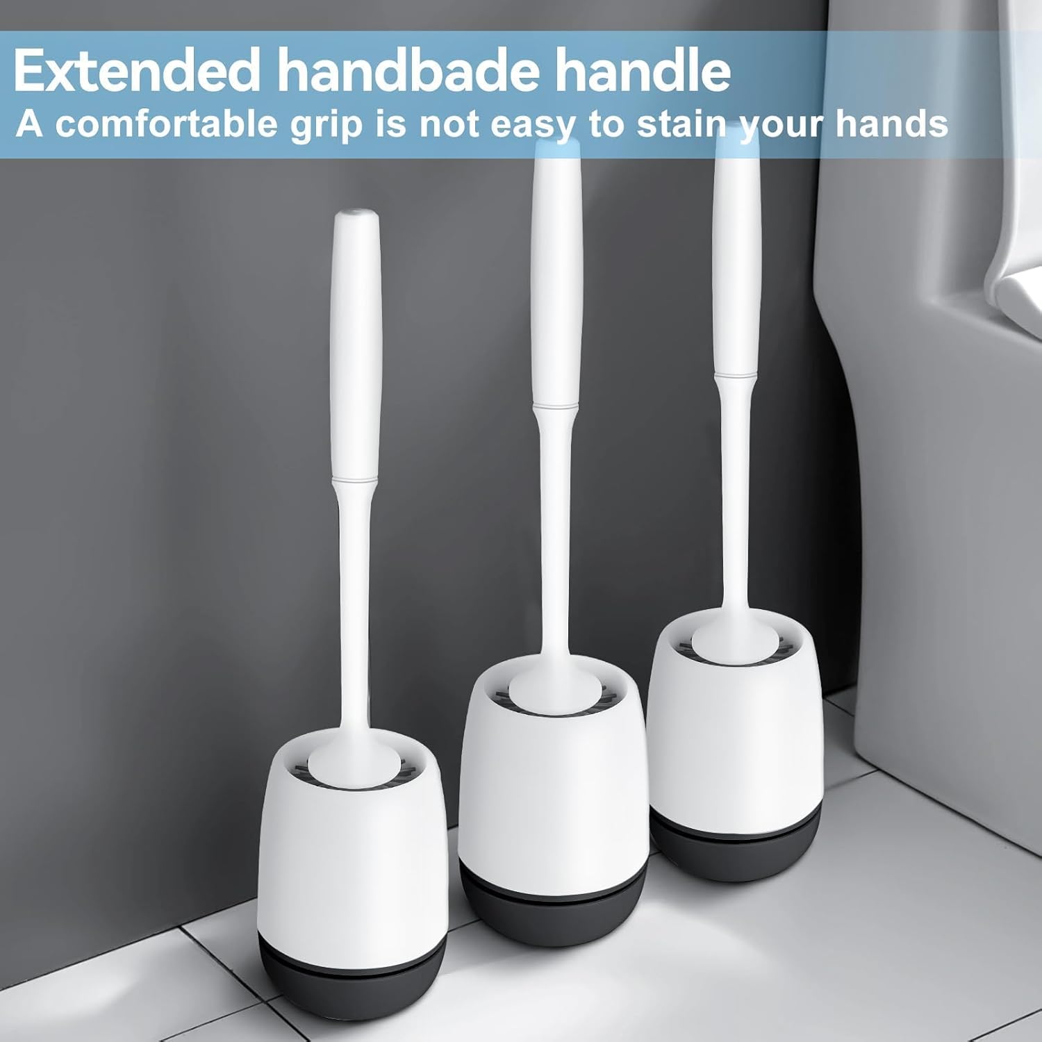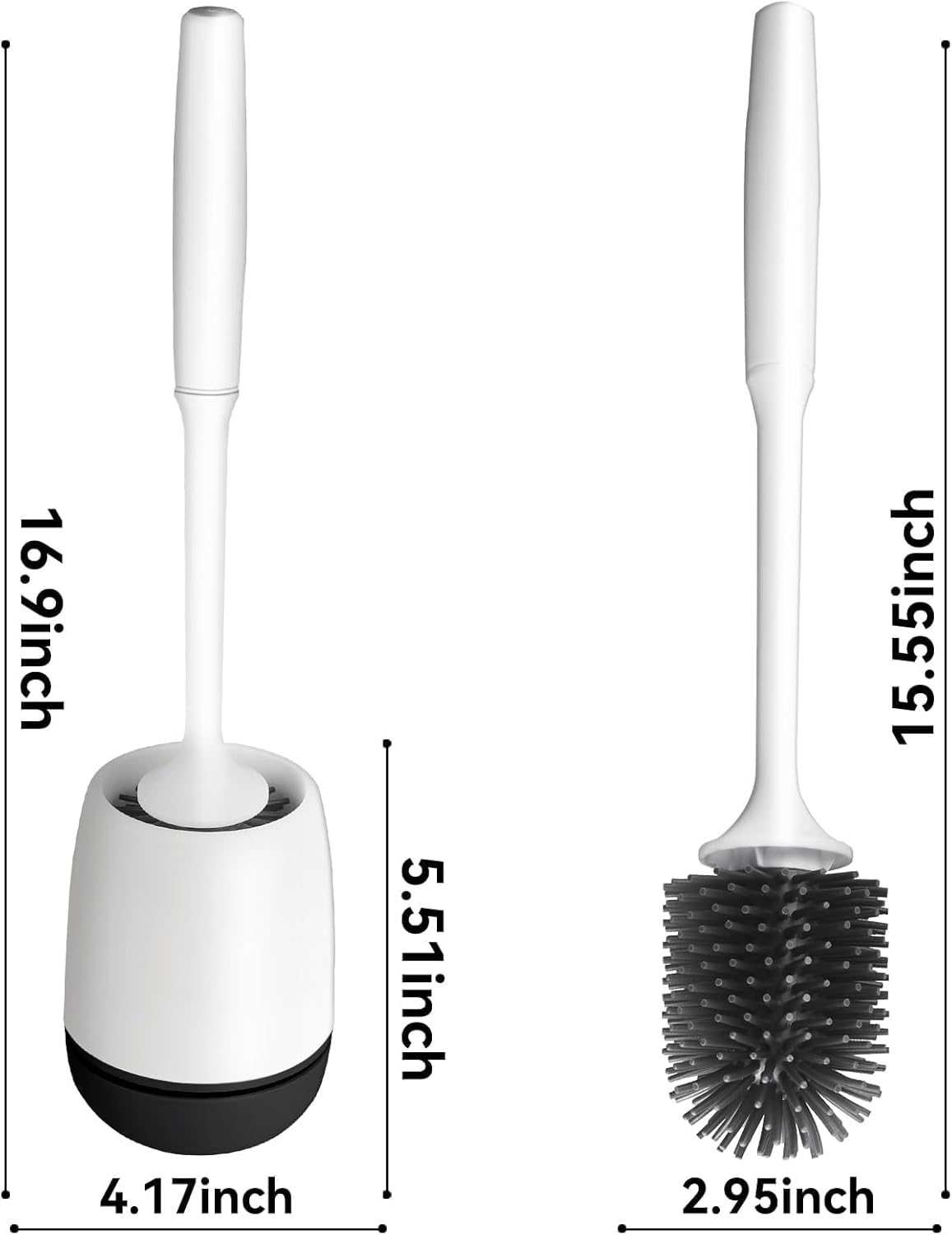 MEKEET Silicone Toilet Brush & Holder Set with Soft Bristle Brush – Black/White