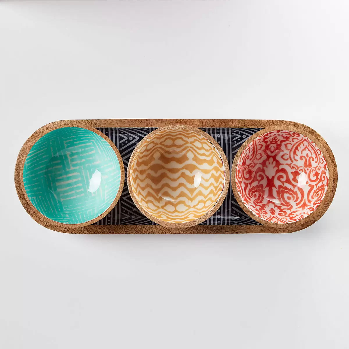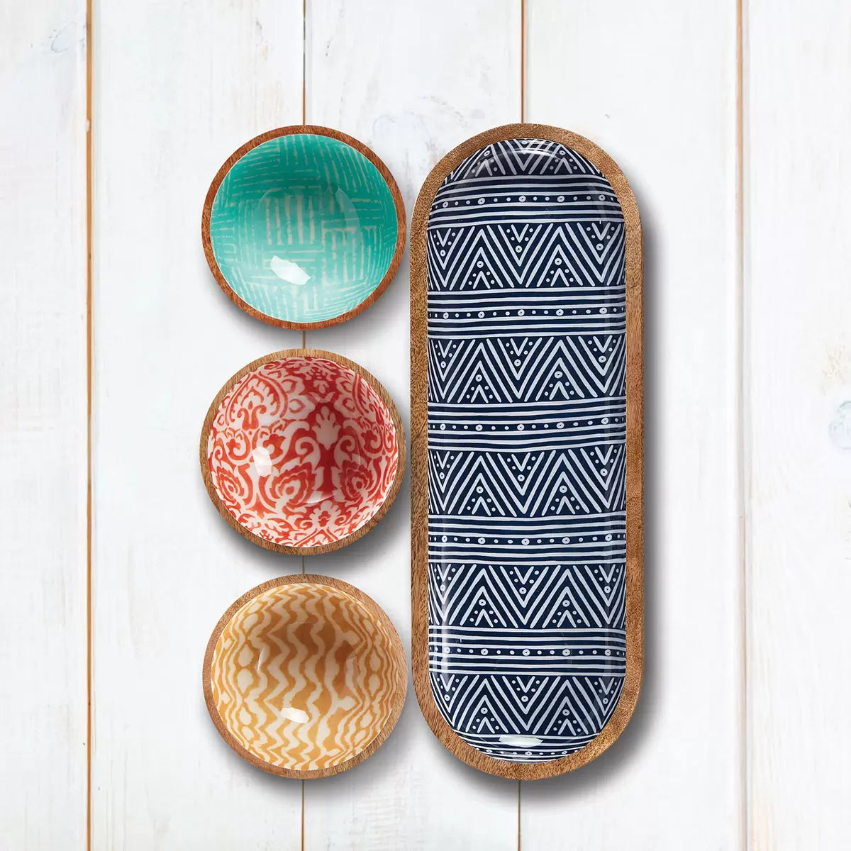 Mesa Wooden Bowl and Tray Set – 4 Piece Mango Wood Serving Set, 3 Bowls + 1 Tray