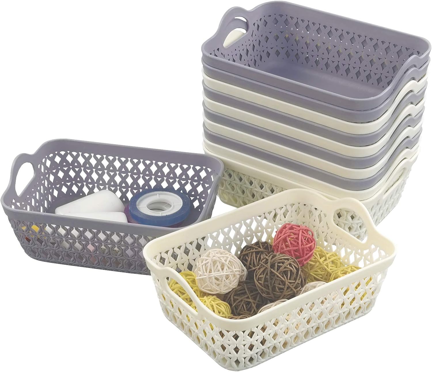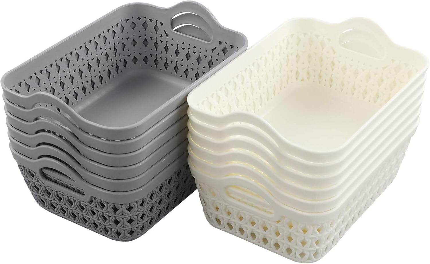 Bblina Mini Storage Tray, Plastic Storage Basket Trays Set of 12 With Handles, (White/Grey)