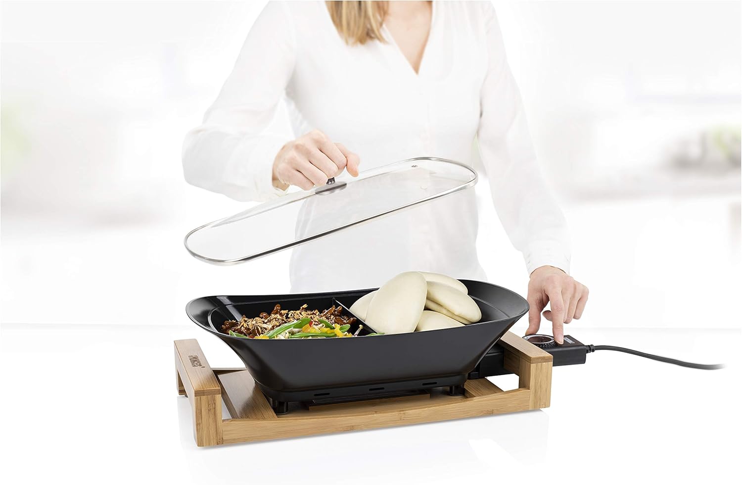 Princess Multi Cook Tabletop Cooker & Buffet Server – 4L, 1600W, Bamboo Stand