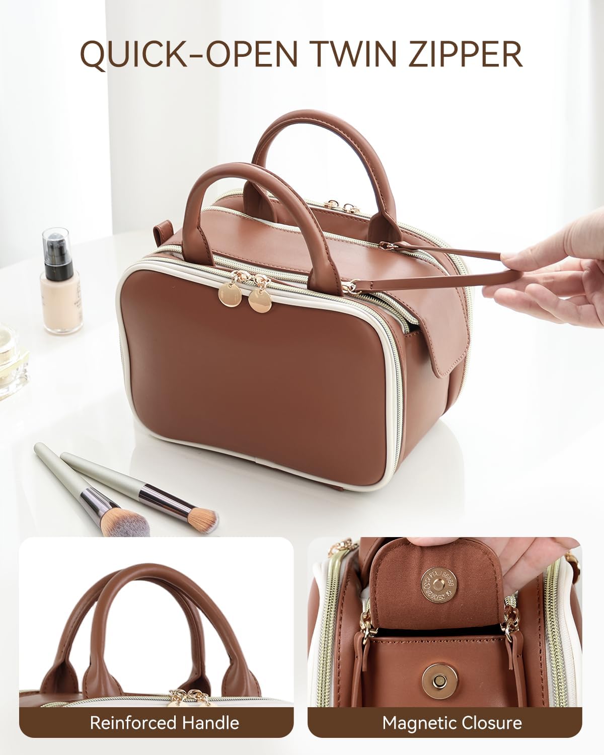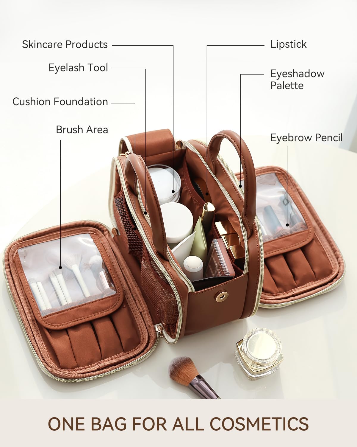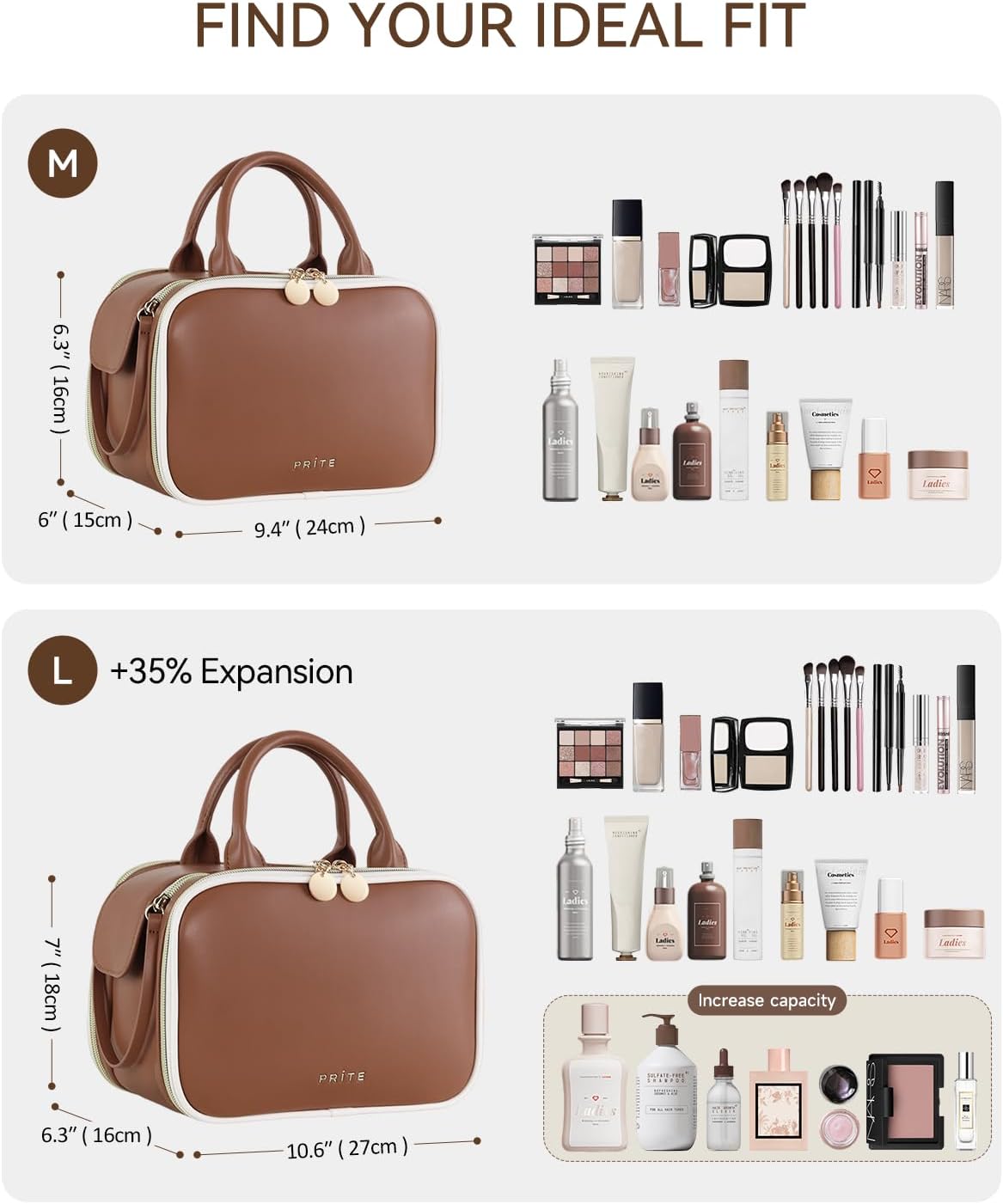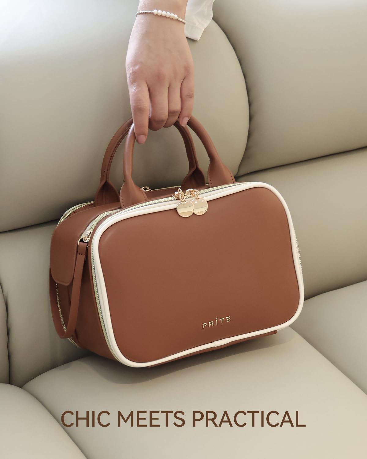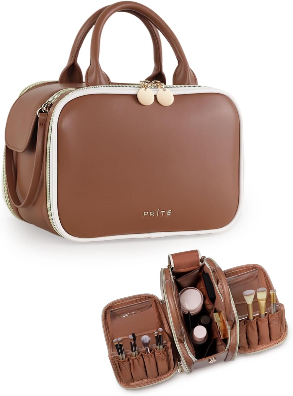 Prite Makeup Bag – Large Capacity Travel Cosmetic Bag with Side Openings