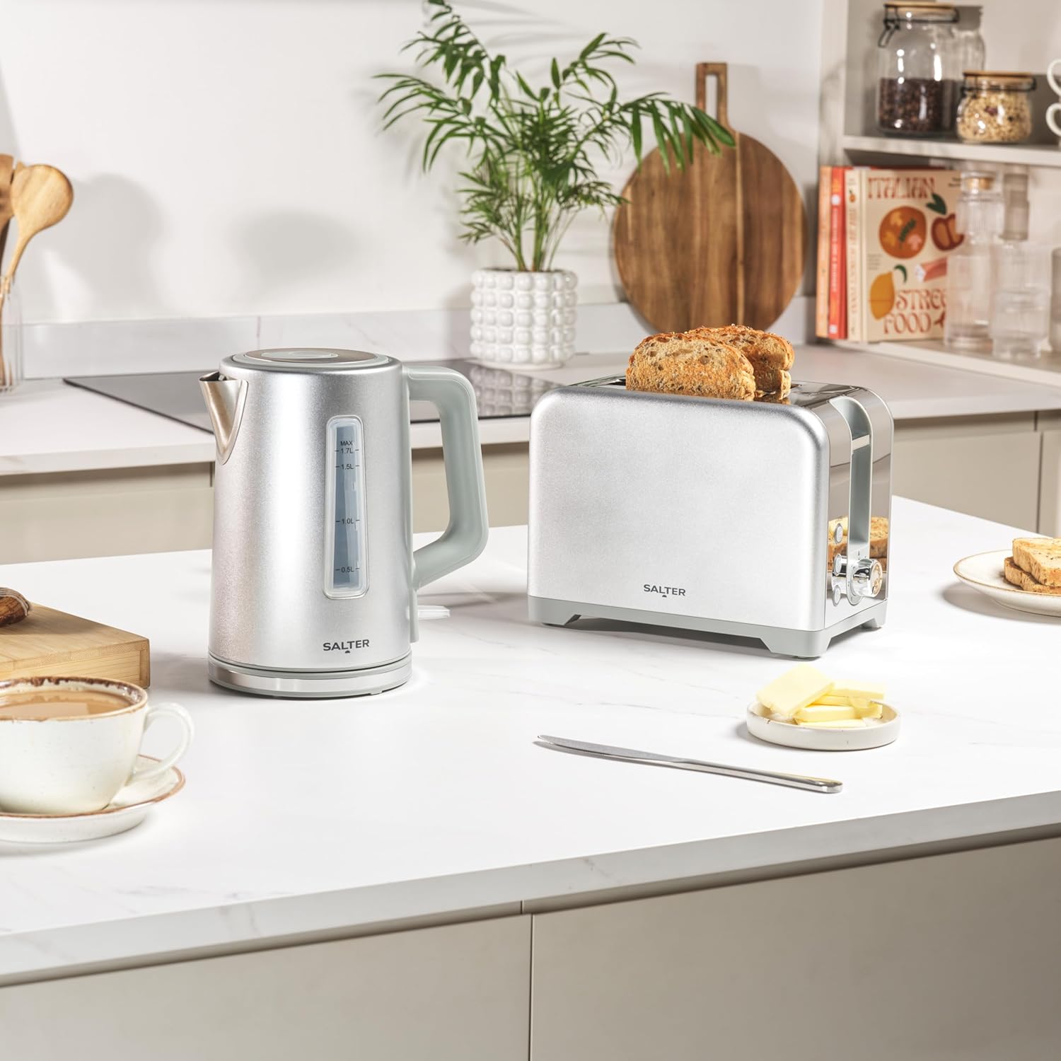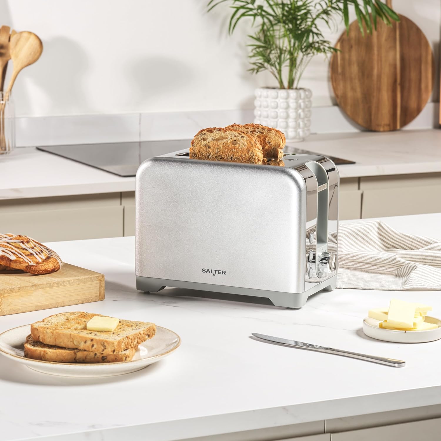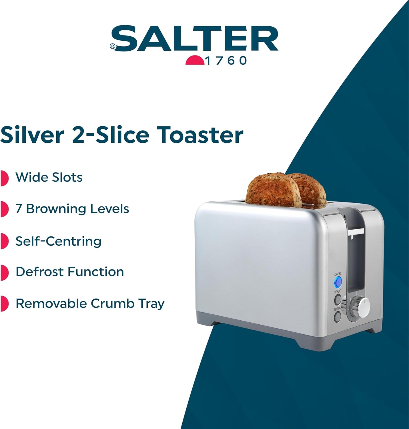 Salter Aspen 2-Slice Toaster – Wide Slots, 7 Browning Levels, 930W, Silver