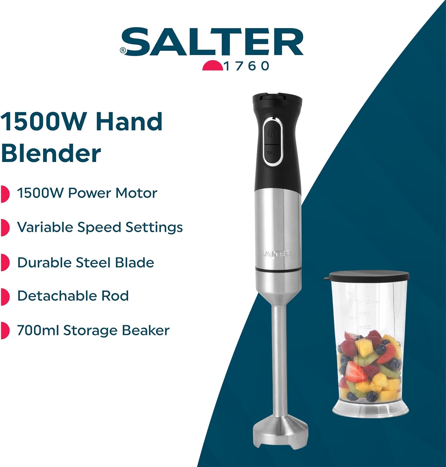 Salter Electric Hand Blender 1500W with 700ml Beaker, Black - Used