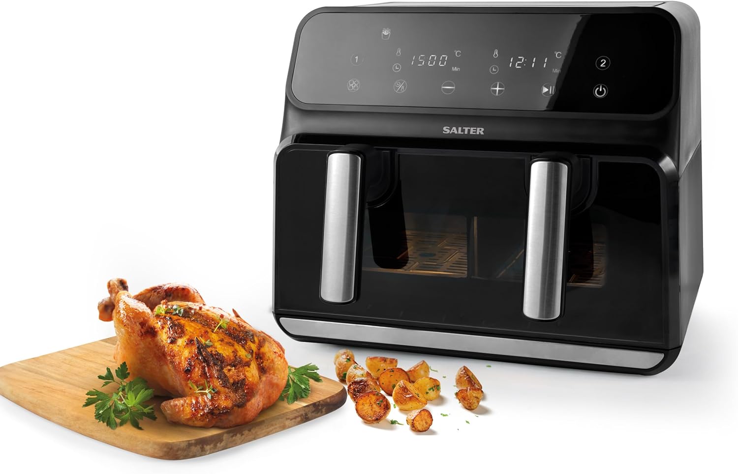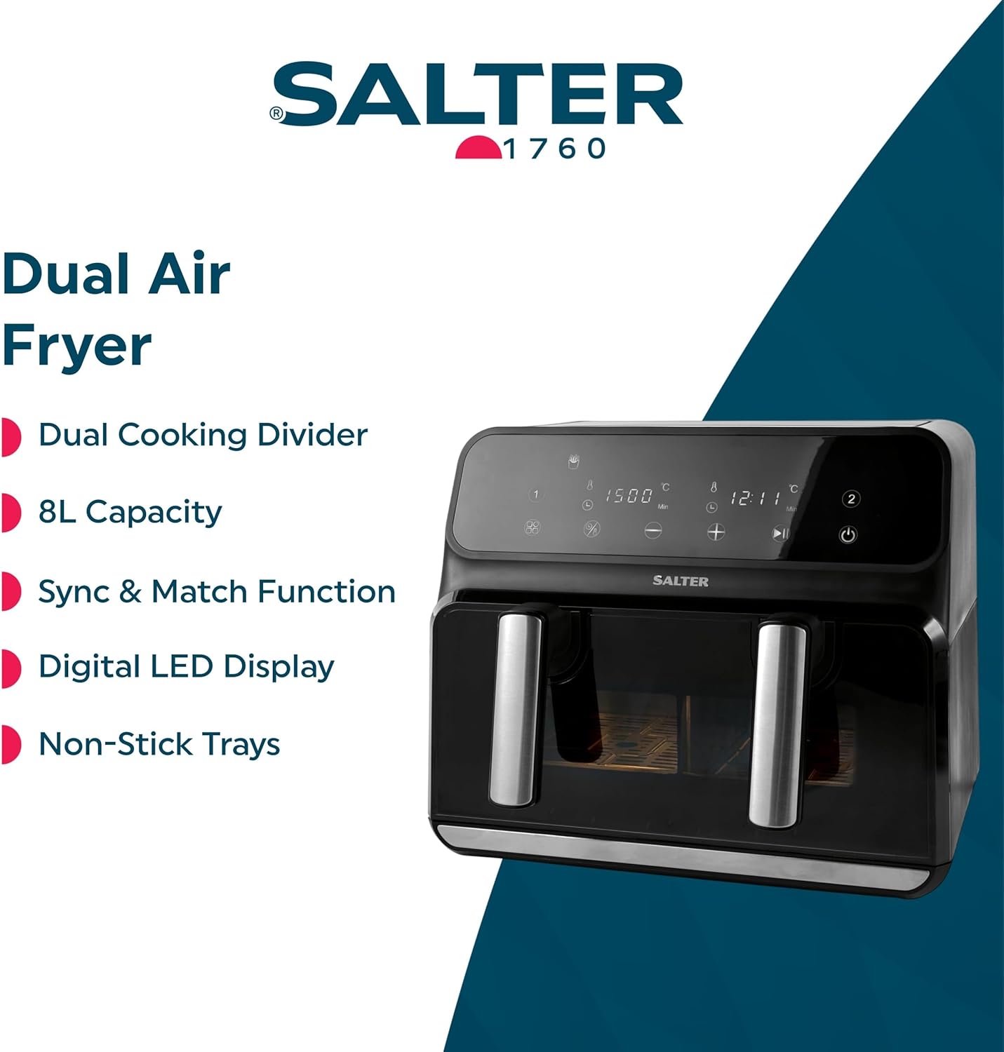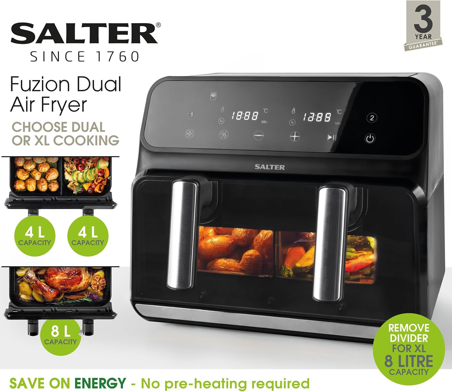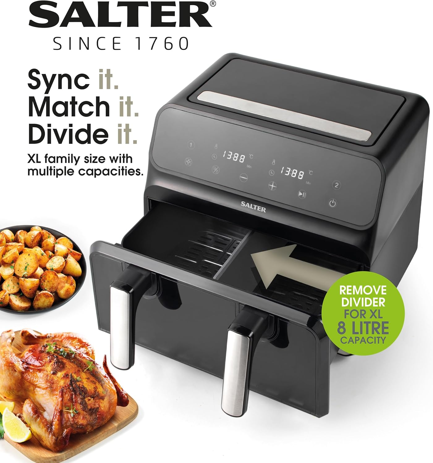 Salter Fuzion Dual Air Fryer – 8L XL Capacity with Removable Divider, 1700W