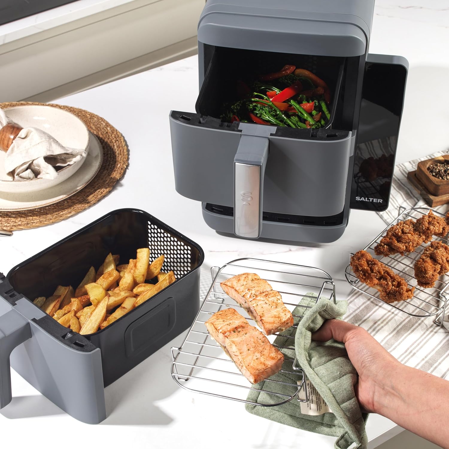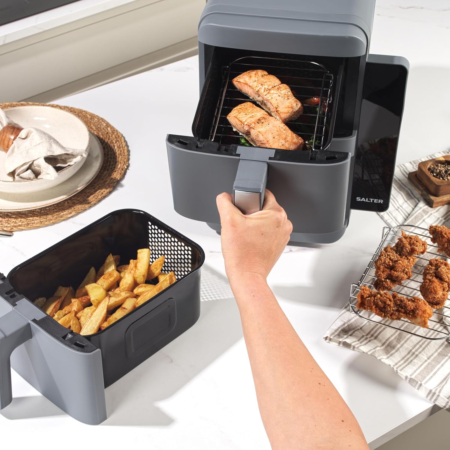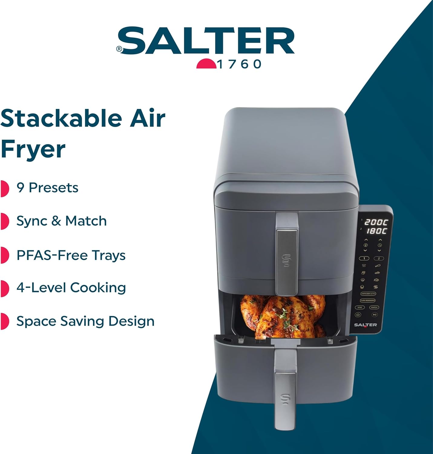 Salter VertiLayer Stackable Air Fryer – 9L Dual Drawer, 4-Layer Cooking, 2400W