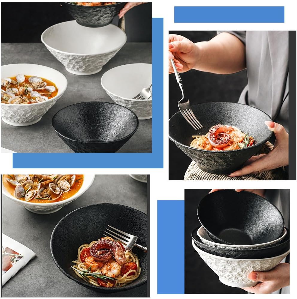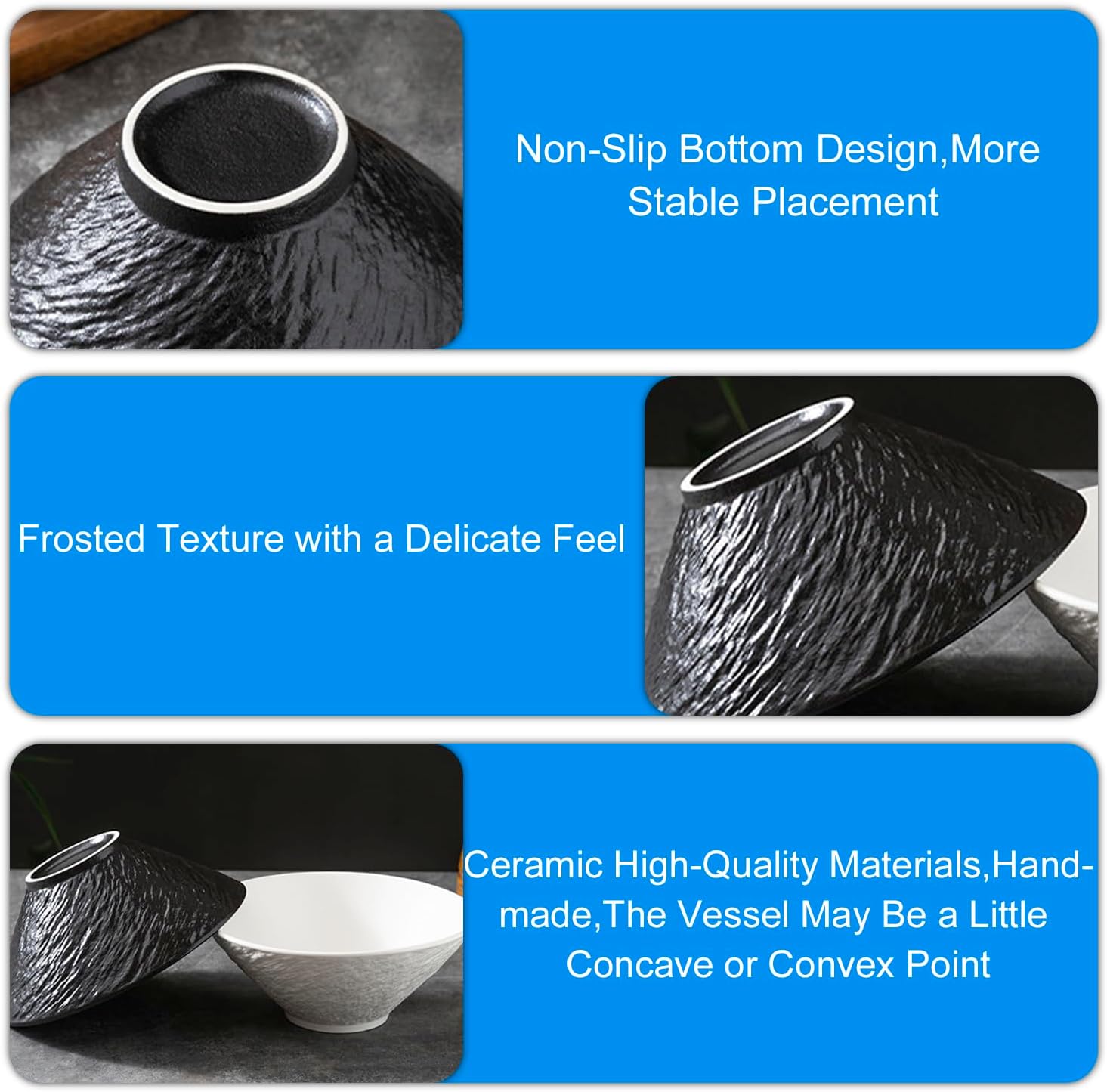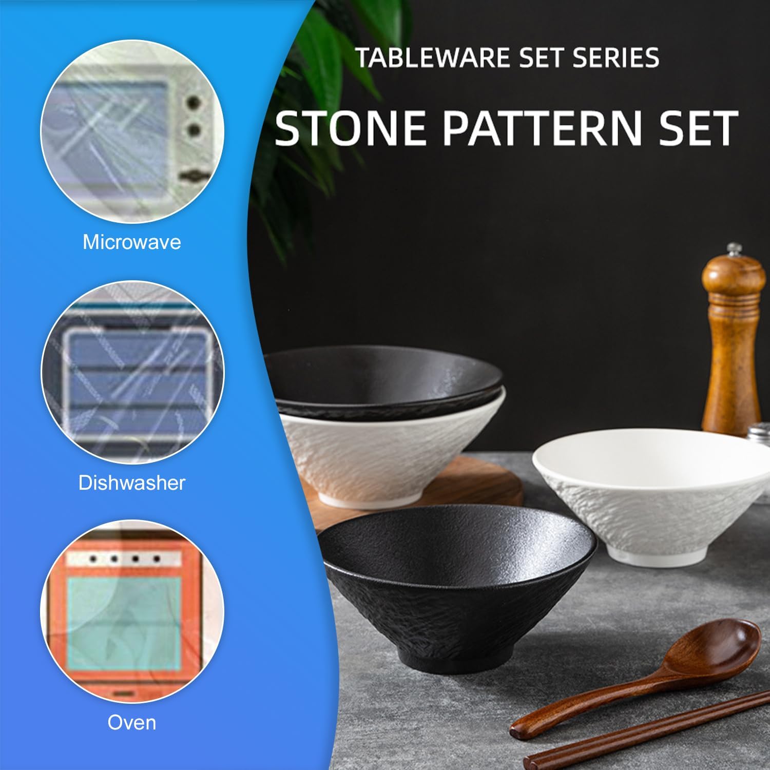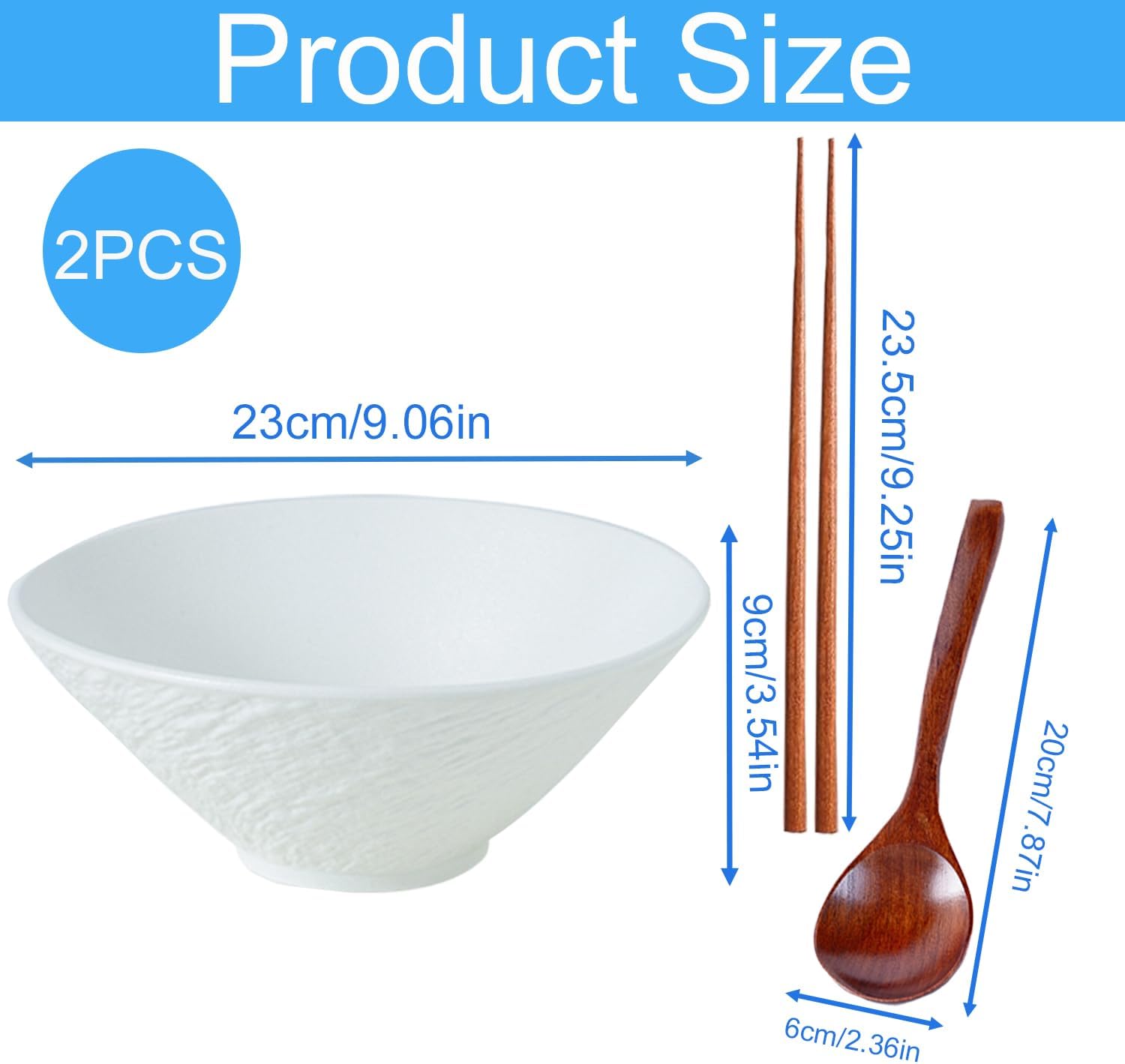 Sightday Ramen Bowl Set of 2 – 1600ml Ceramic Noodle Bowls with Spoons & Chopsticks, White XL