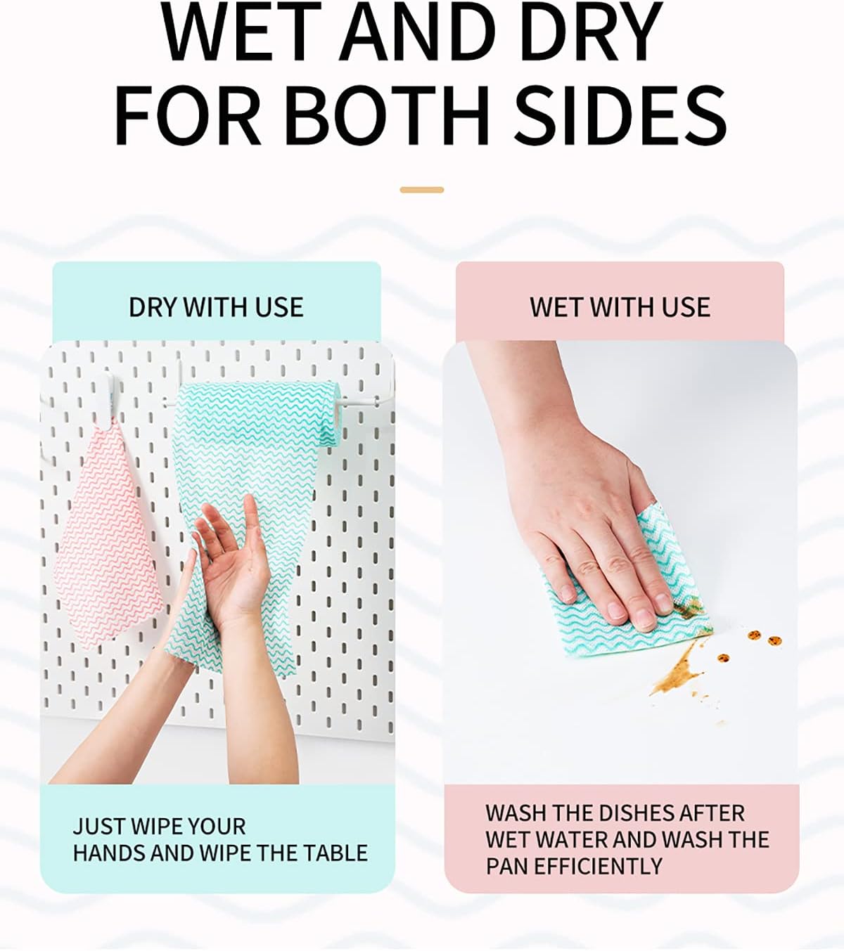 SUZZYVINE Reusable Cleaning Cloths – 60 Pack Multi-Purpose Handi Wipes, Quick-Dry, Lint-Free, Machine Washable Dish Towels (3 Colours)