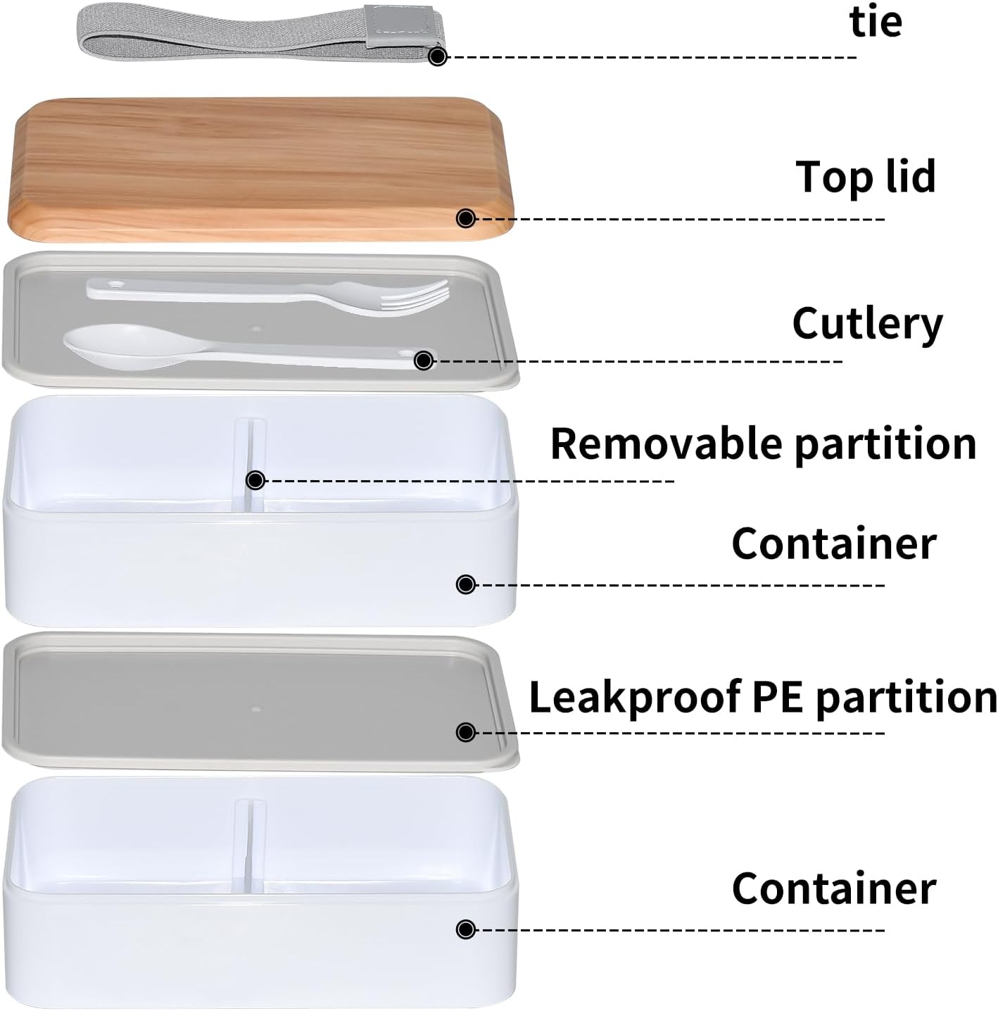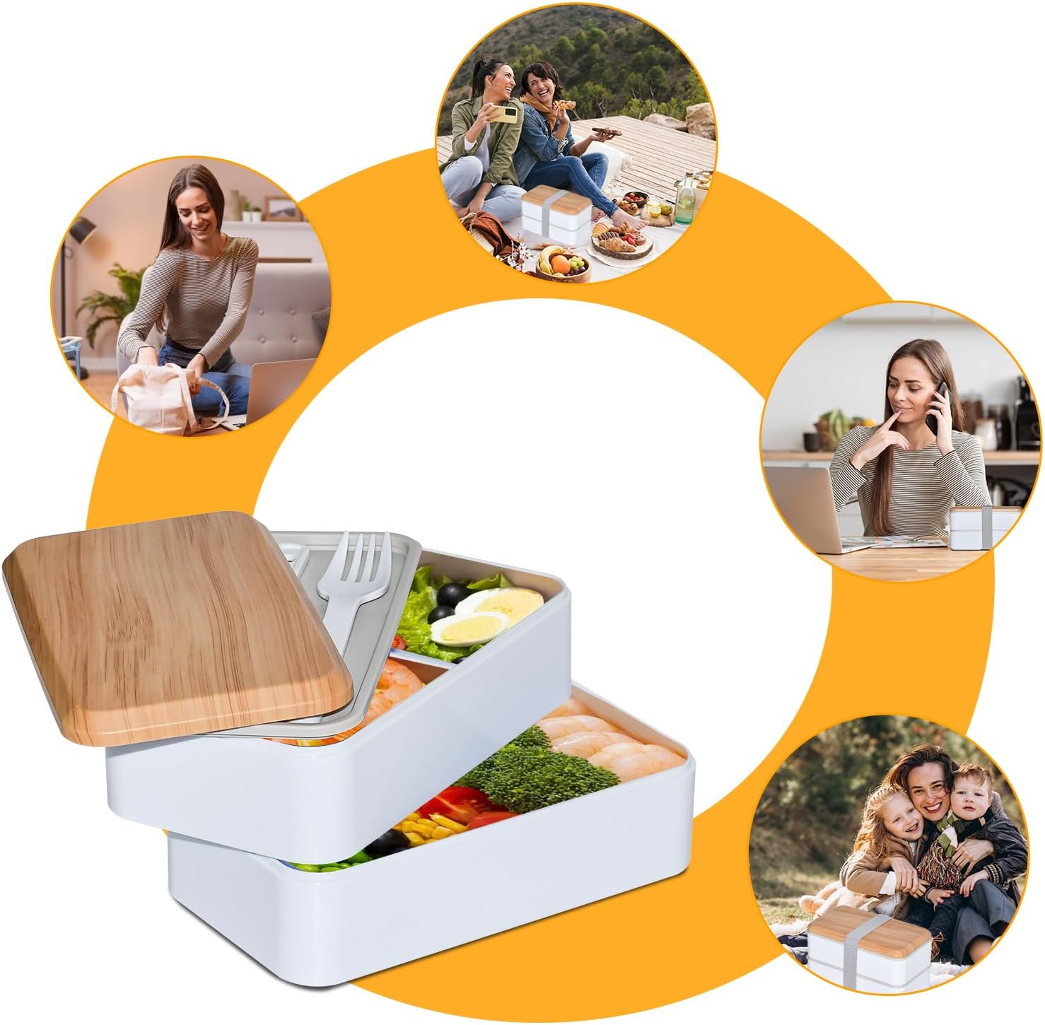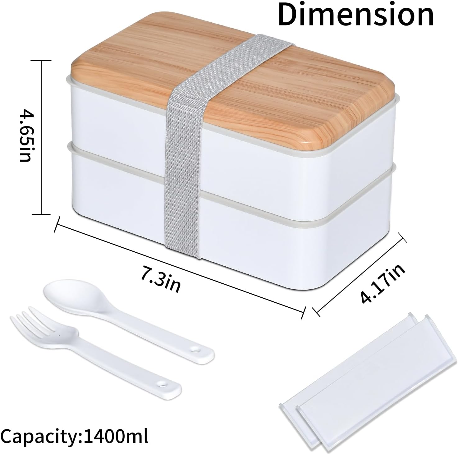 TOPESCT Bento Box for Adults – 1400ML Two-Tier Lunchbox with Cutlery