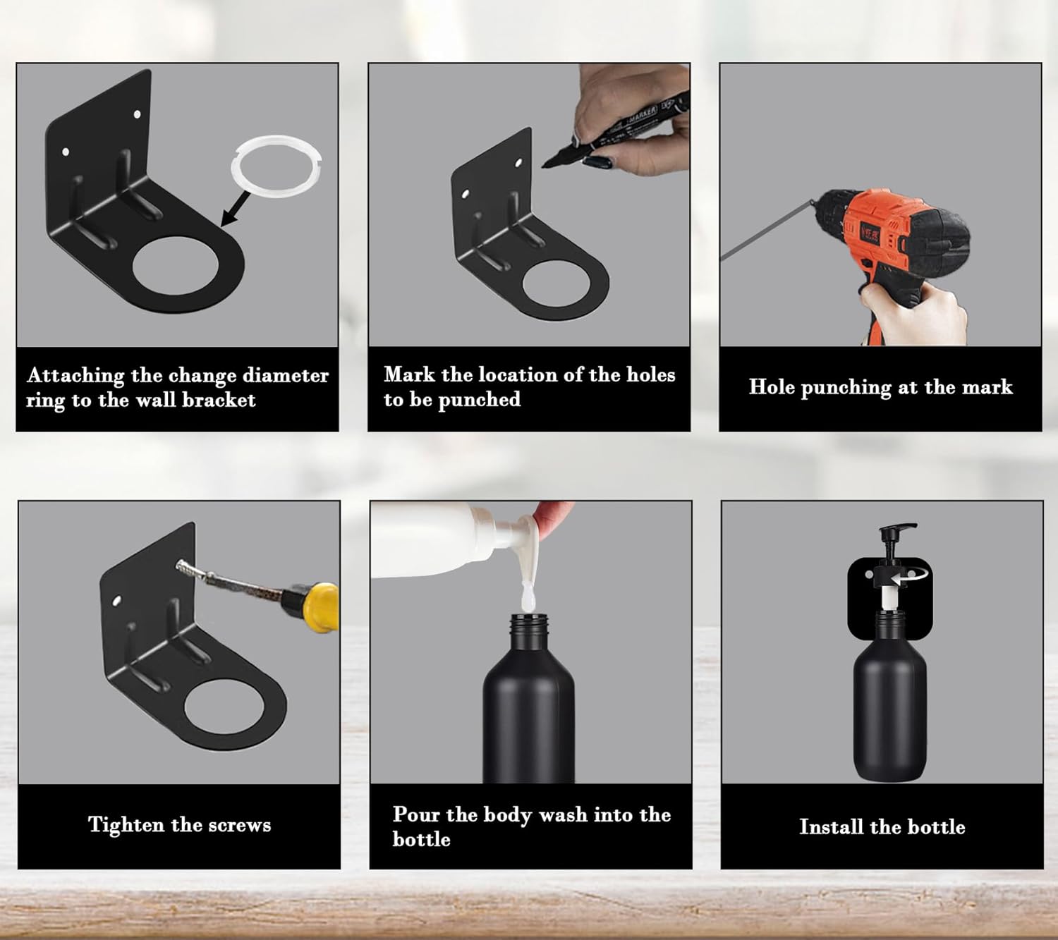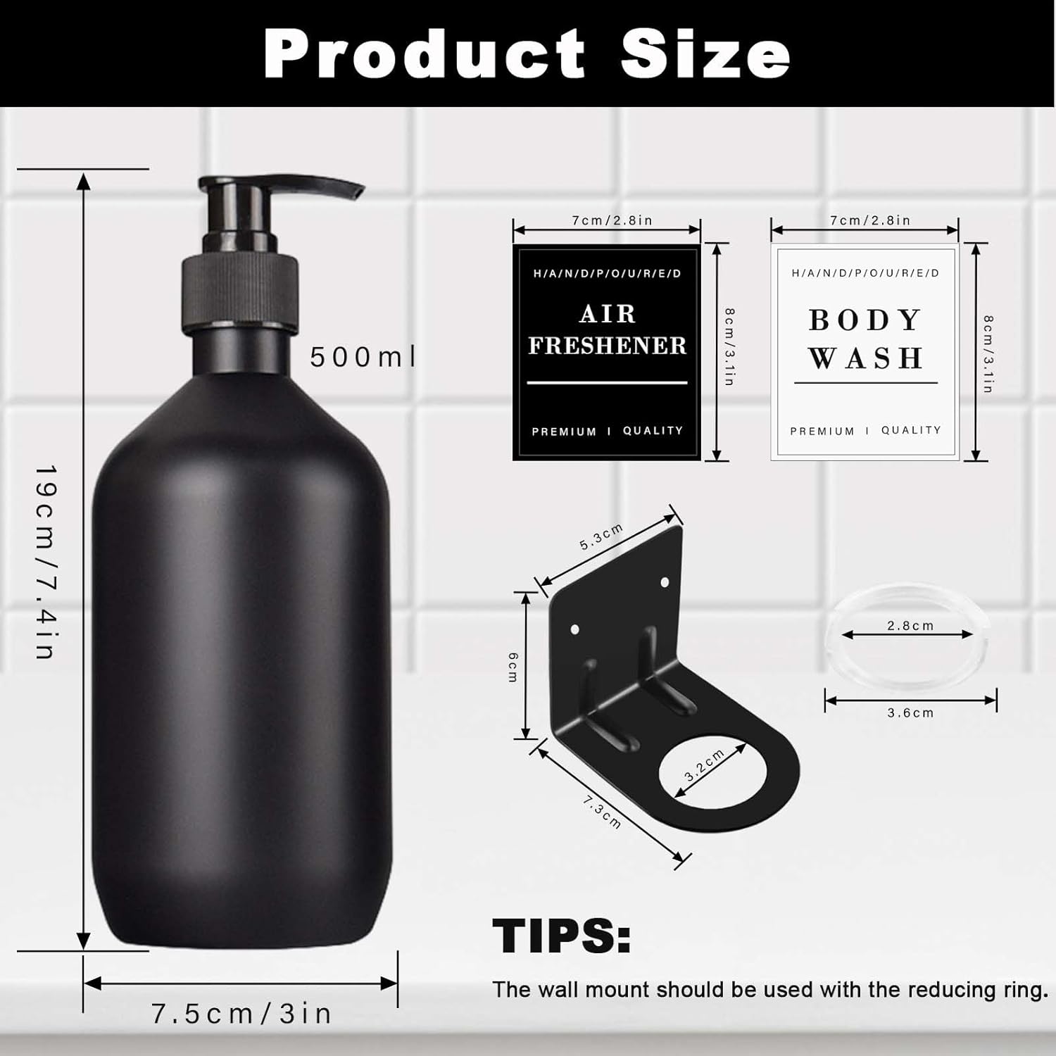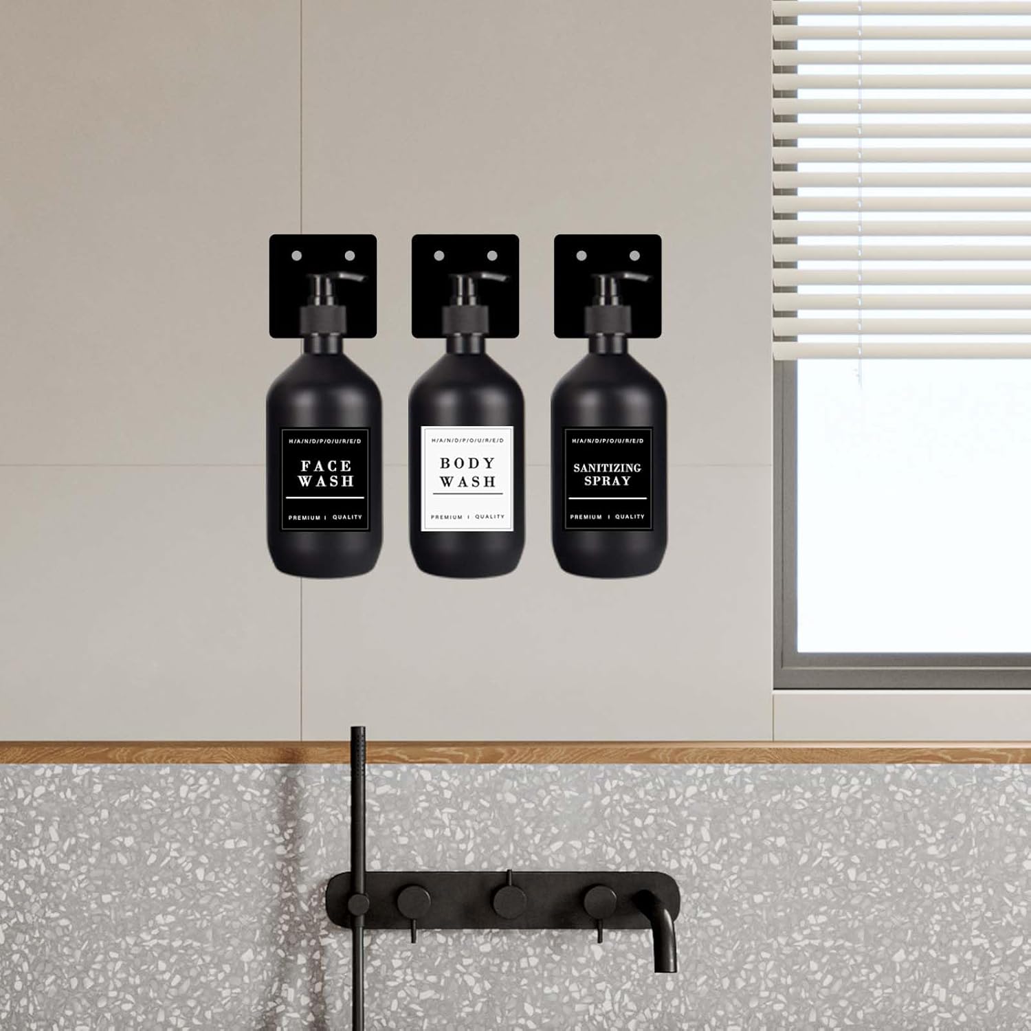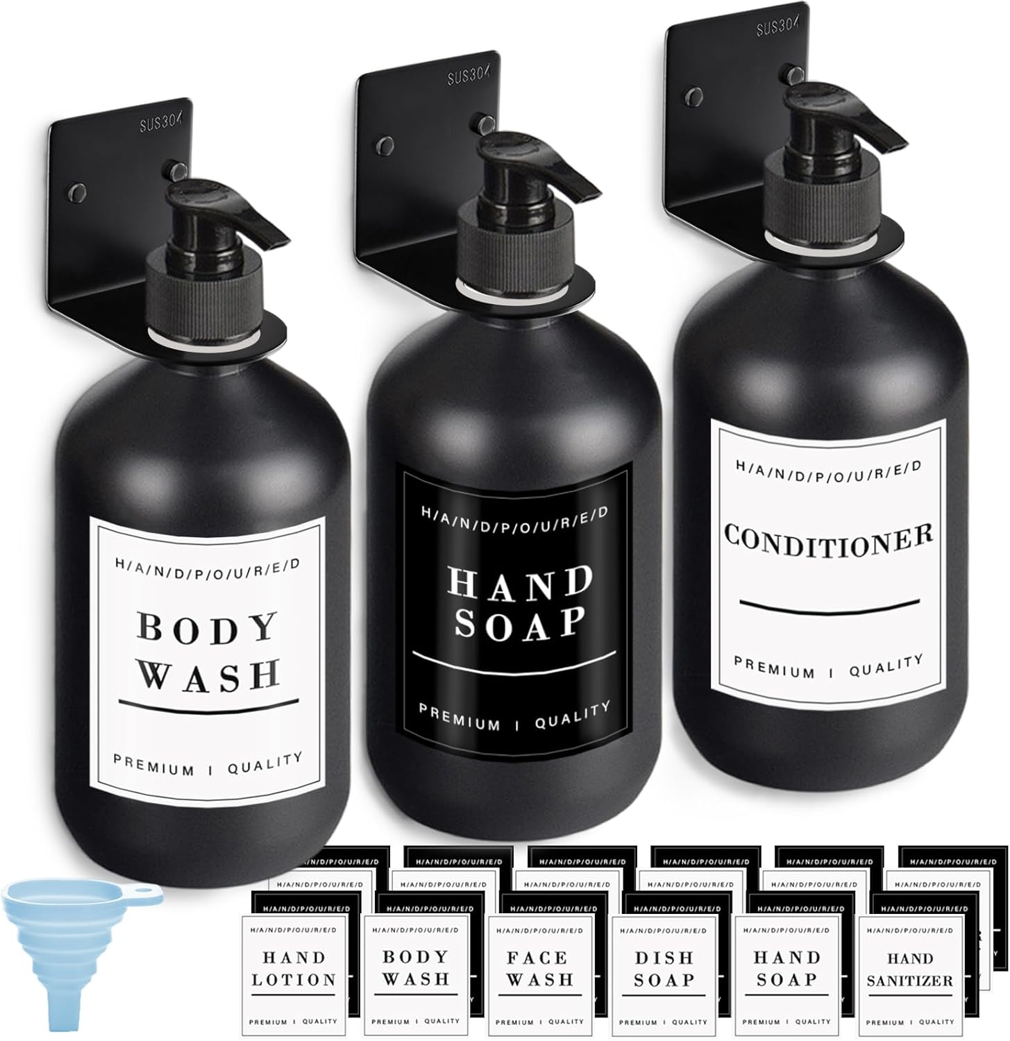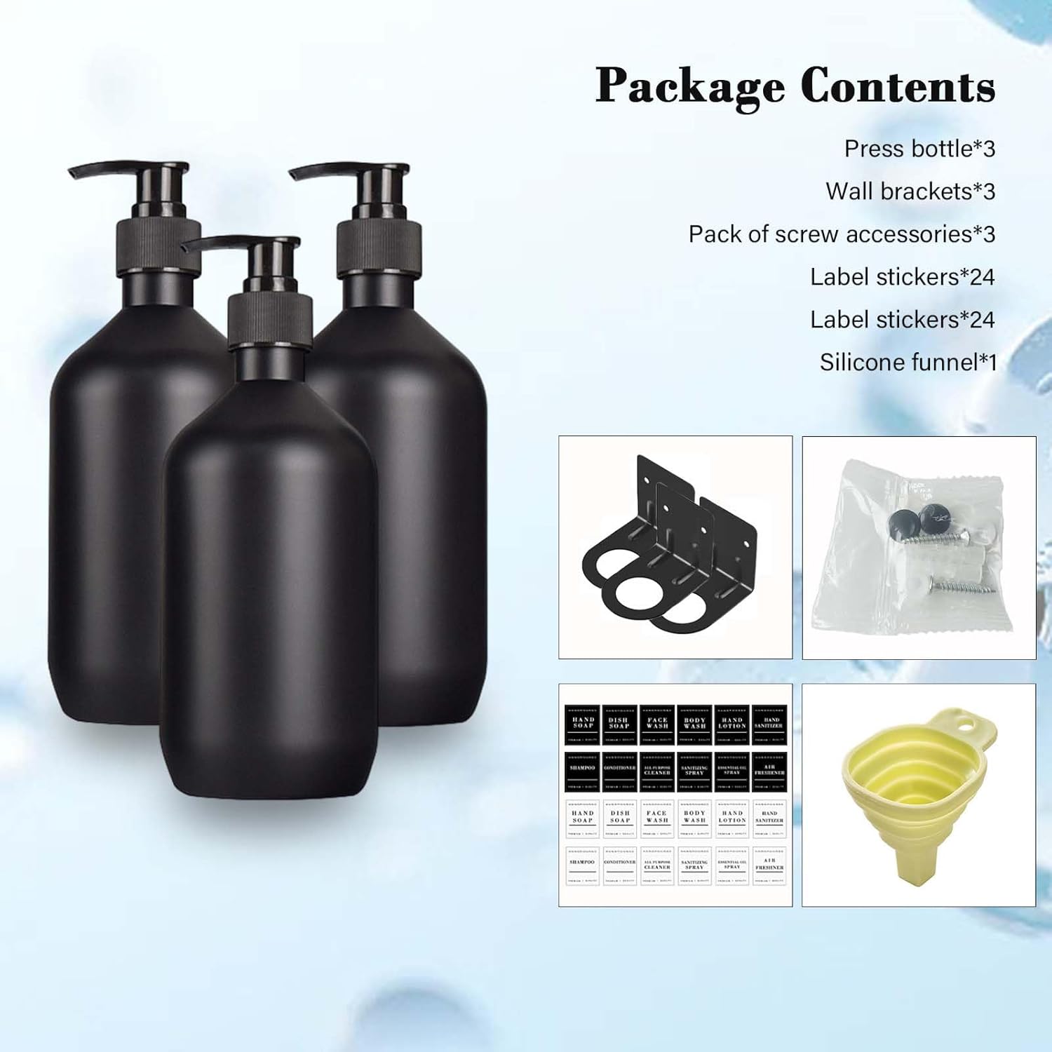 TUAKIMCE 3PC Wall Mount Soap Dispenser Set – 500ml Bottles with Labels & Racks