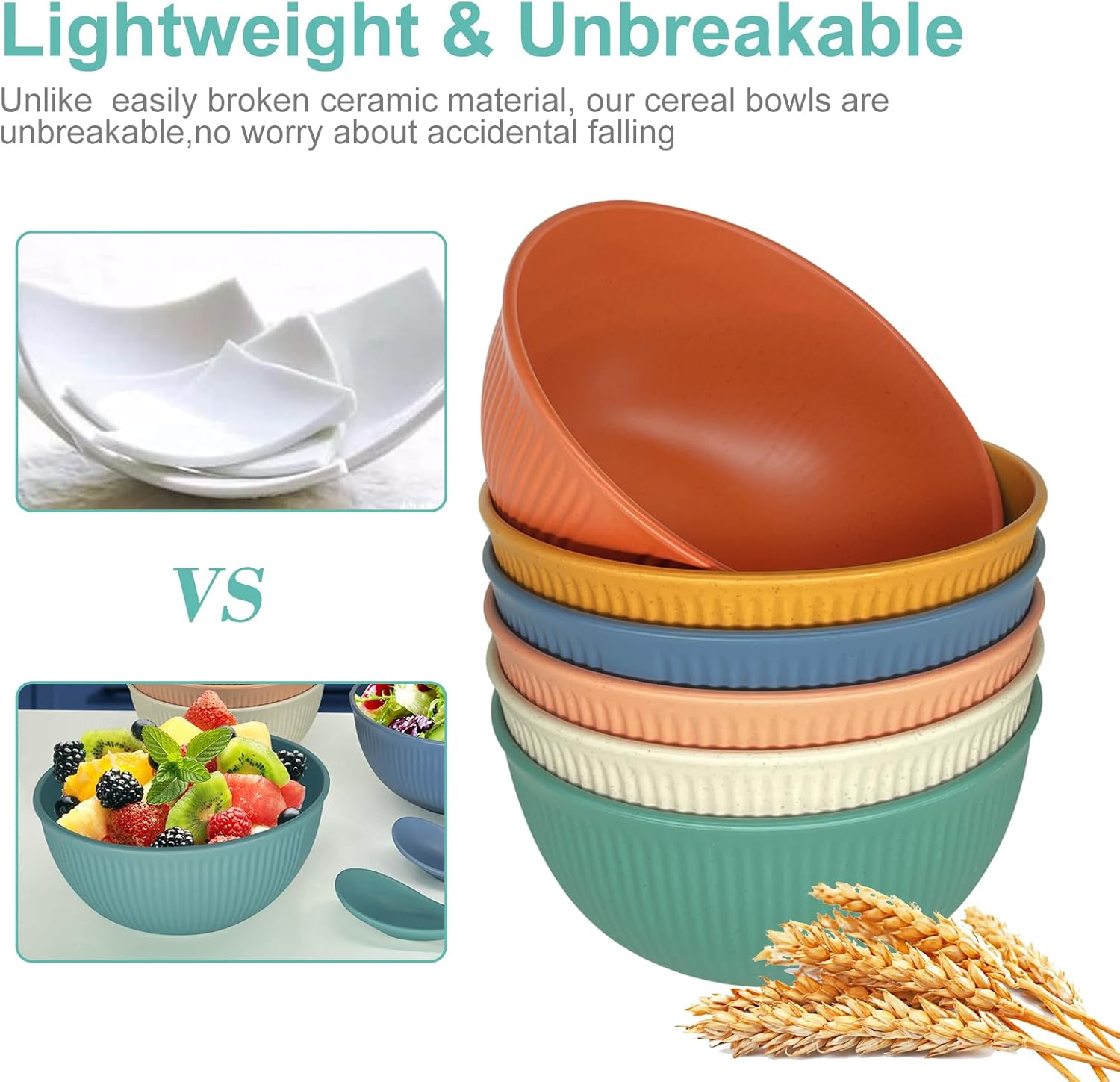 Ulrikco 7-Piece Unbreakable Plastic Bowls Set – Colorful 655ml Lightweight