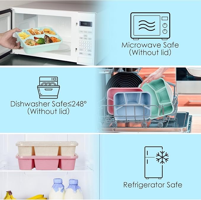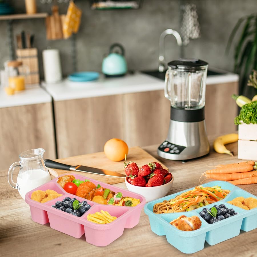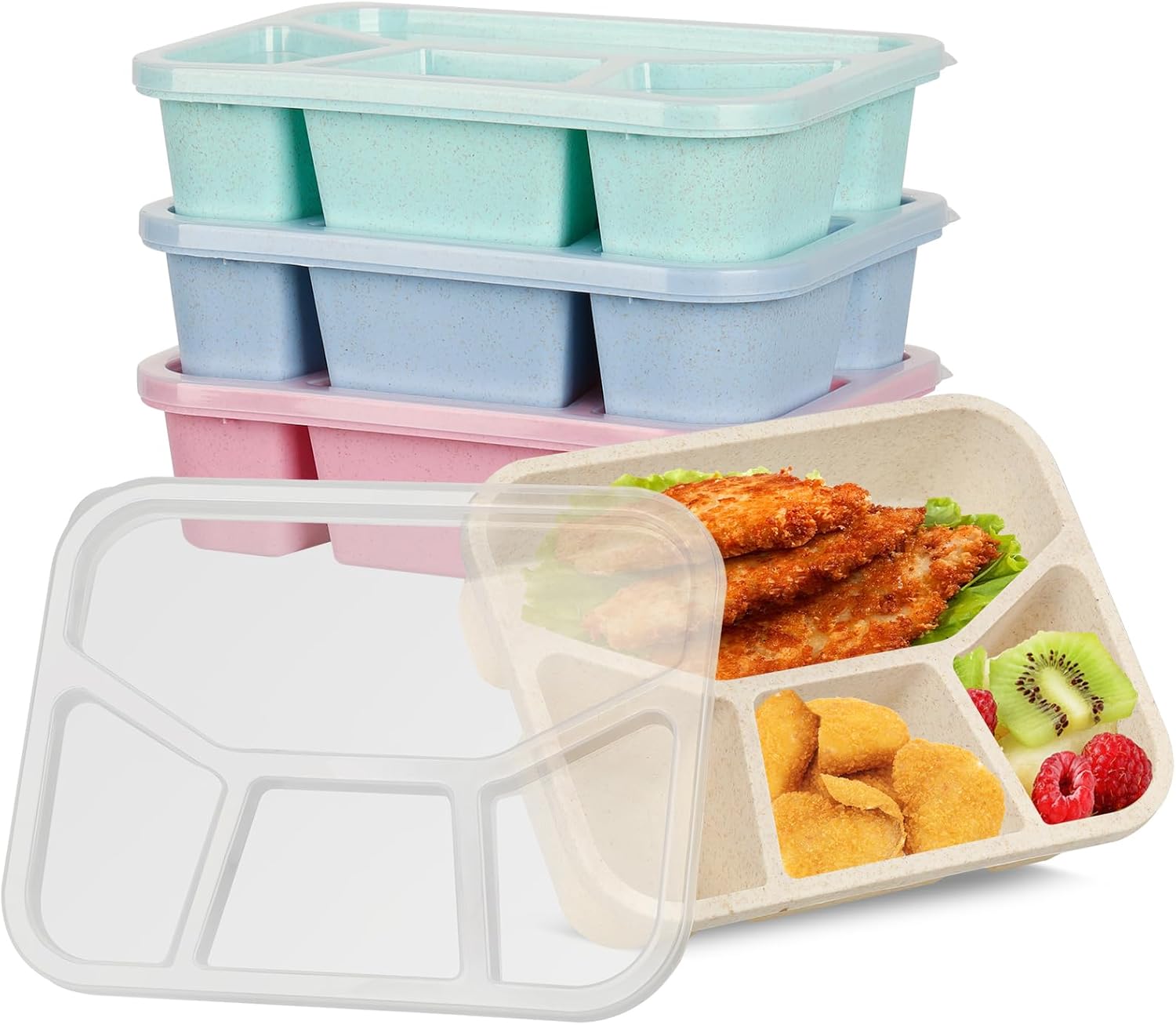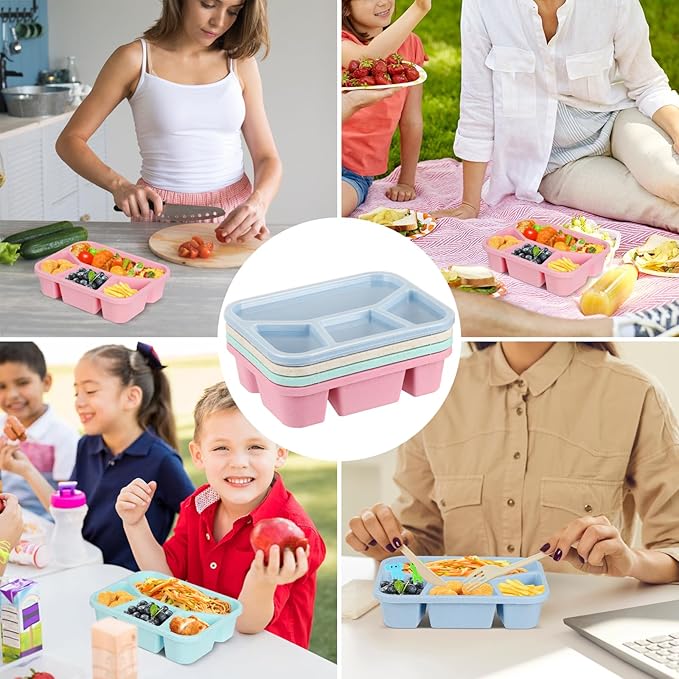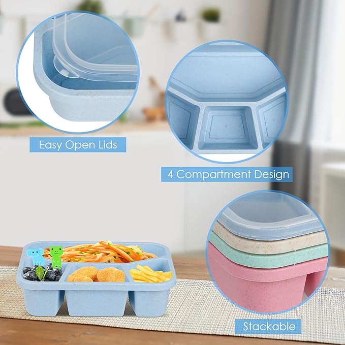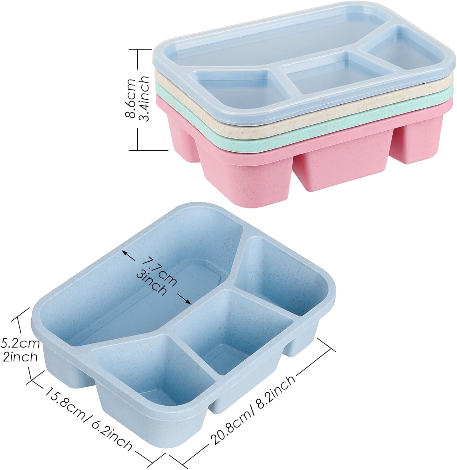 Voency 4 Pack Bento Lunch Box – 4-Compartment Reusable Snack Container with Transparent Lids, Stackable & Dishwasher Safe, 1200ml