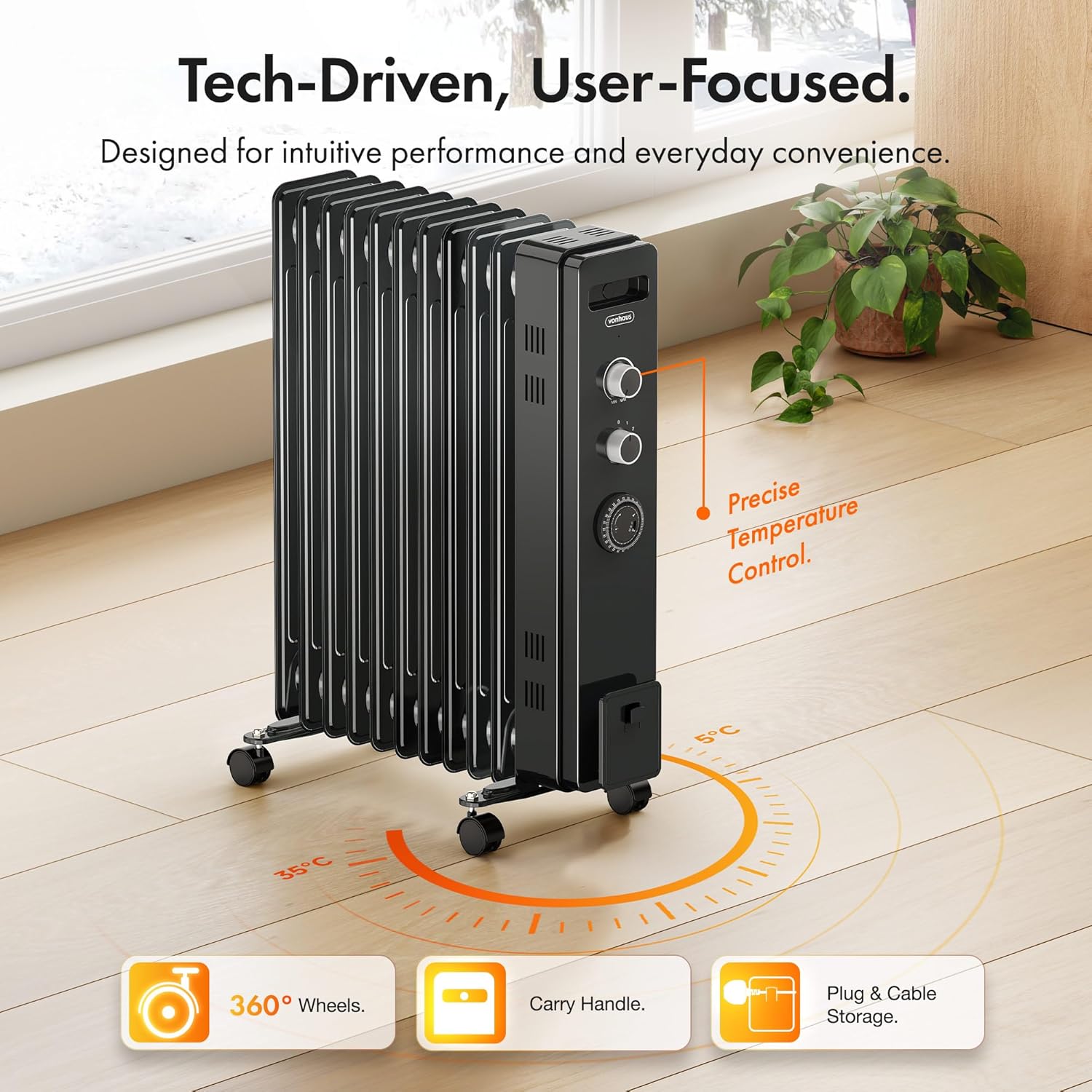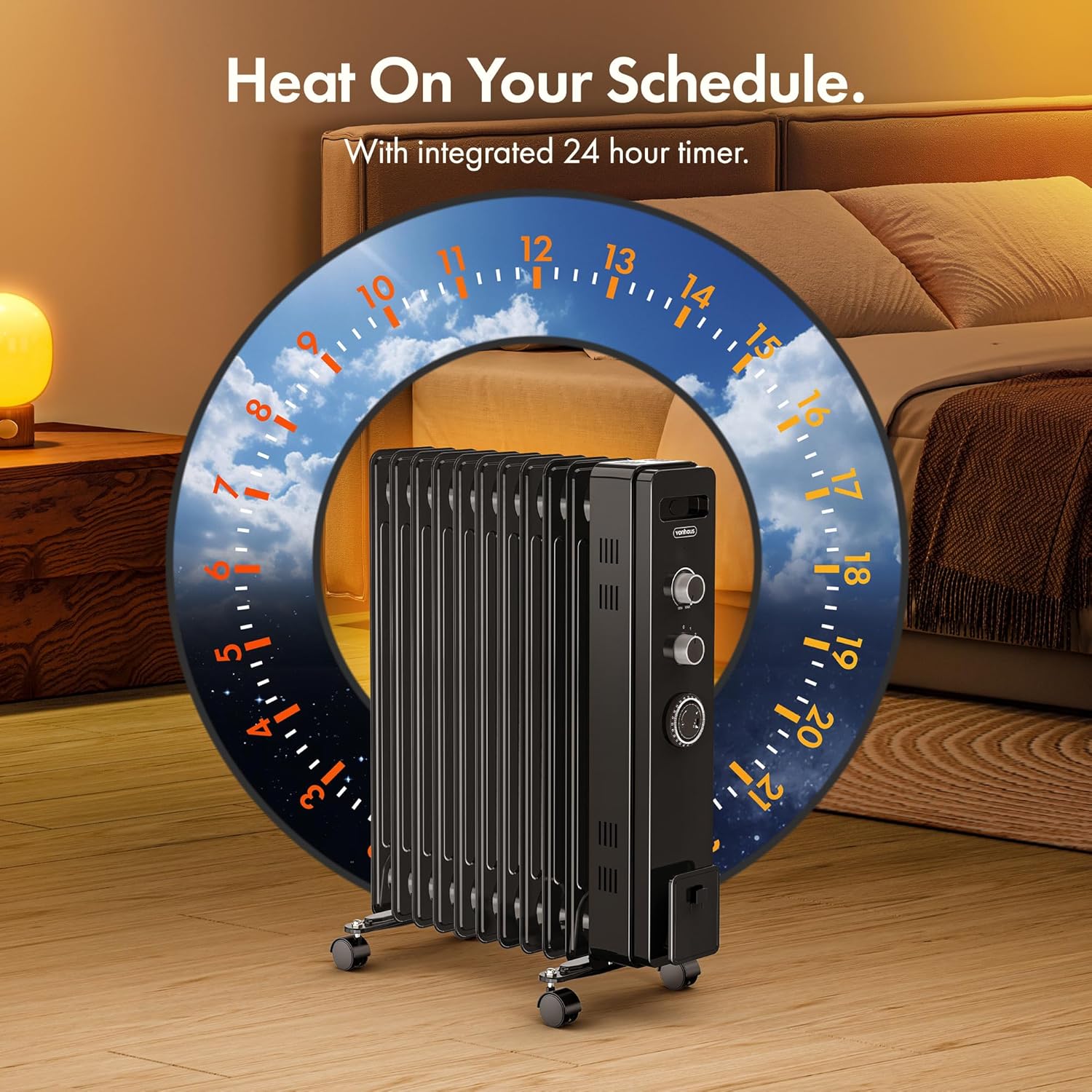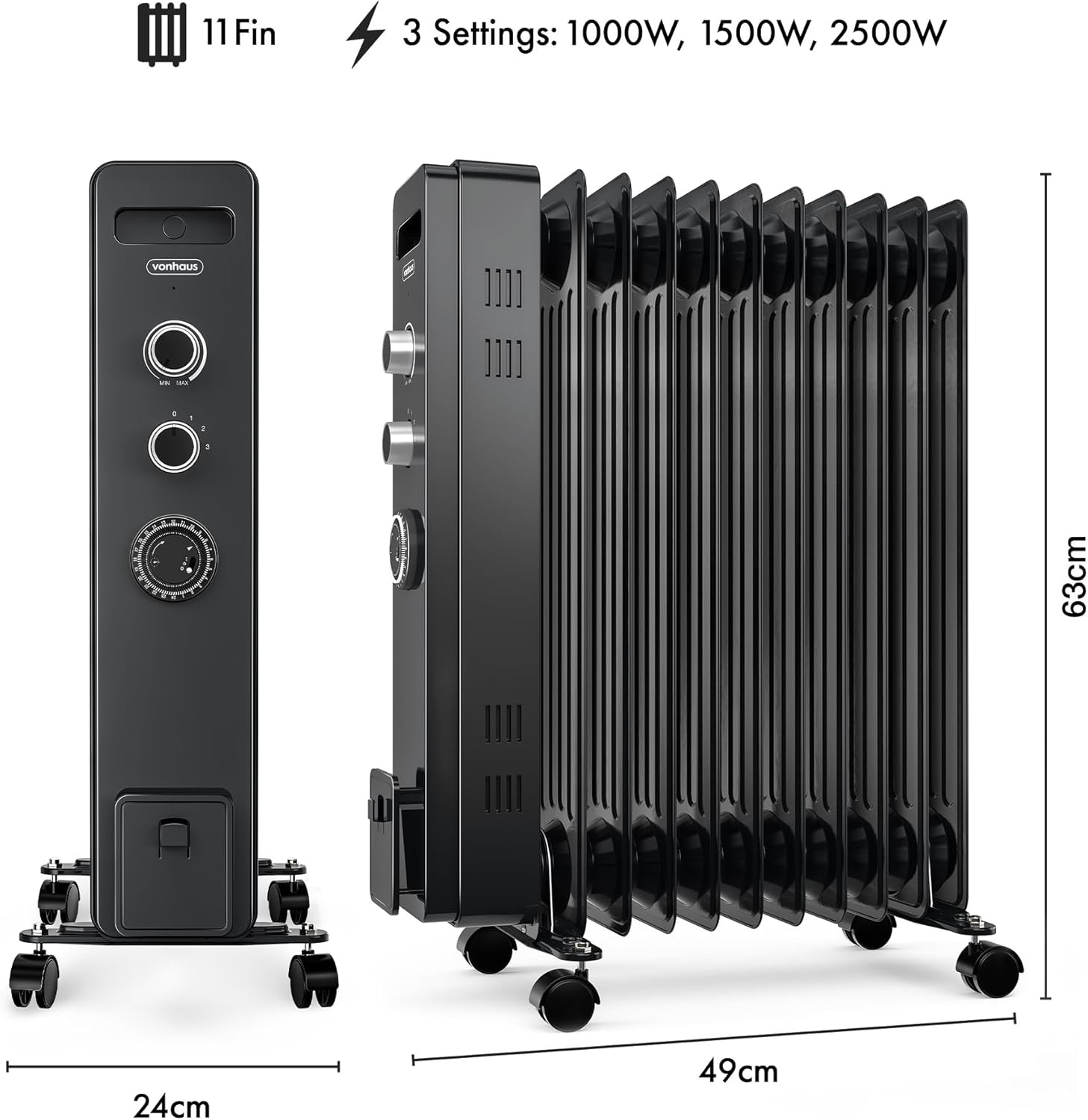 VonHaus 11 Fin Oil Filled Radiator with Timer – 2500W Electric Heater, Black