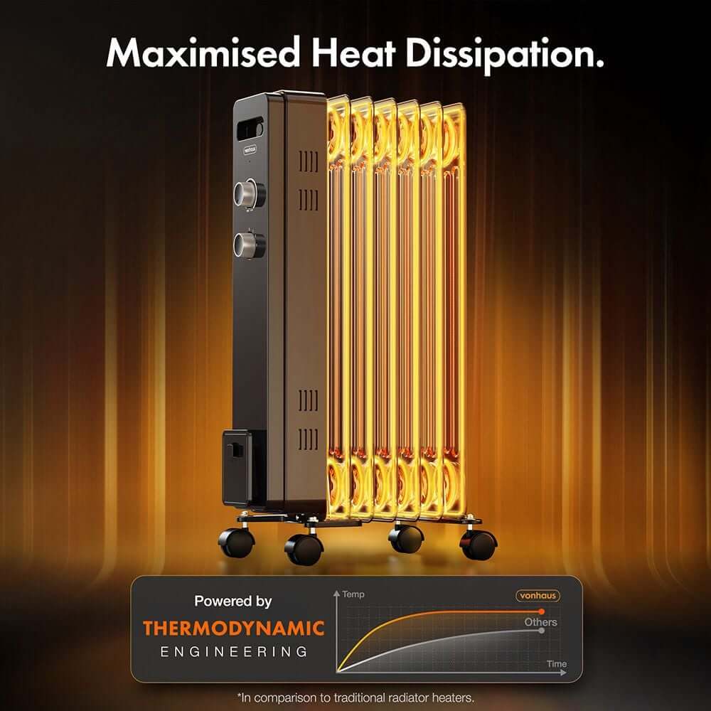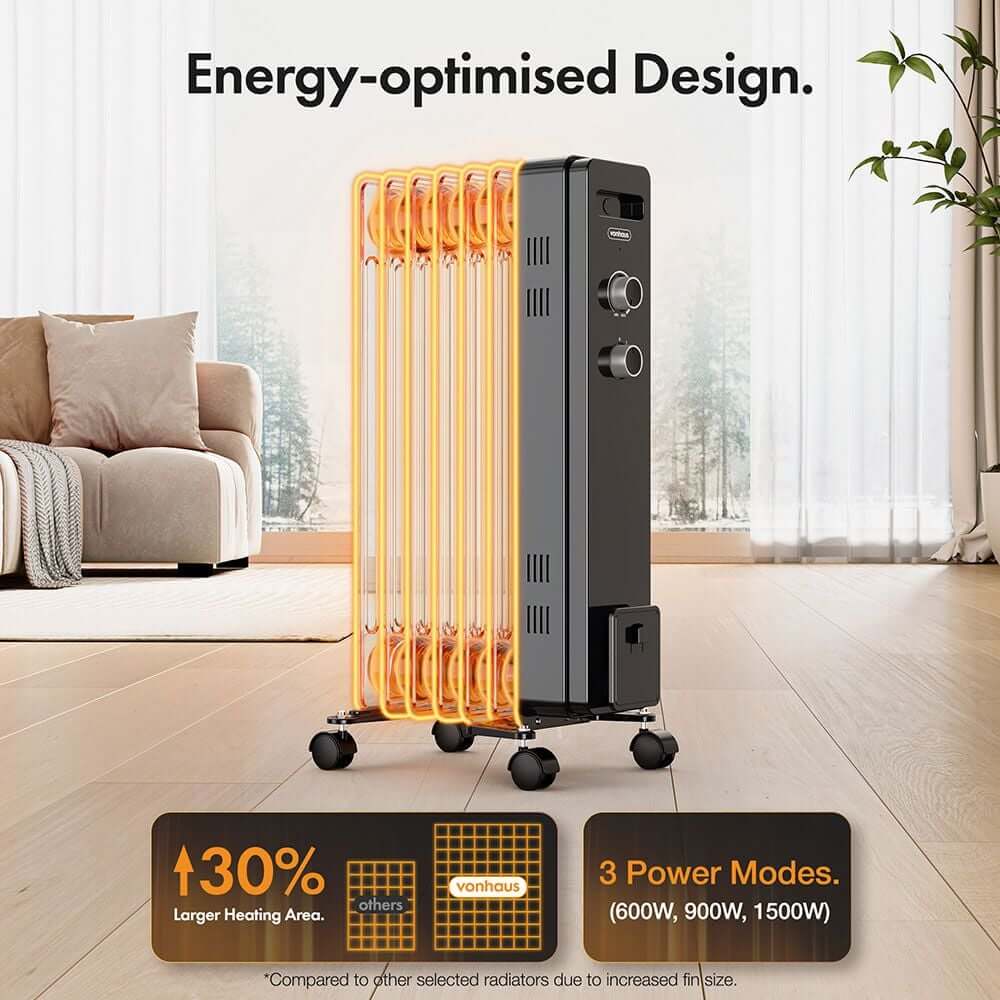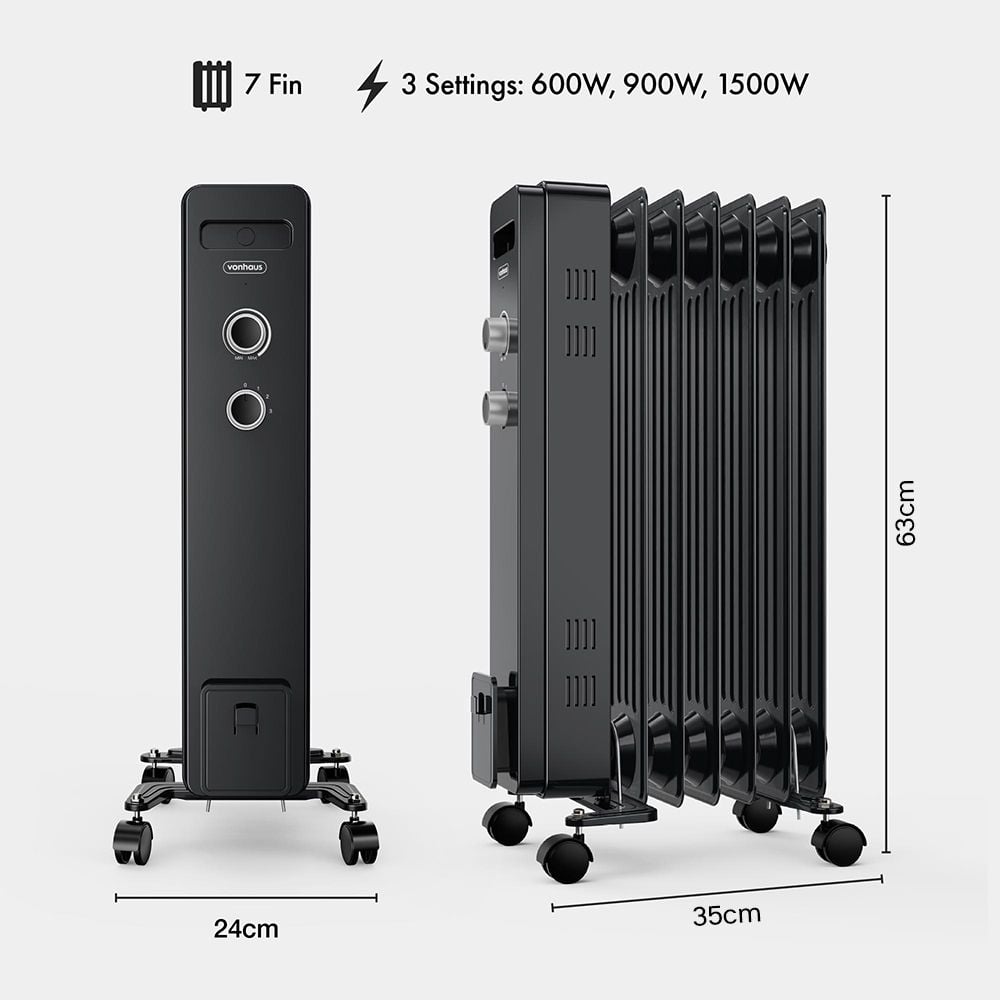 VonHaus 7 Fin Oil Filled Radiator 1500W – Black Portable Electric Heater
