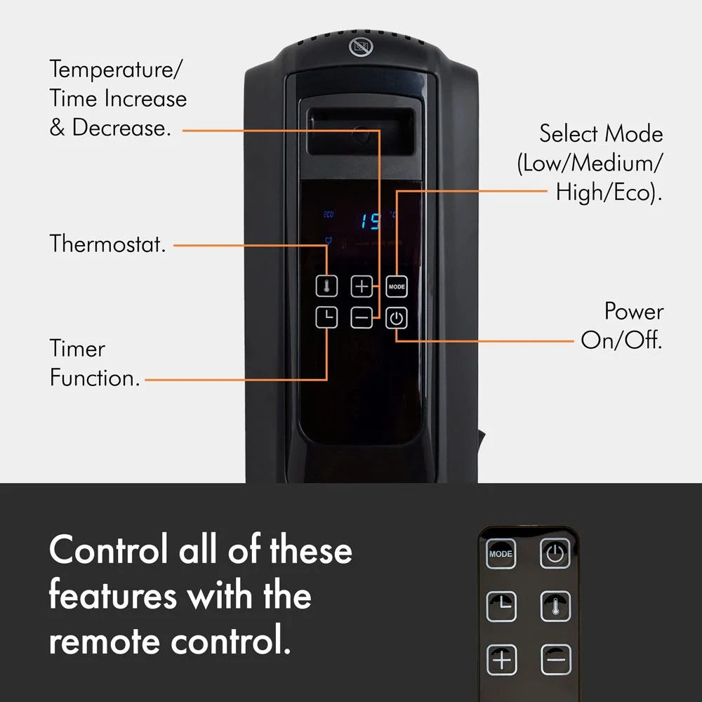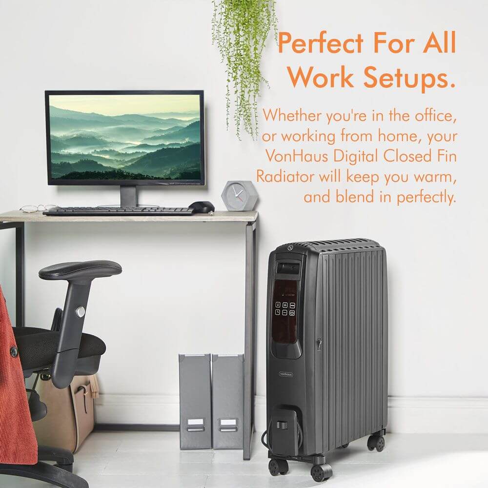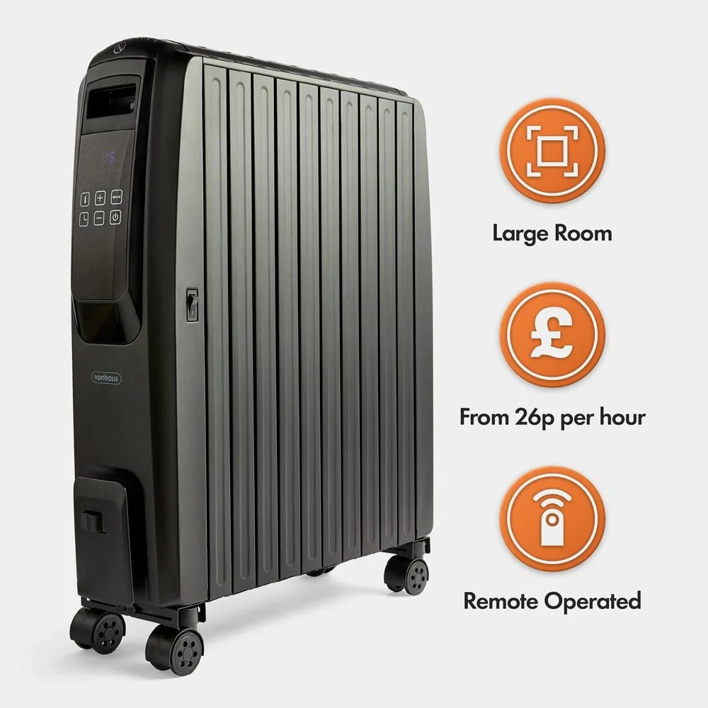 VonHaus Black Oil Filled Radiator with Digital Display – 2500W Electric Heater