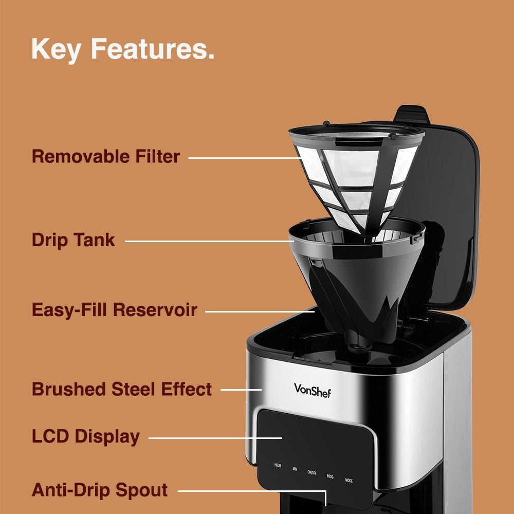 VonShef 1.5L Filter Coffee Machine – 12 Cup Drip Coffee Maker