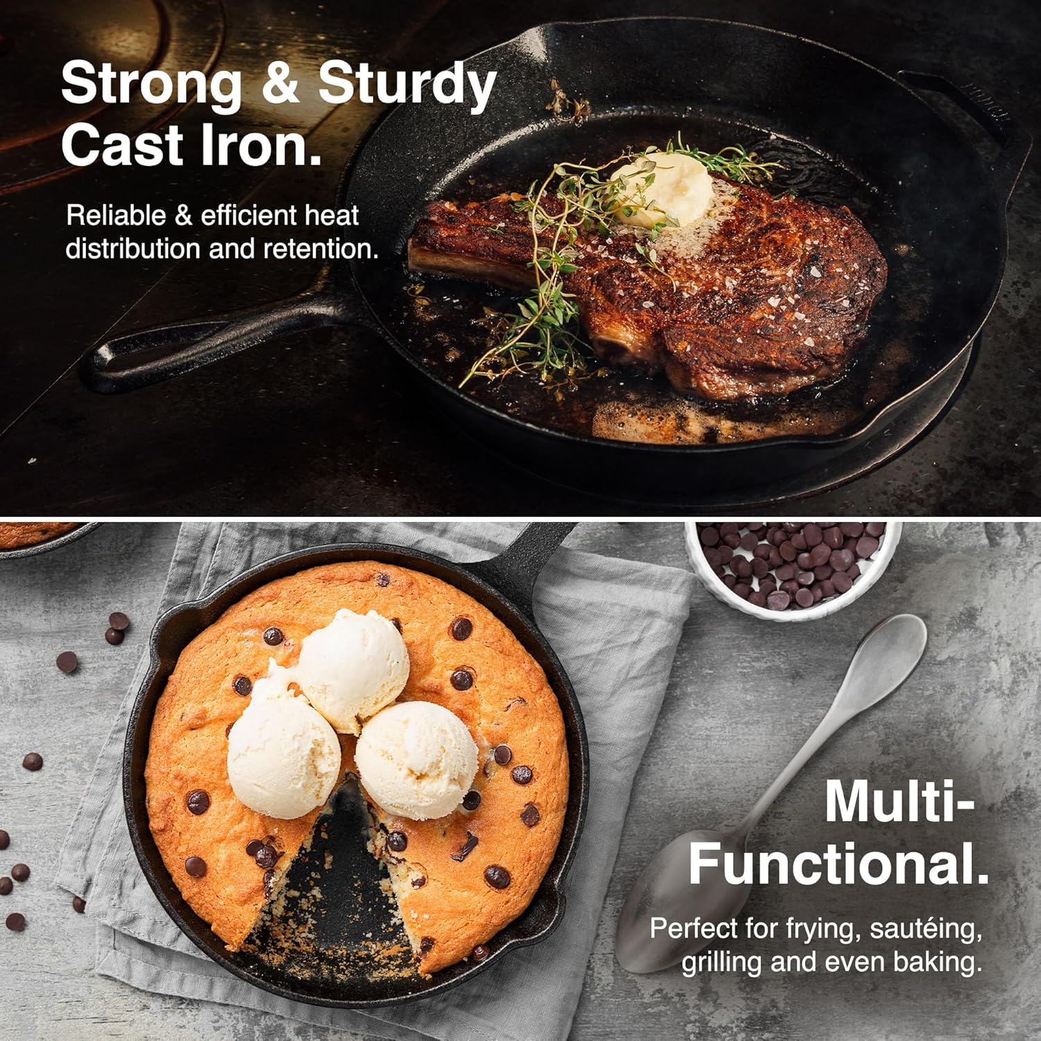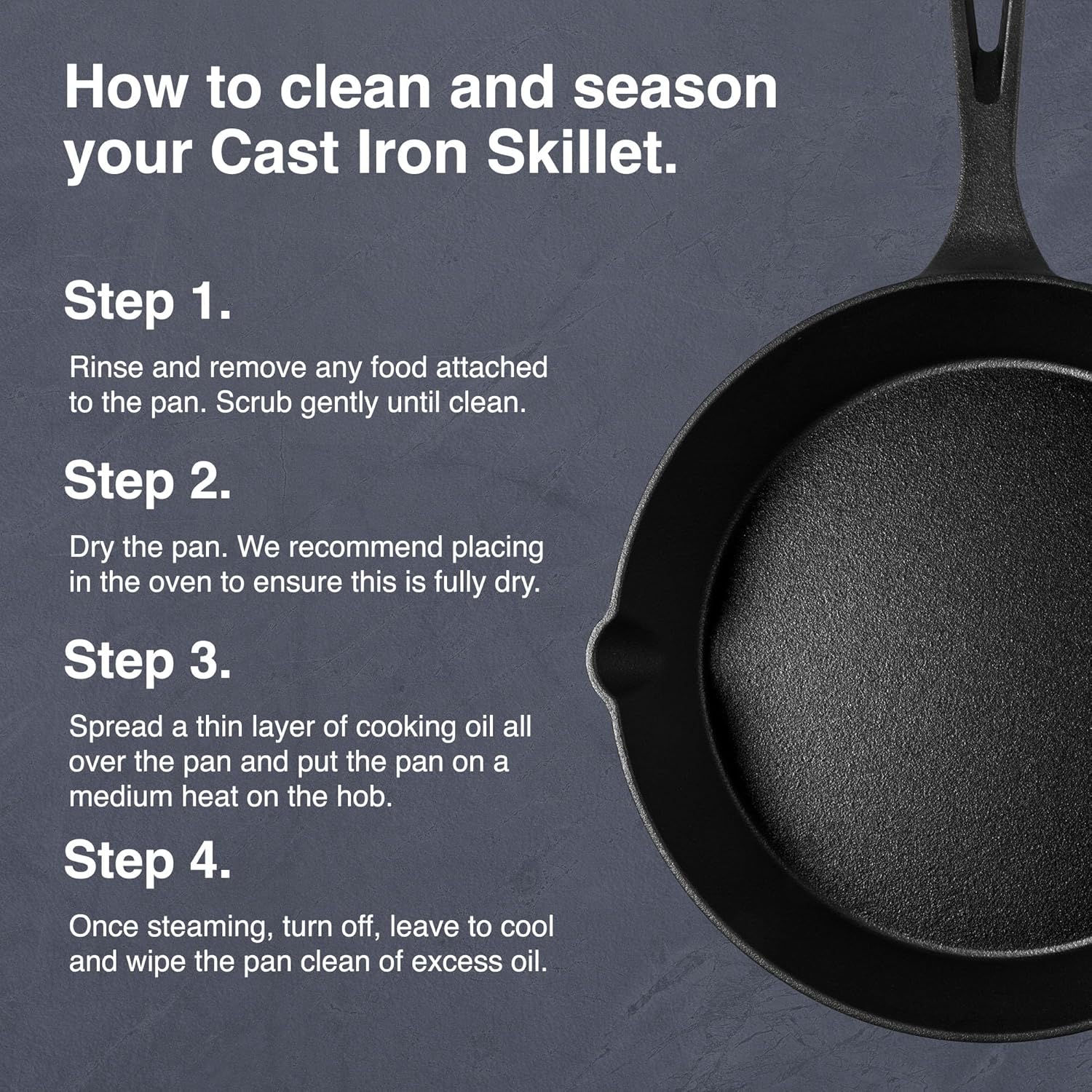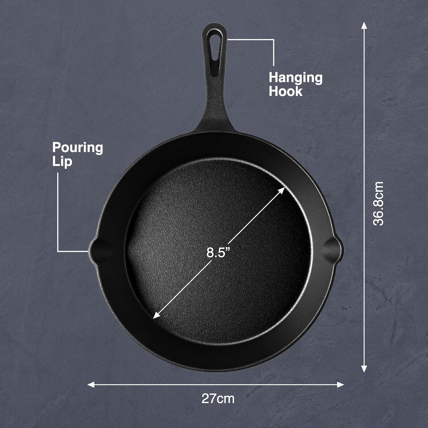 VonShef 10" Cast Iron Skillet – Pre-Seasoned Non-Stick Frying Pan