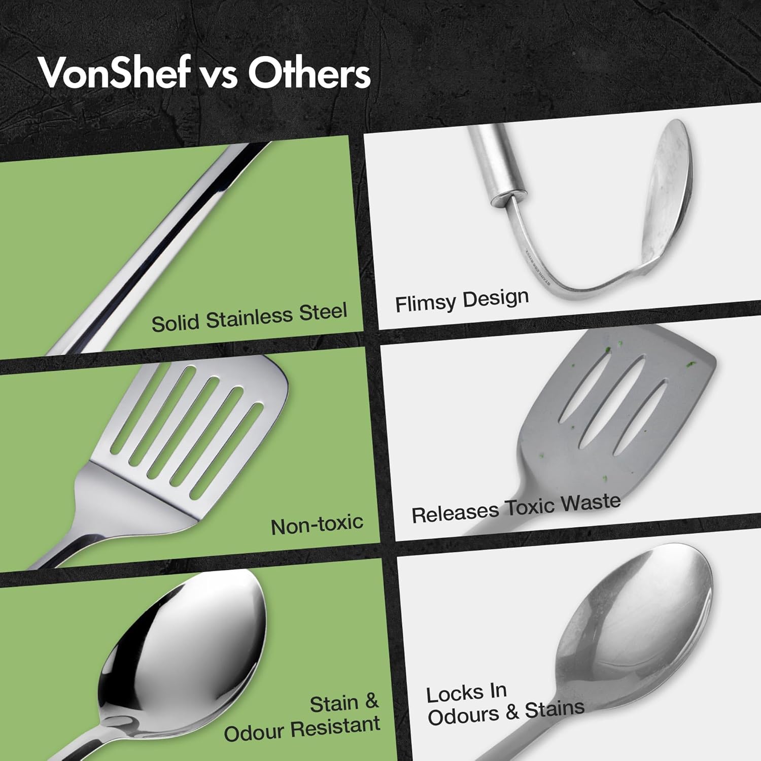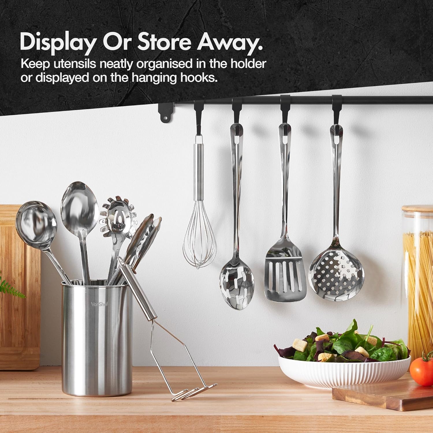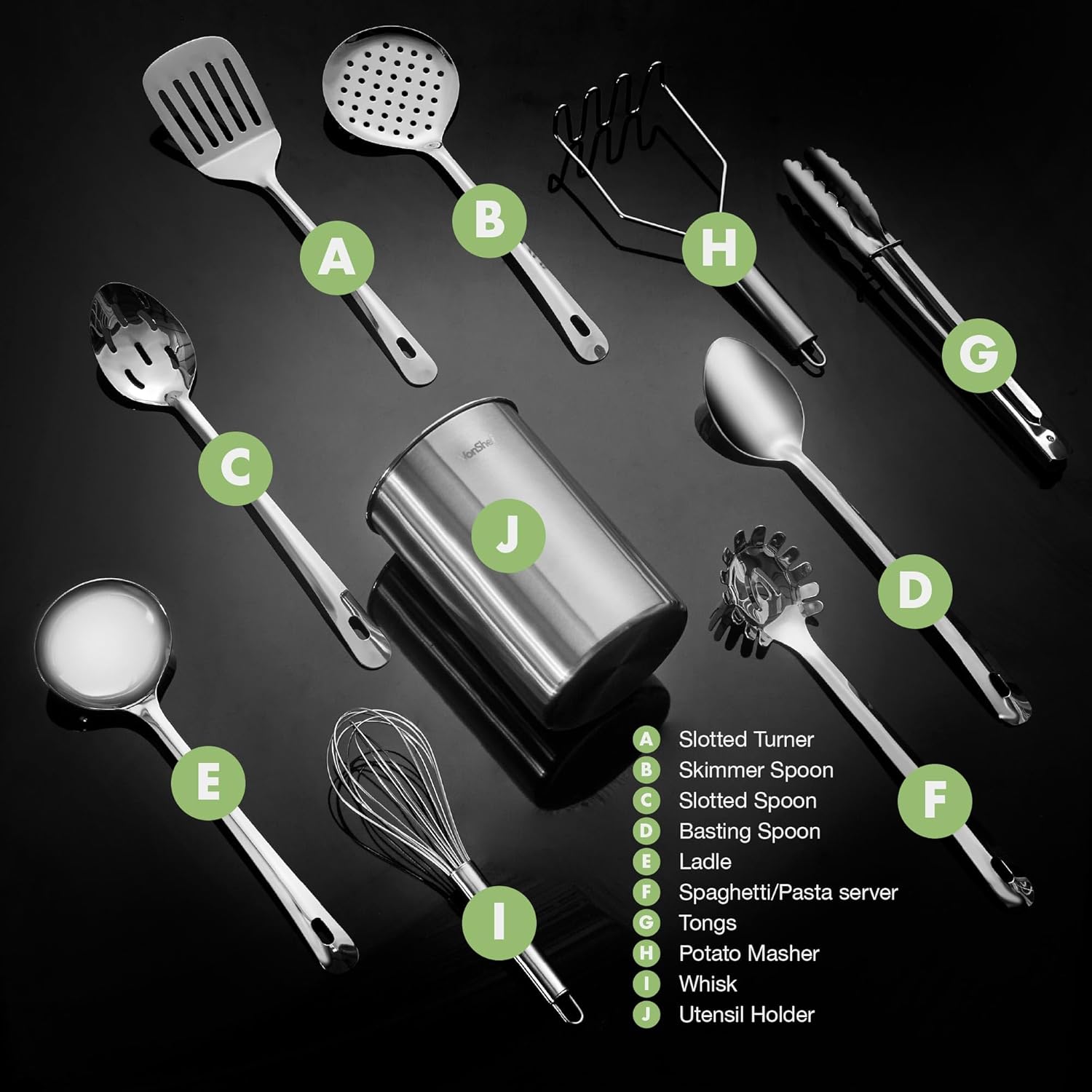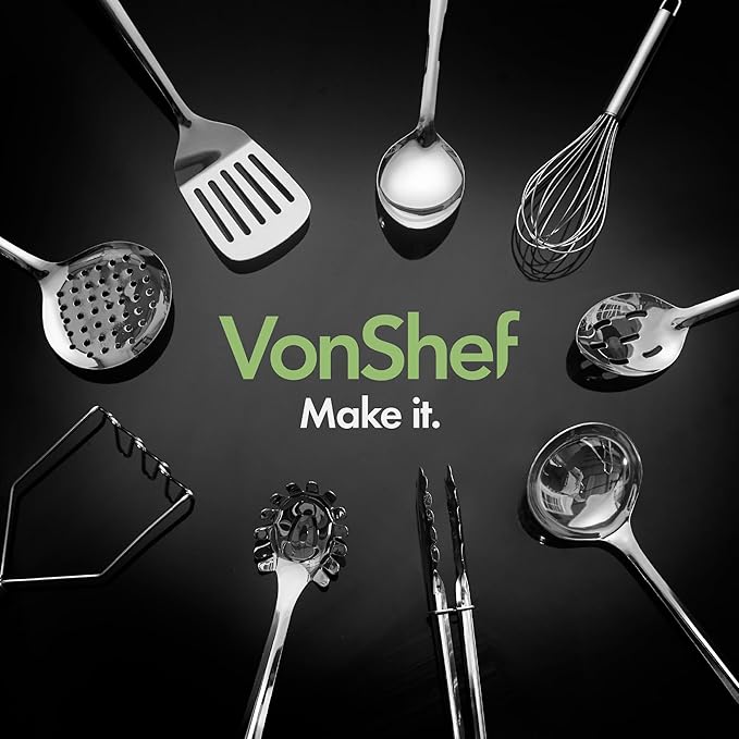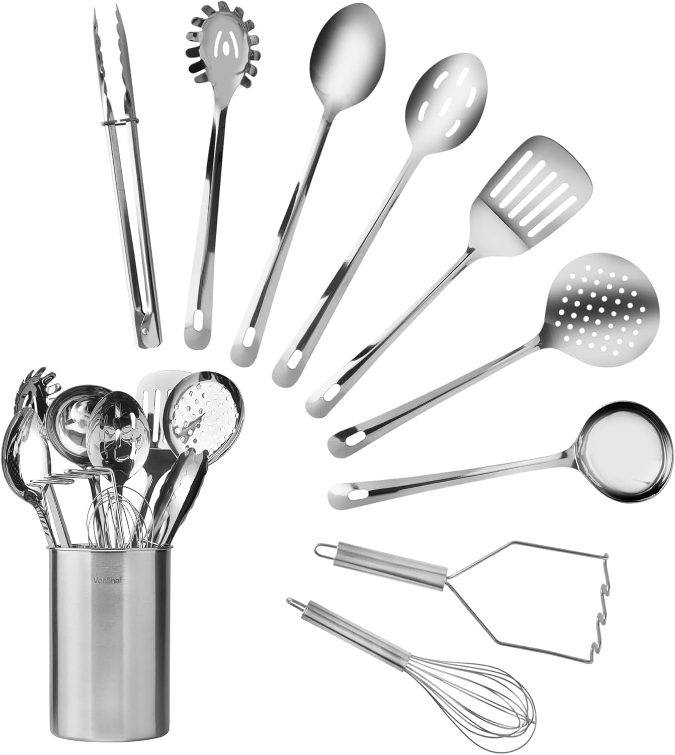VonShef 10-Piece Kitchen Utensil Set – Stainless Steel with Storage Holder