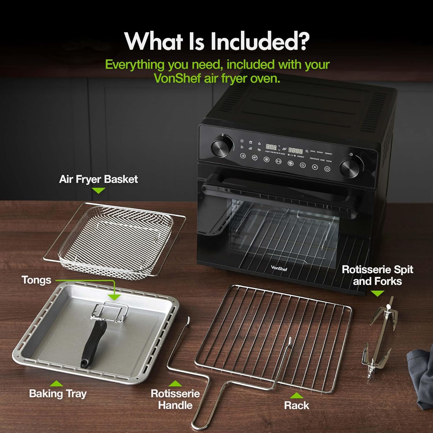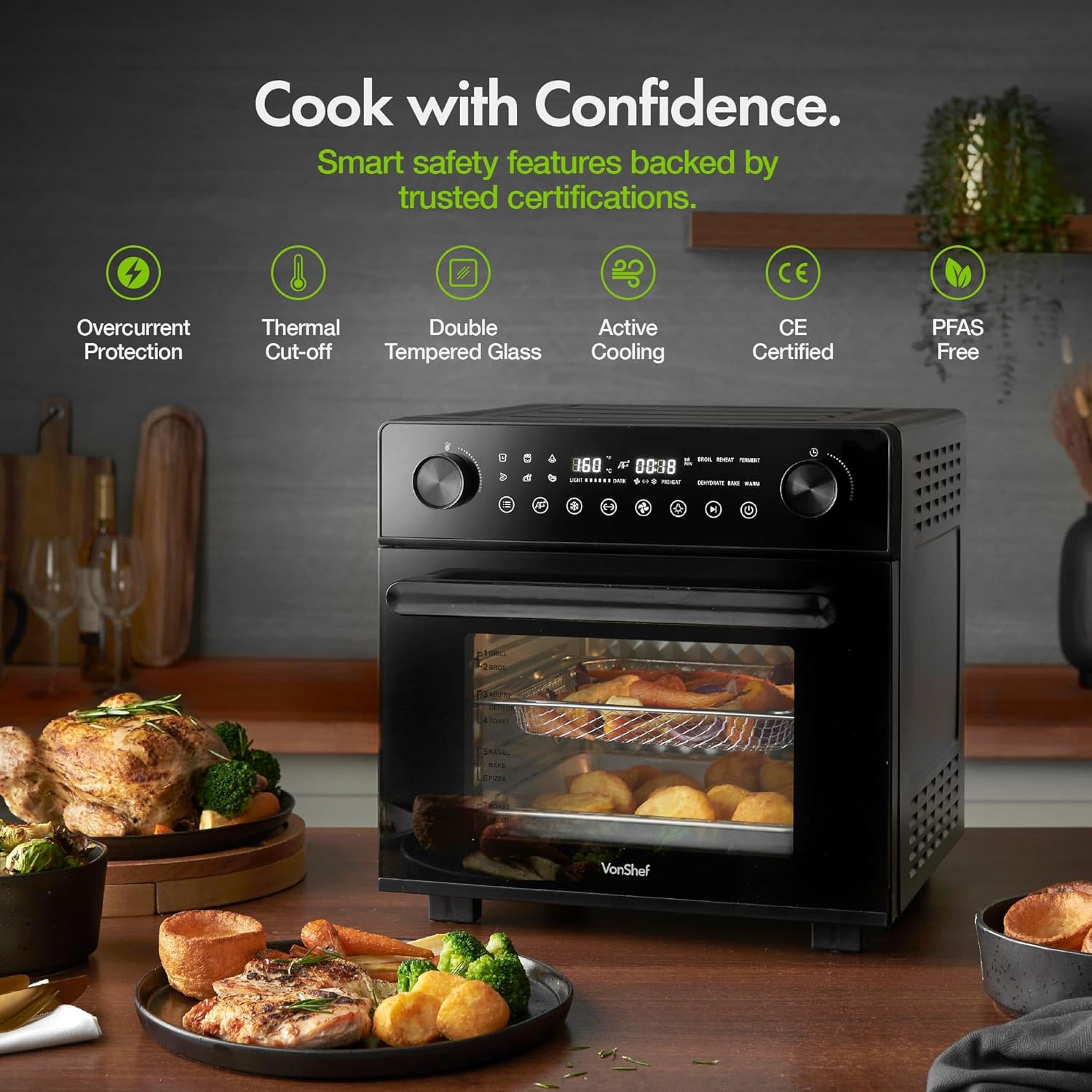 VonShef 18L Air Fryer Oven – 14-in-1 Digital Convection Oven with Rotisserie, 1500W