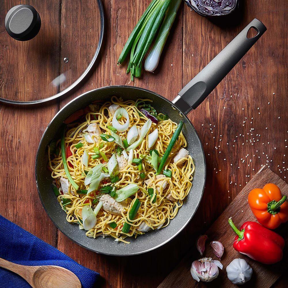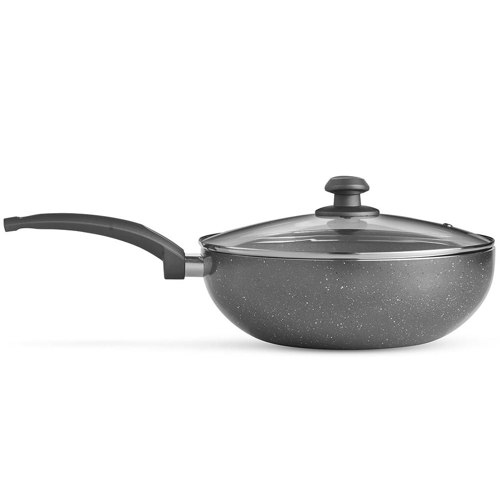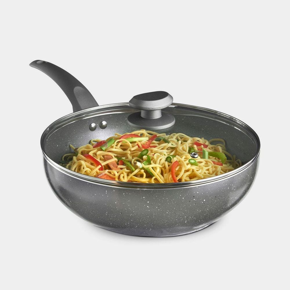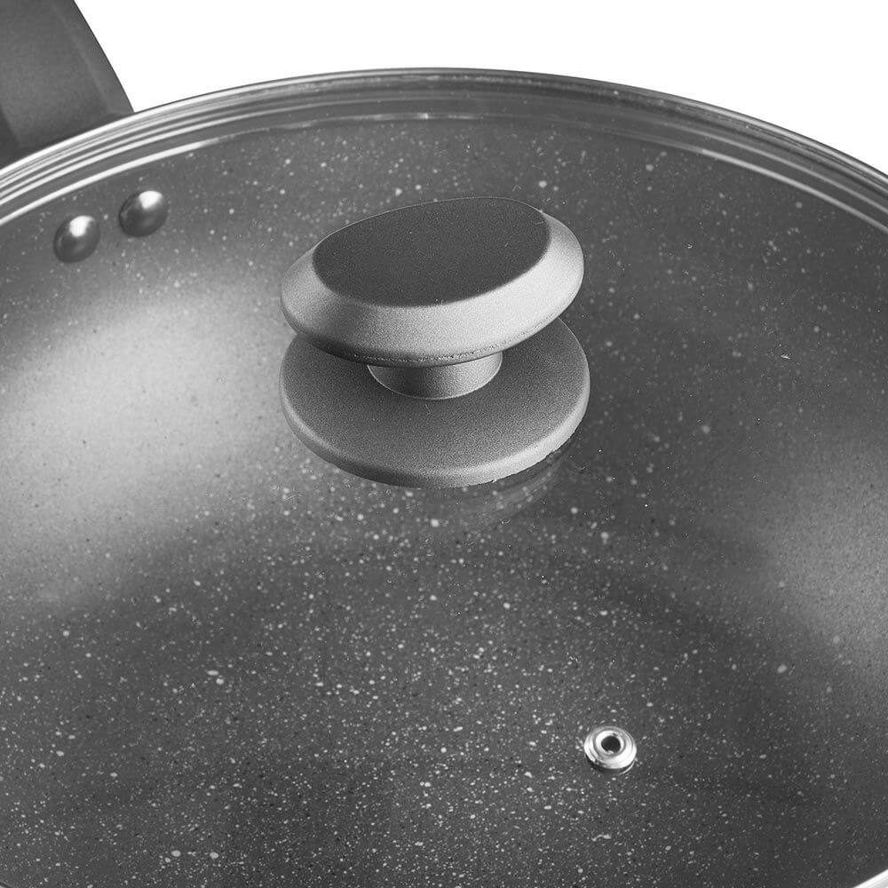 VonShef 28cm Marble Wok – Non-Stick Aluminium Stir Fry Pan with Lid