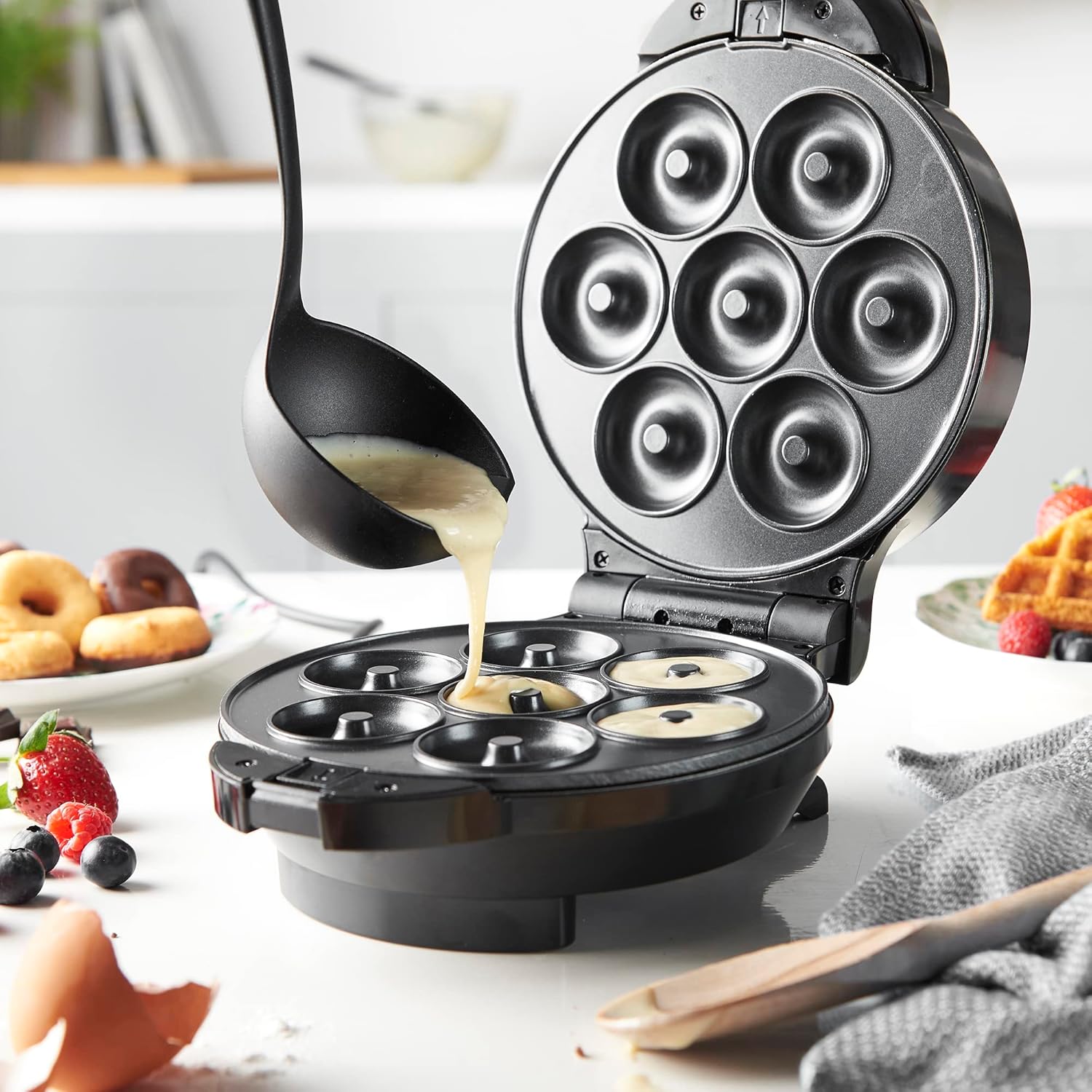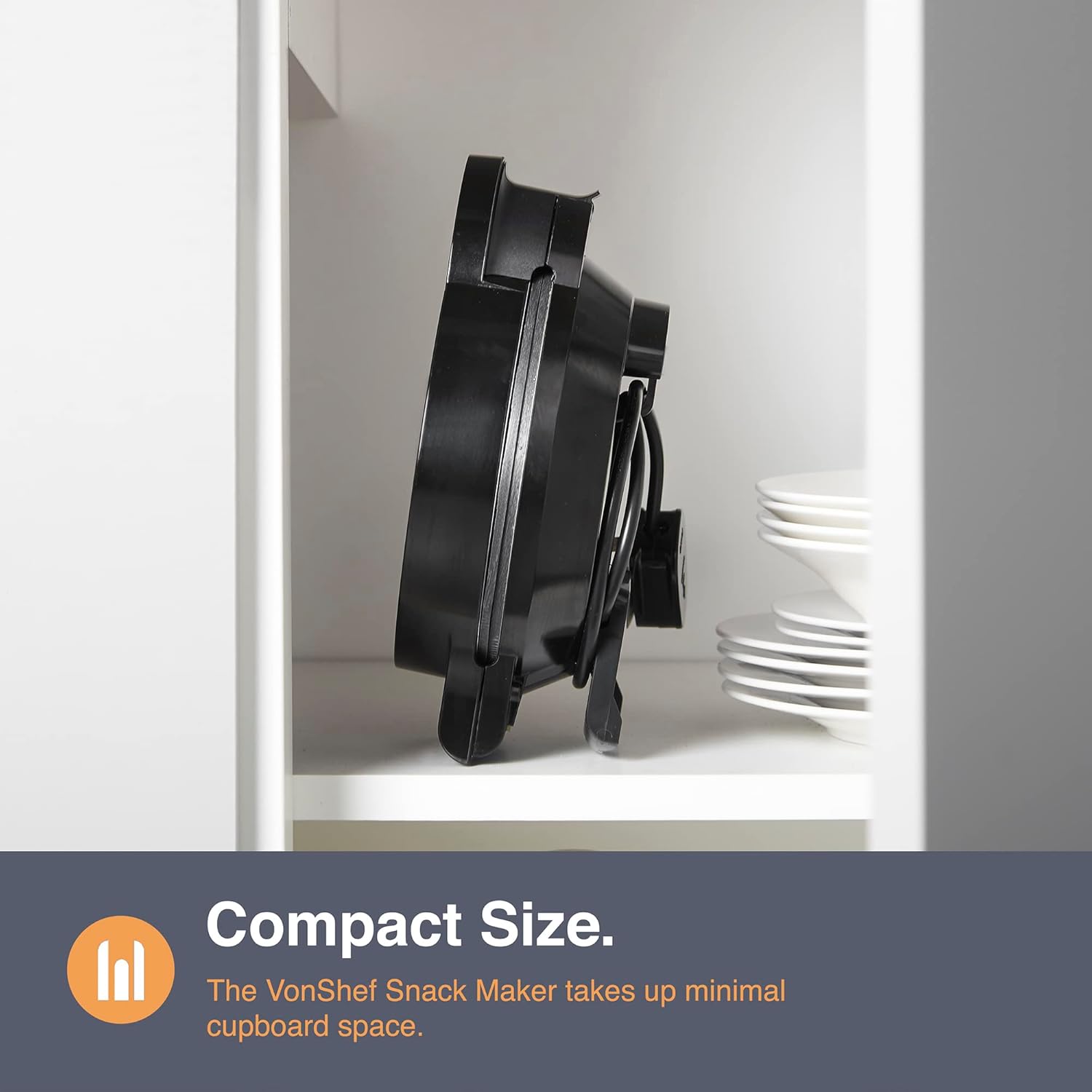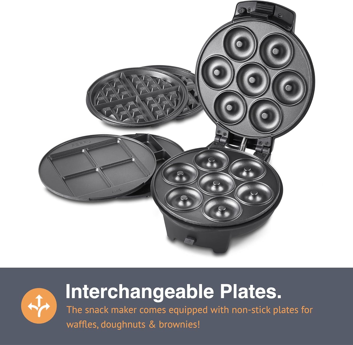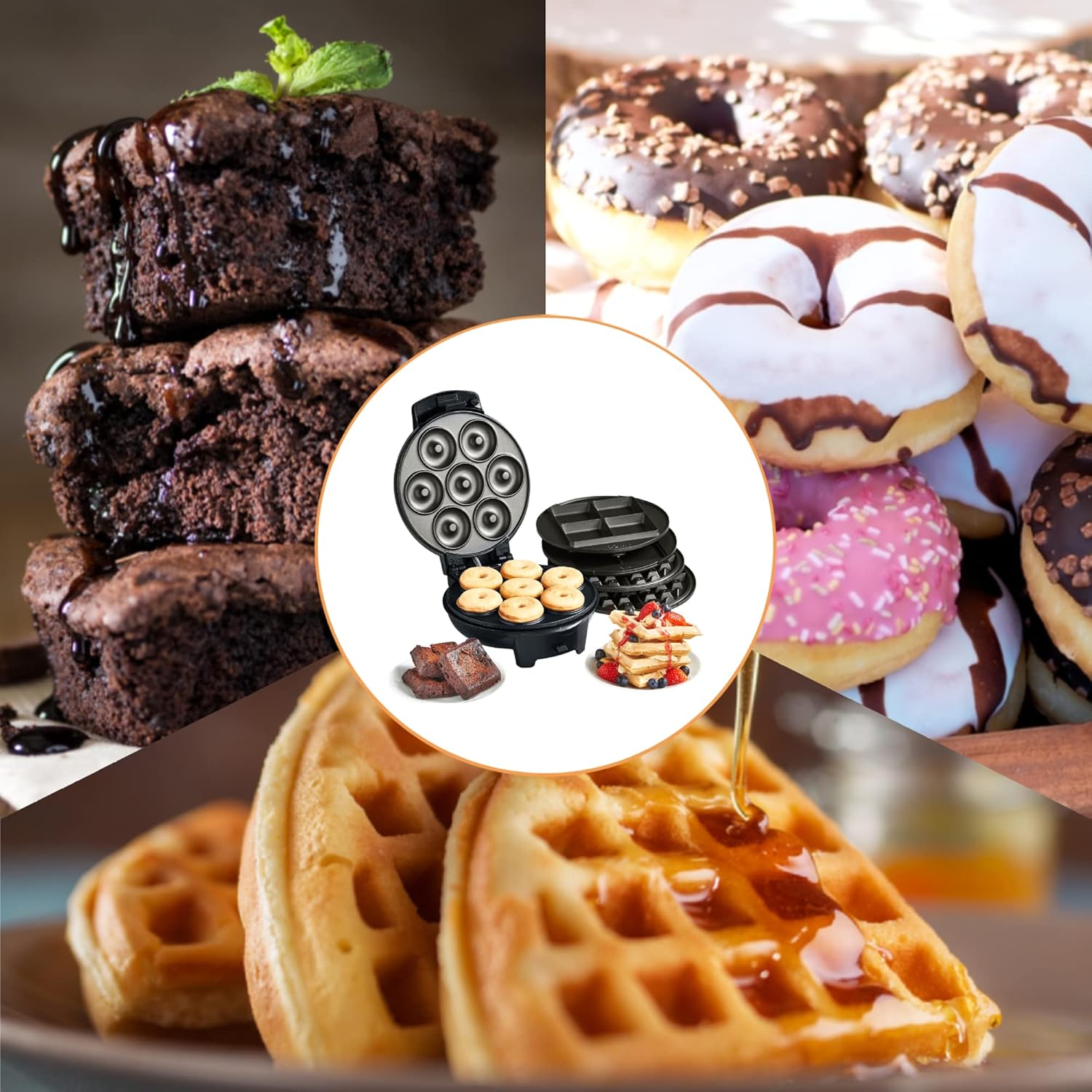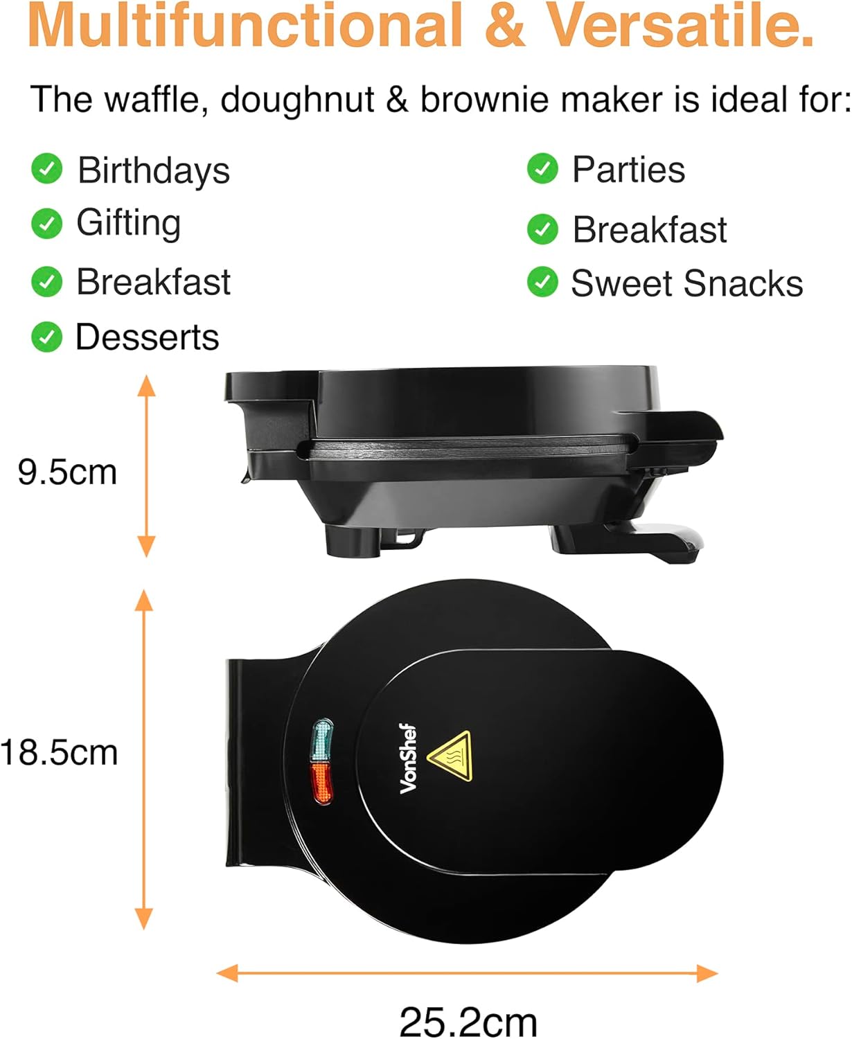 VonShef 3-in-1 Waffle, Doughnut & Brownie Maker – 800W, Non-Stick Removable Plates, Cool Touch Handle, Compact Design – Black