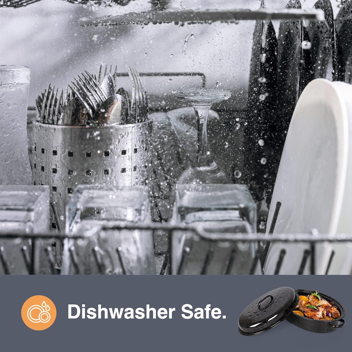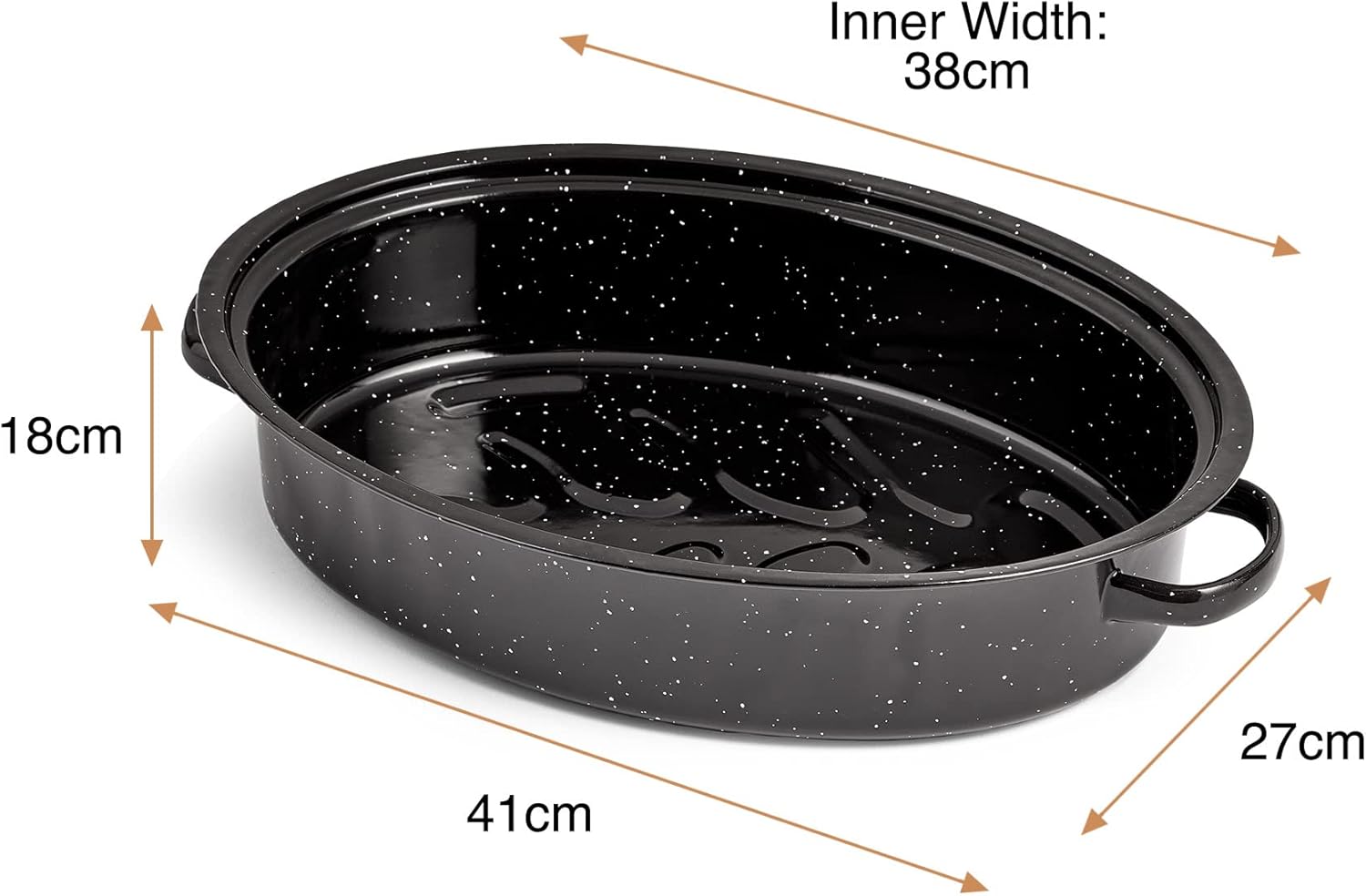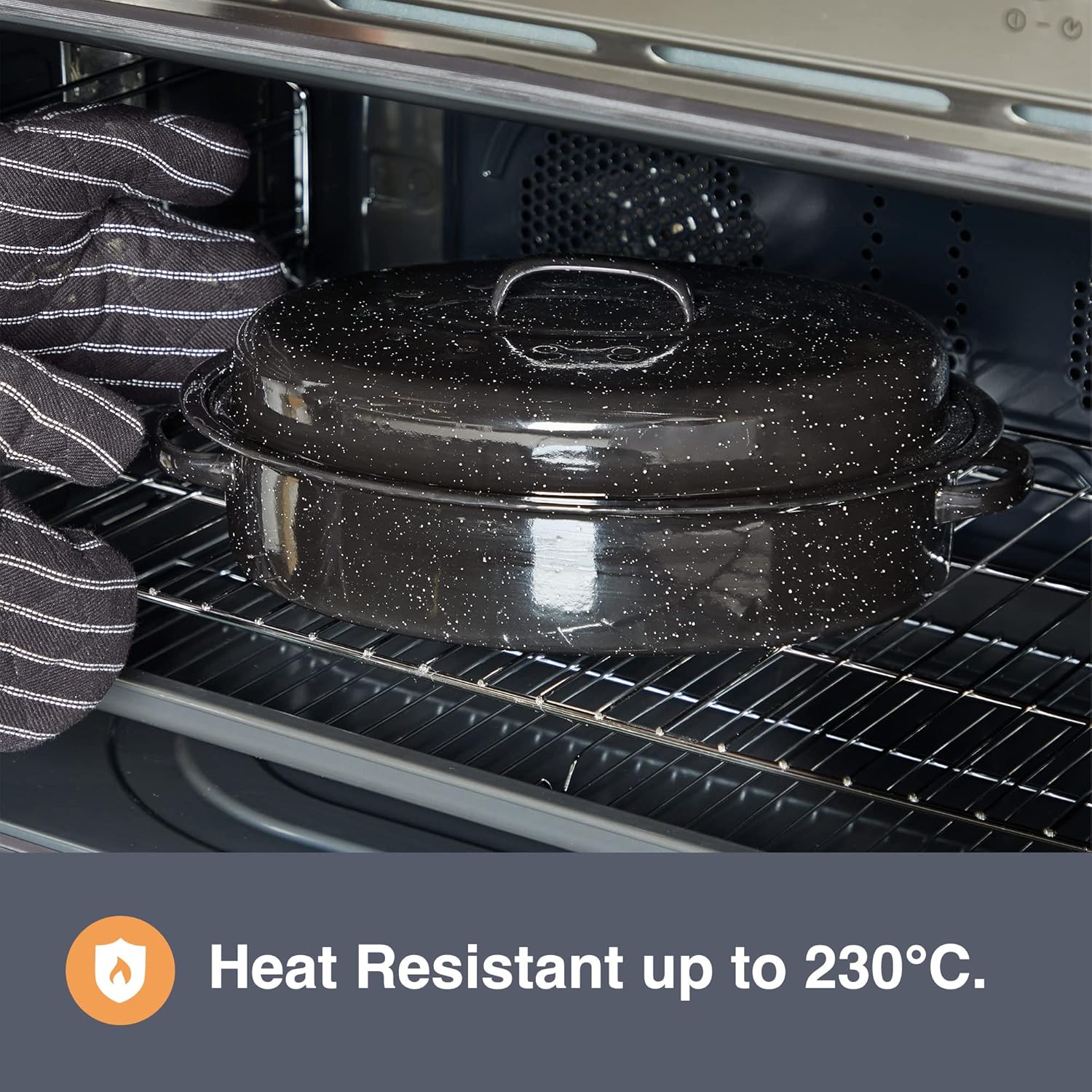 VonShef 38cm Enamel Roaster with Lid – Deep Oval Self-Basting Roasting Tin (4L)