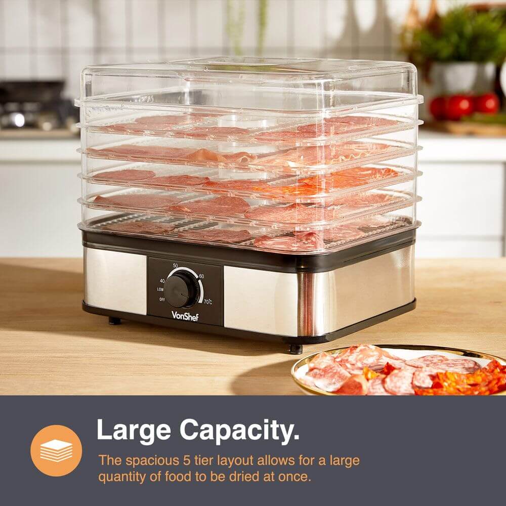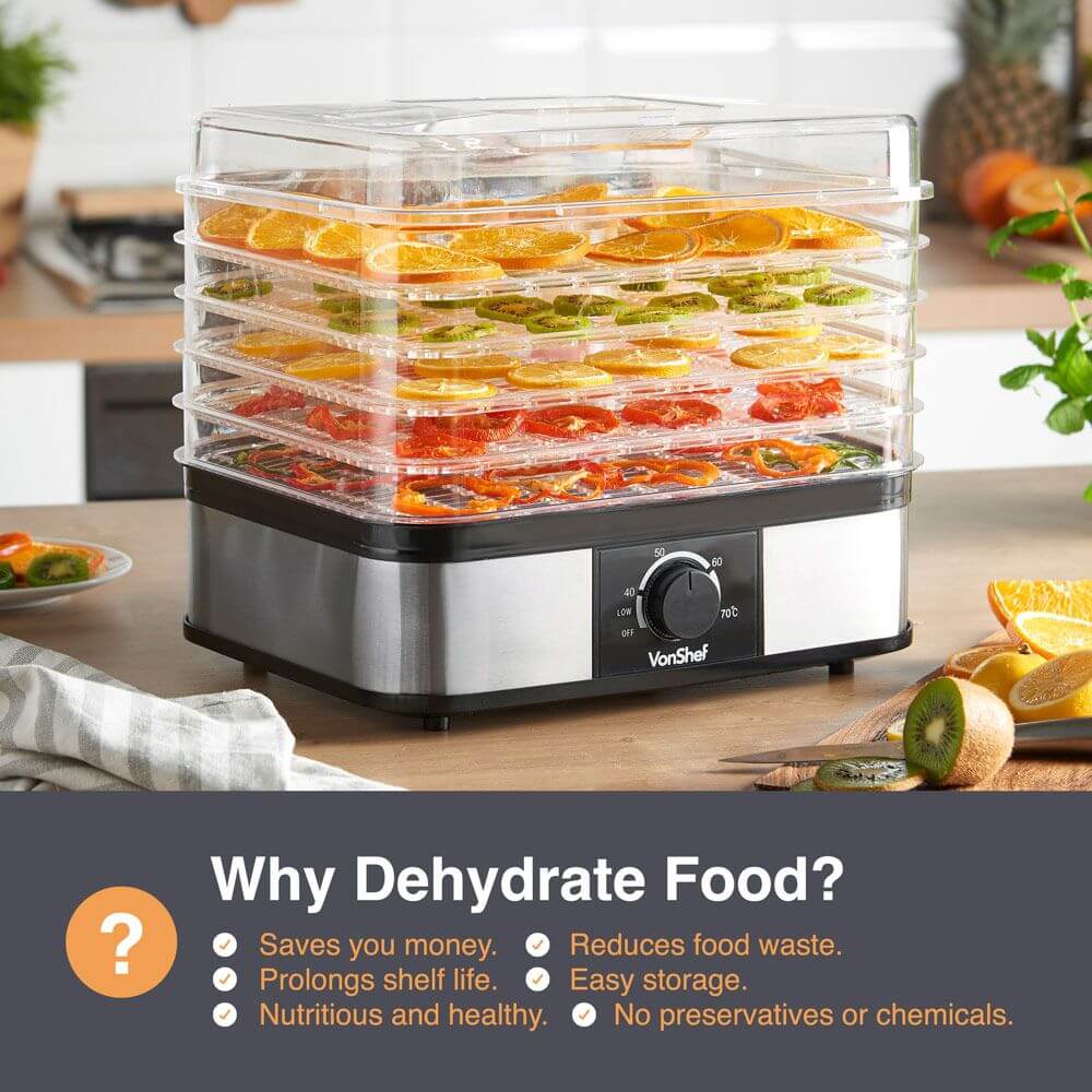 VonShef 5 Tier Food Dehydrator – Adjustable Control for Fruits, Meats, Herbs