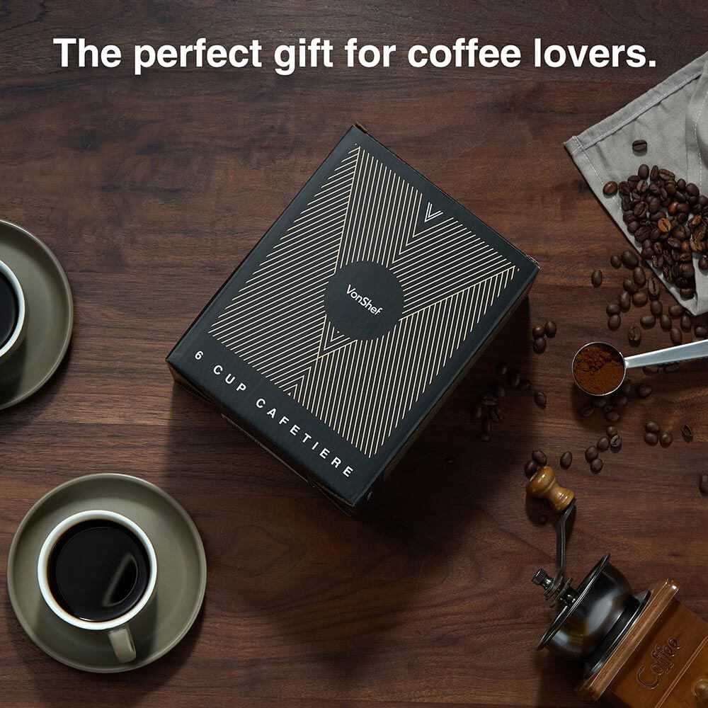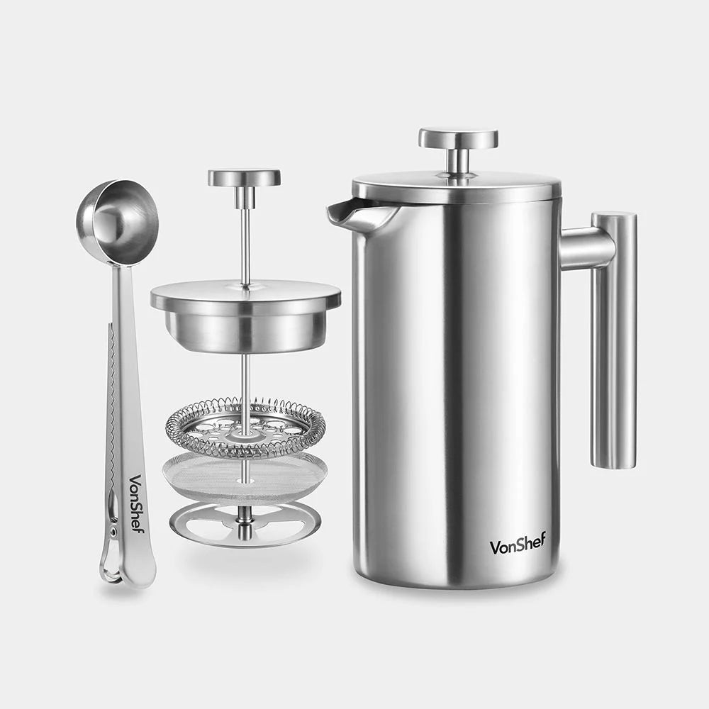 Vonshef 6 Cup Stainless Steel Cafetiere with Coffee Spoon – 800ml