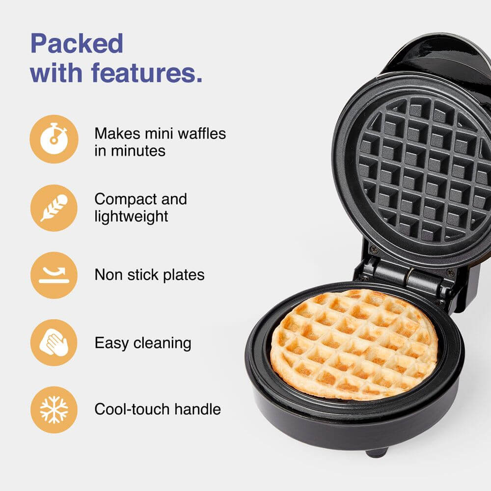 VonShef 600W Mini Waffle Maker – Compact Non-Stick Waffle Iron